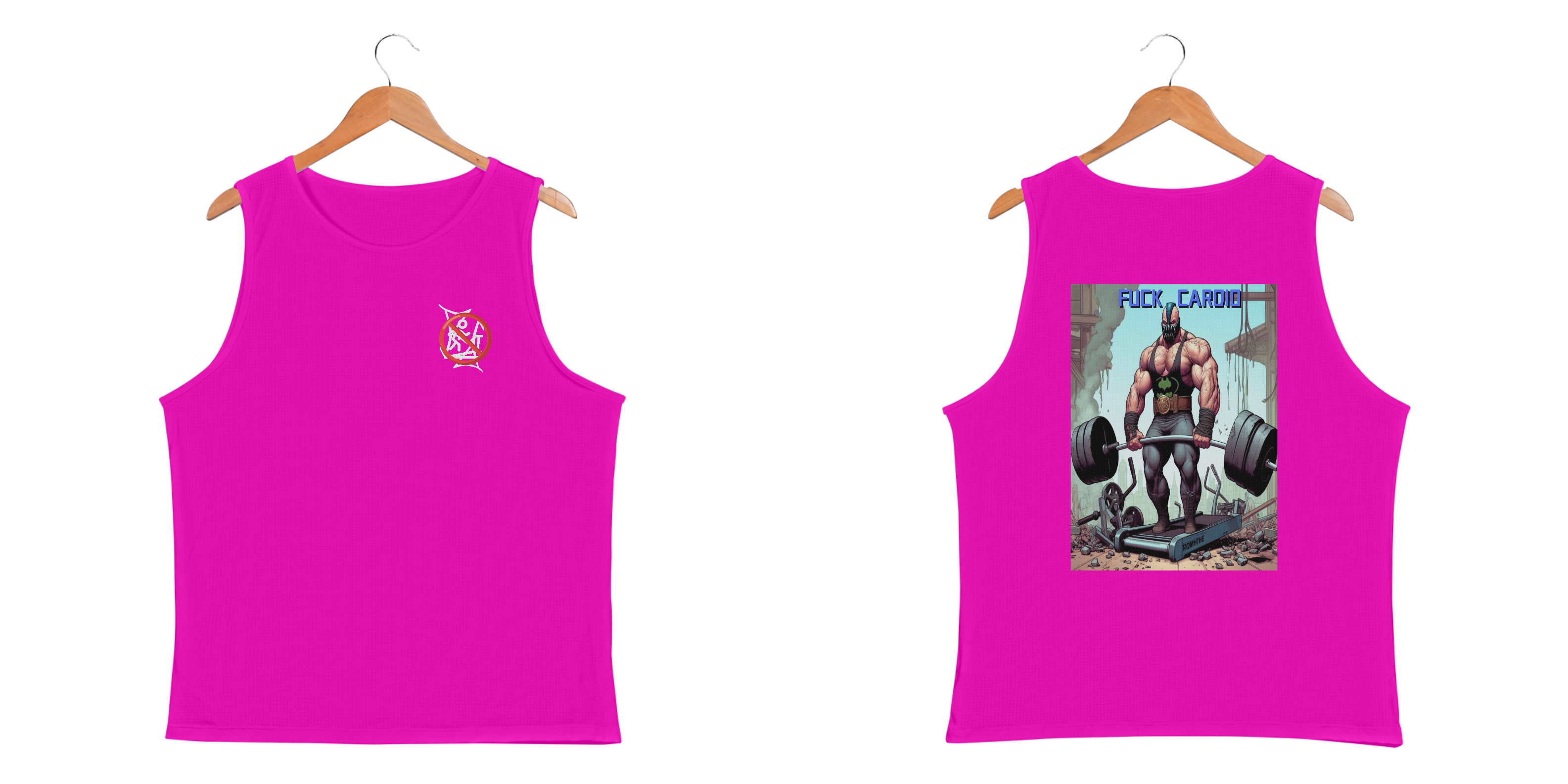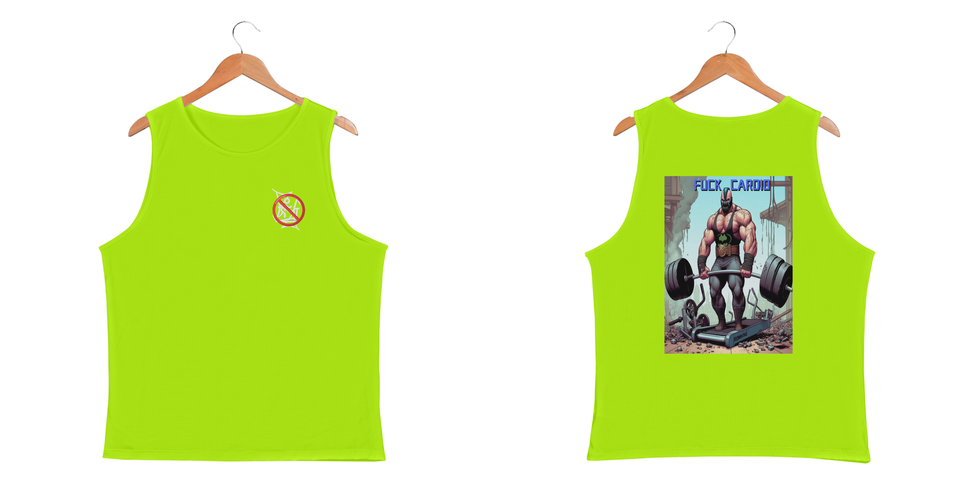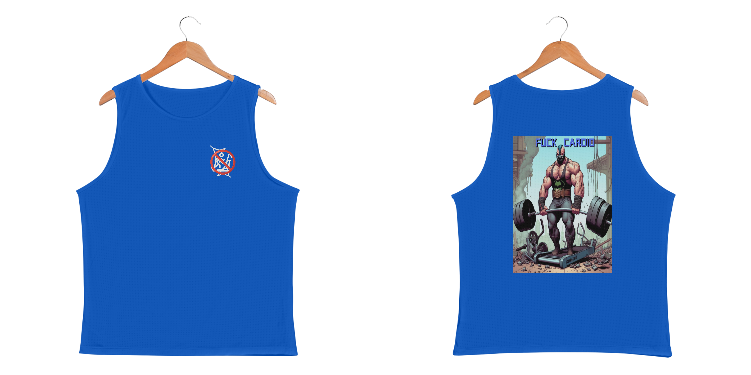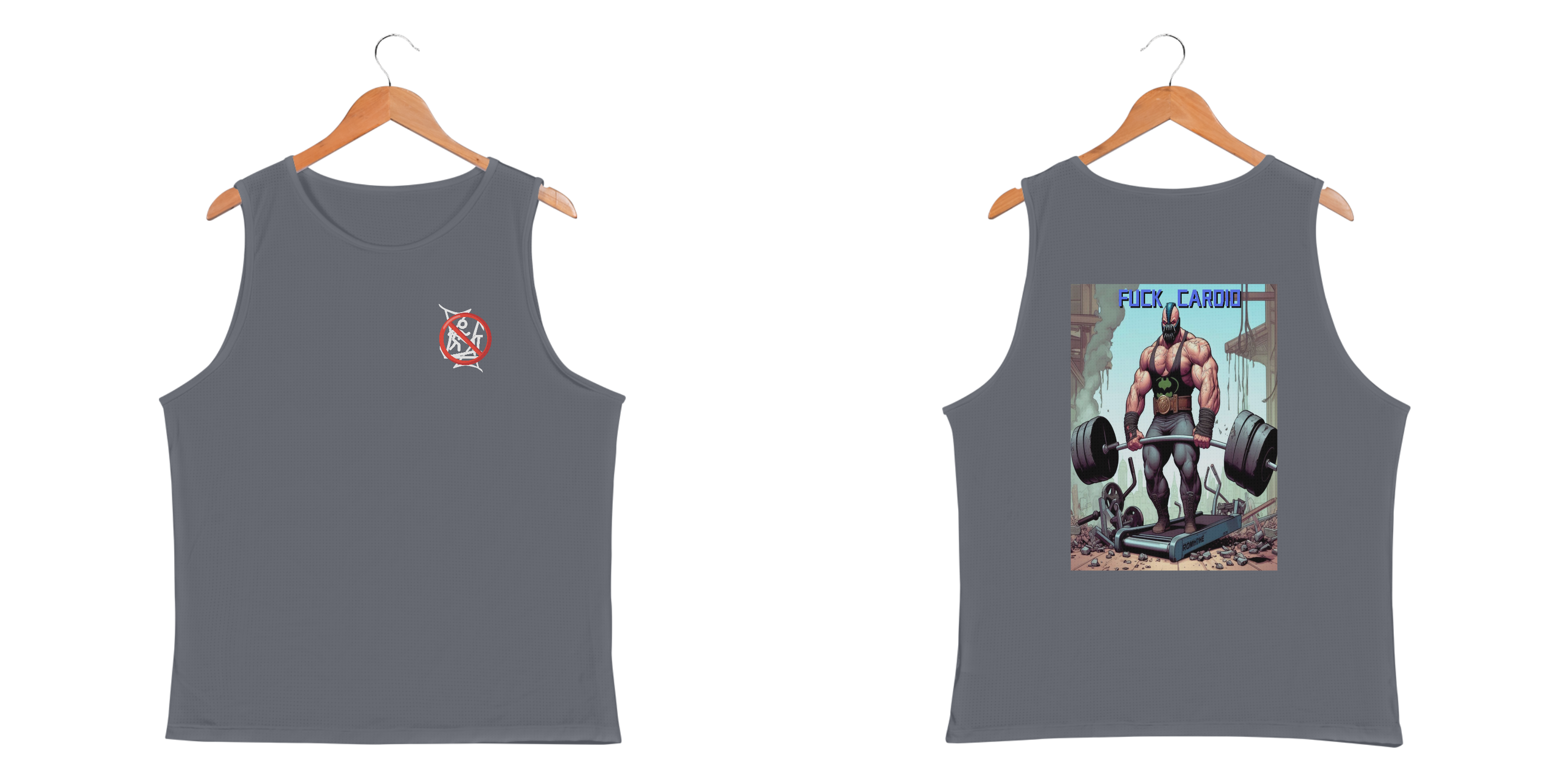 Bane não tem tempo para esteiras e deixa isso bem claro! Nessa camiseta regata, o vilão mais brutal de Gotham aparece em cima de uma esteira destruída, segurando uma barra carregada de pesos, enquanto a frase 'Fuck Cardio' manda o recado. Feita com tecido premium, essa peça é ideal para quem domina a musculação com atitude e personalidade. Chega de desculpas, vista o Bane e mostre quem manda na academia!