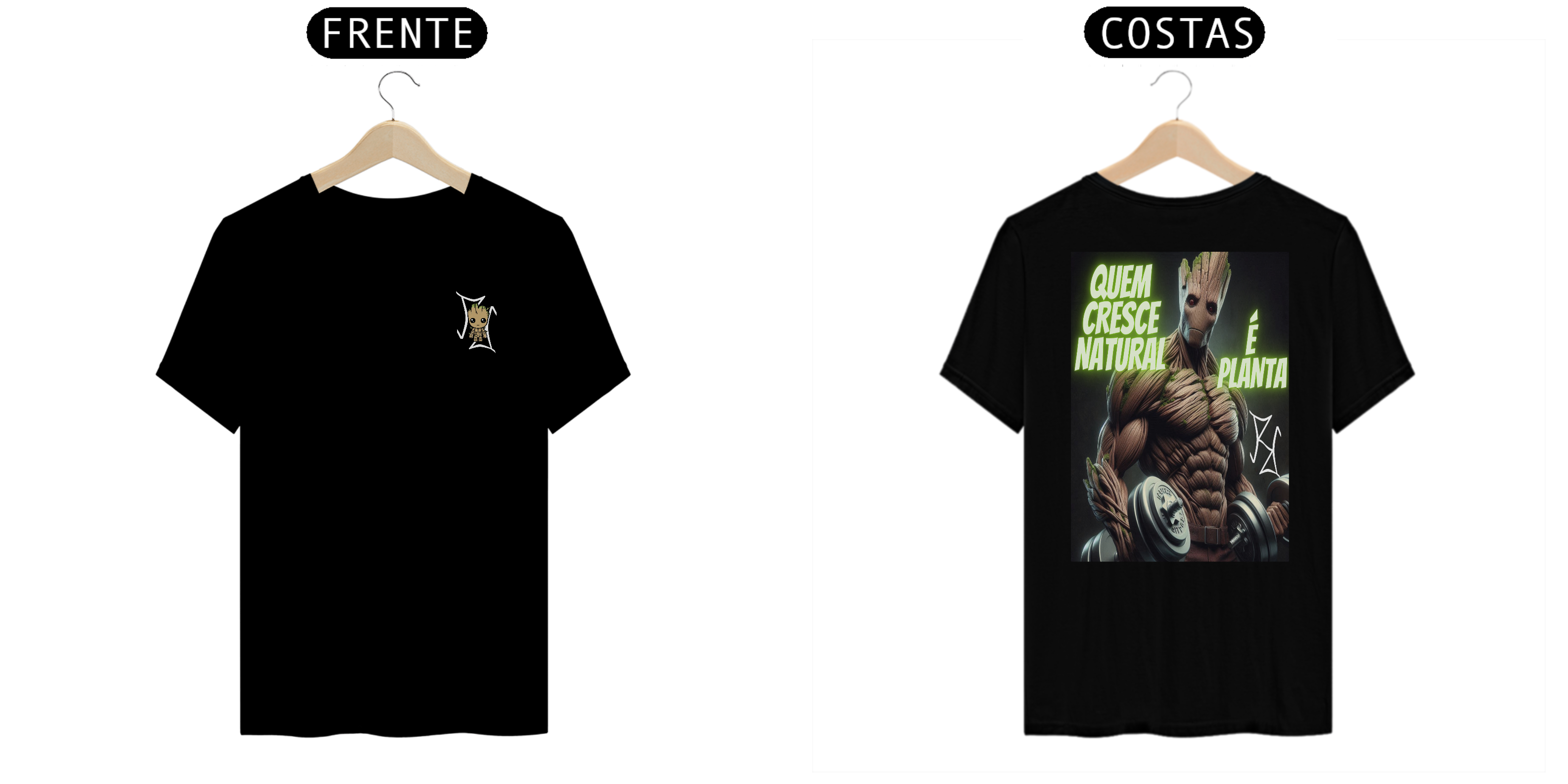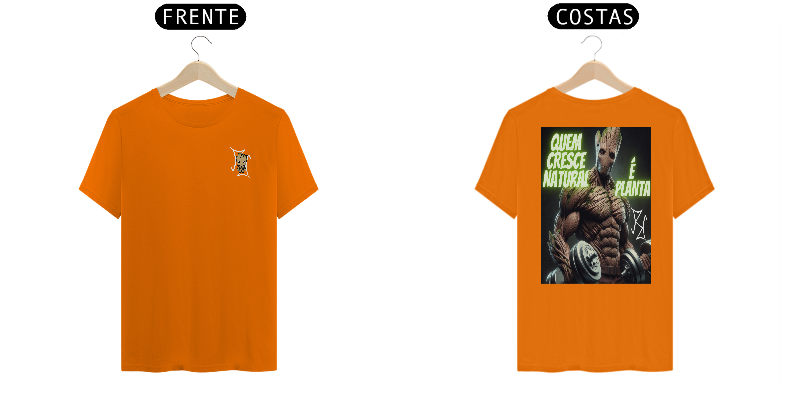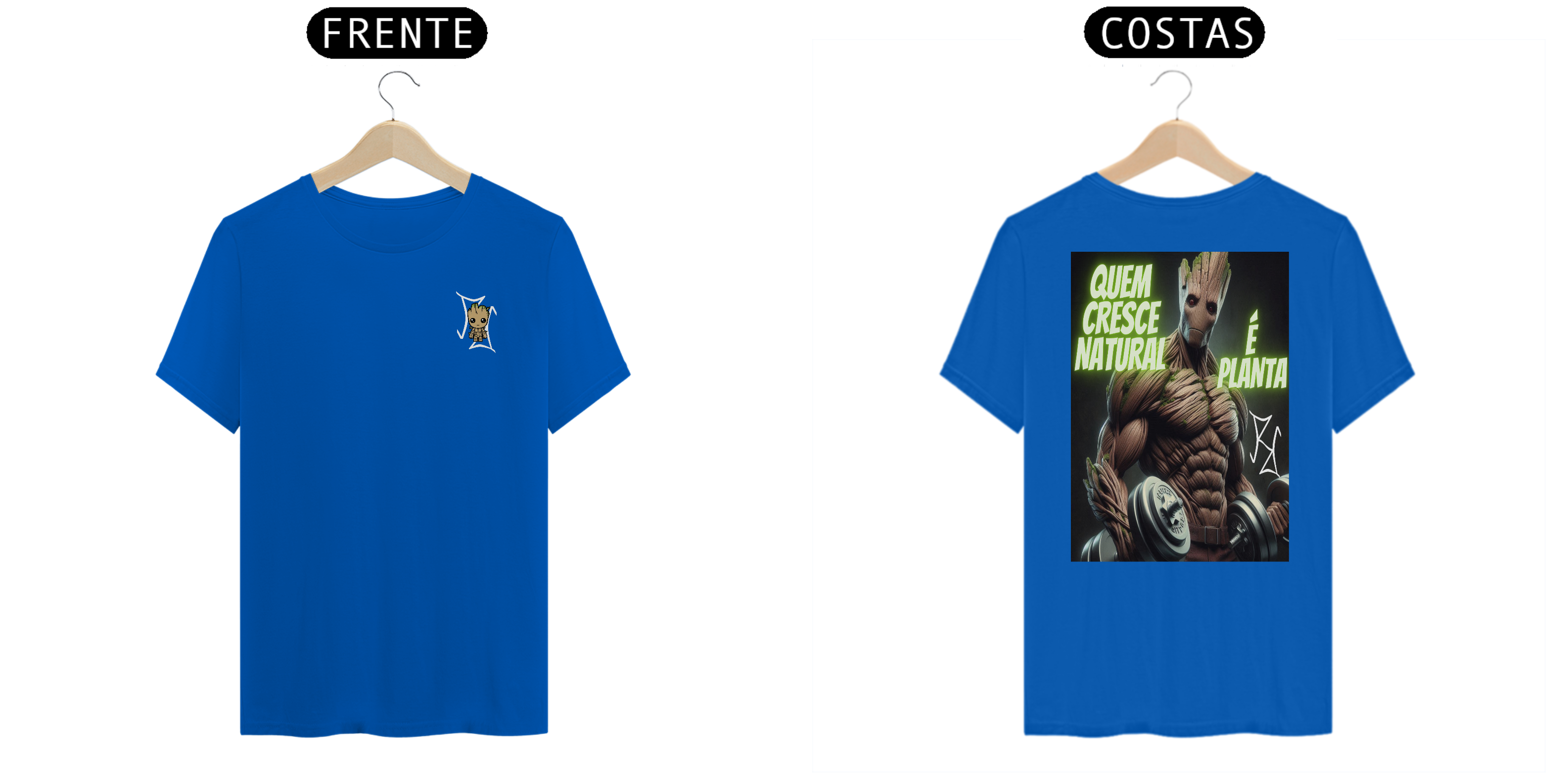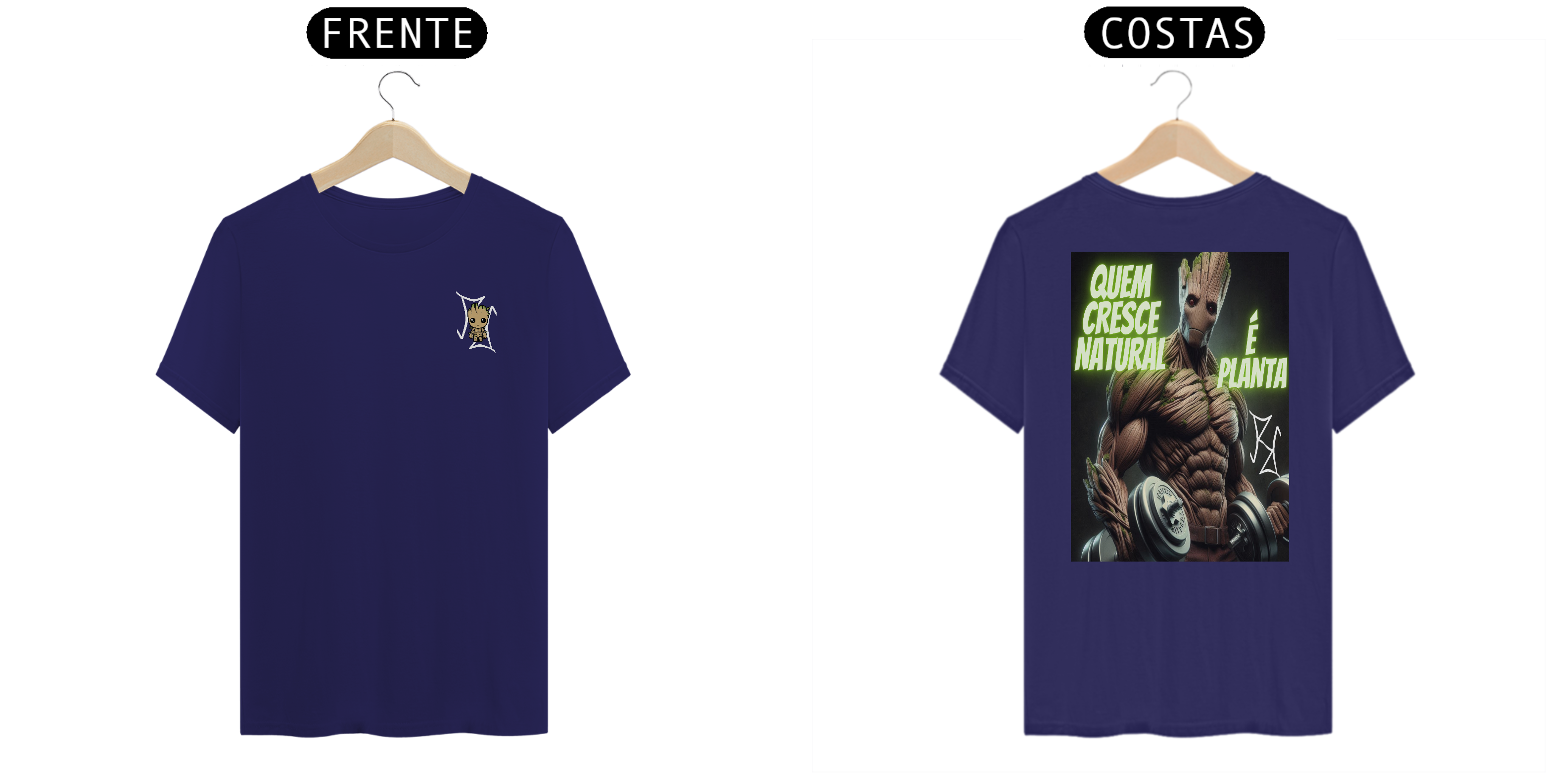 Groot não é apenas um herói, ele também é um exemplo de crescimento natural! Nesta camiseta, Groot aparece forte, com halteres nas mãos, representando quem conquista seus ganhos de forma natural e com muito esforço. Com a frase 'Quem Cresce Natural é Planta', essa peça traz um toque de motivação para os fãs de musculação e para quem sabe que o verdadeiro poder vem do trabalho árduo. Feita com tecido premium, ideal para quem é fã de heróis e maromba!