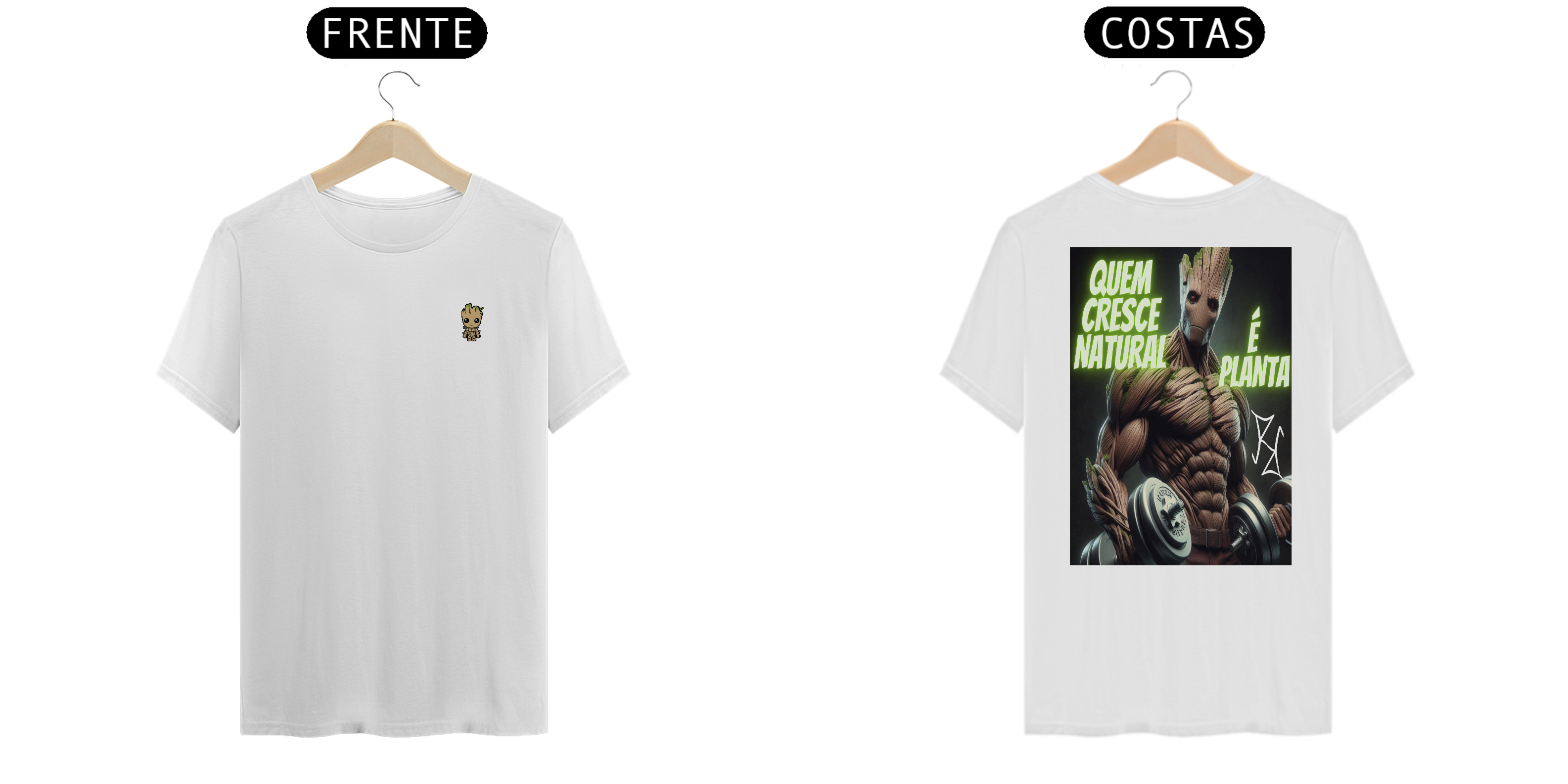 Groot não é apenas um herói, ele também é um exemplo de crescimento natural! Nesta camiseta, Groot aparece forte, com halteres nas mãos, representando quem conquista seus ganhos de forma natural e com muito esforço. Com a frase 'Quem Cresce Natural é Planta', essa peça traz um toque de motivação para os fãs de musculação e para quem sabe que o verdadeiro poder vem do trabalho árduo. Feita com tecido premium, ideal para quem é fã de heróis e maromba!