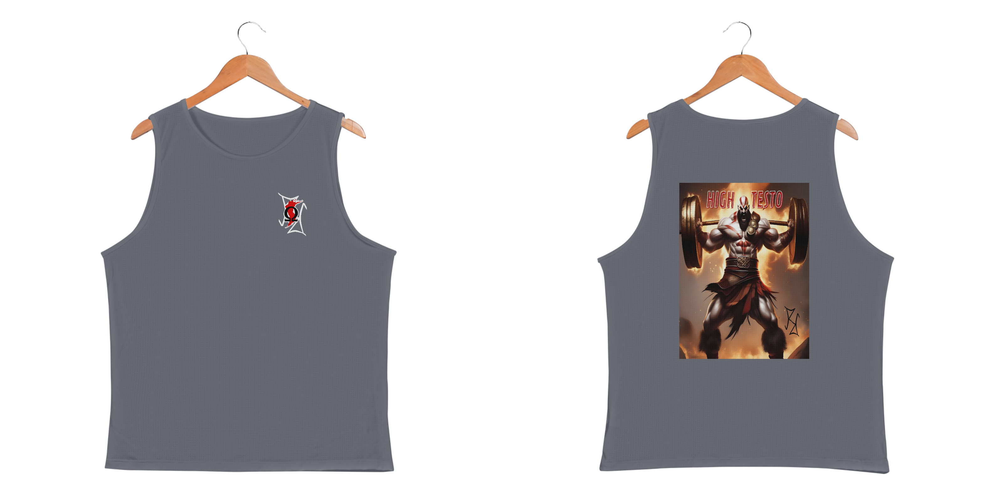 Kratos está no auge do poder, com força e testosterona de sobra! Nessa camiseta regata, o deus da guerra é mostrado com uma barra pesada nos ombros, simbolizando o peso de sua força e determinação. A frase 'High Testo' é um grito de motivação para aqueles que se dedicam intensamente ao treino. Feita com tecido premium, essa peça combina estilo, conforto e inspiração para enfrentar qualquer batalha dentro e fora da academia.
