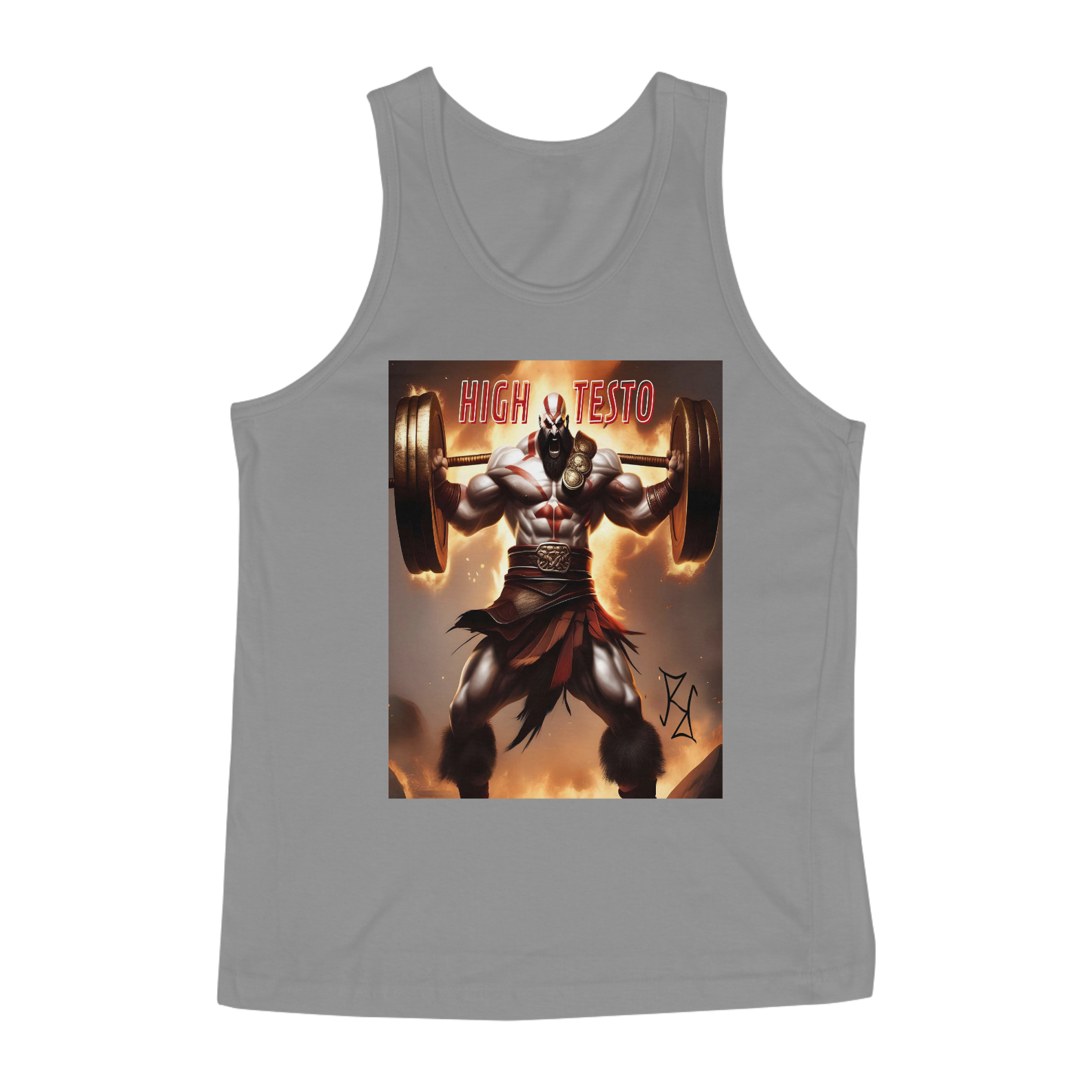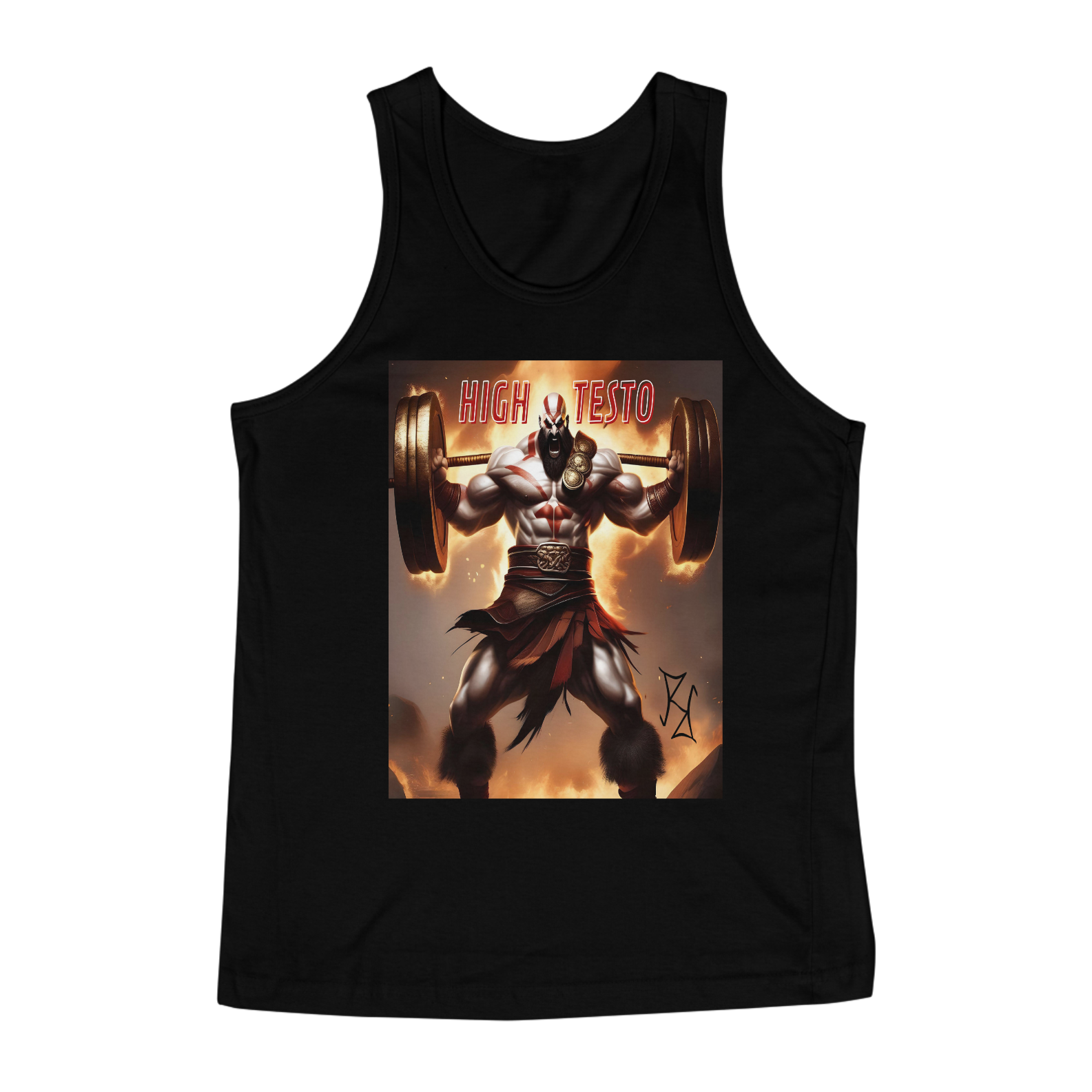Kratos está no auge do poder, com força e testosterona de sobra! Nessa camiseta regata, o deus da guerra é mostrado com uma barra pesada nos ombros, simbolizando o peso de sua força e determinação. A frase 'High Testo' é um grito de motivação para aqueles que se dedicam intensamente ao treino. Feita com tecido premium, essa peça combina estilo, conforto e inspiração para enfrentar qualquer batalha dentro e fora da academia.