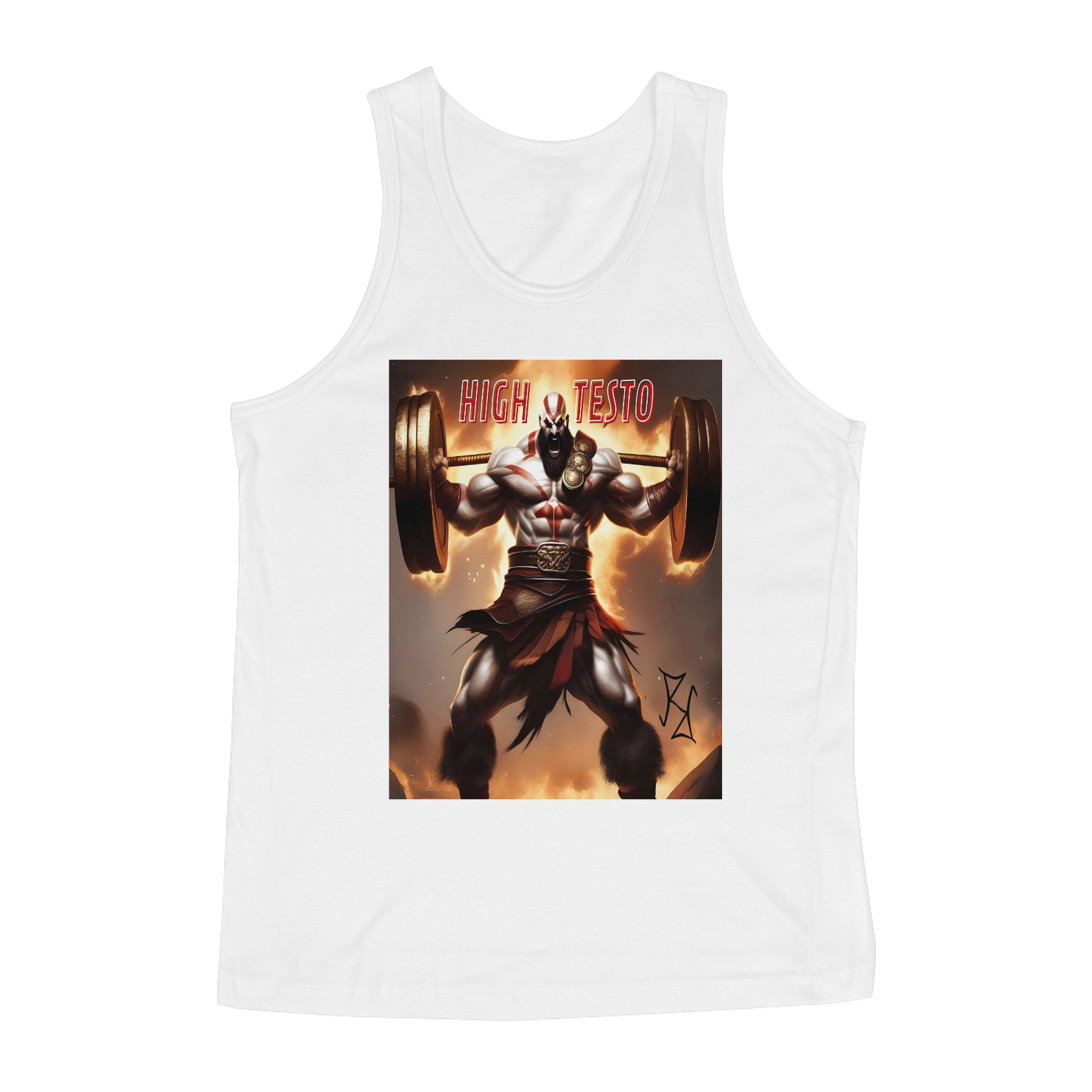 Kratos está no auge do poder, com força e testosterona de sobra! Nessa camiseta regata, o deus da guerra é mostrado com uma barra pesada nos ombros, simbolizando o peso de sua força e determinação. A frase 'High Testo' é um grito de motivação para aqueles que se dedicam intensamente ao treino. Feita com tecido premium, essa peça combina estilo, conforto e inspiração para enfrentar qualquer batalha dentro e fora da academia.