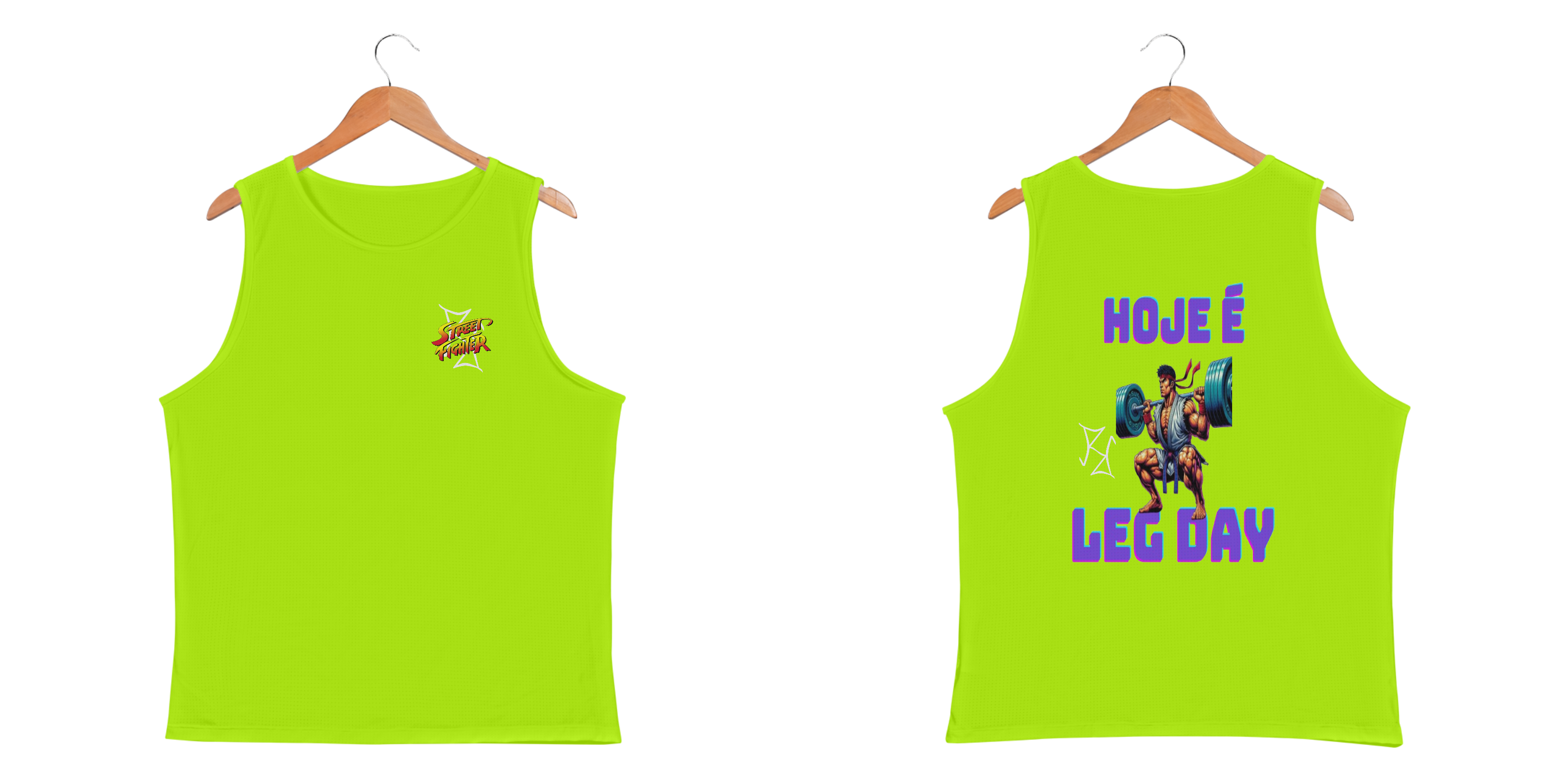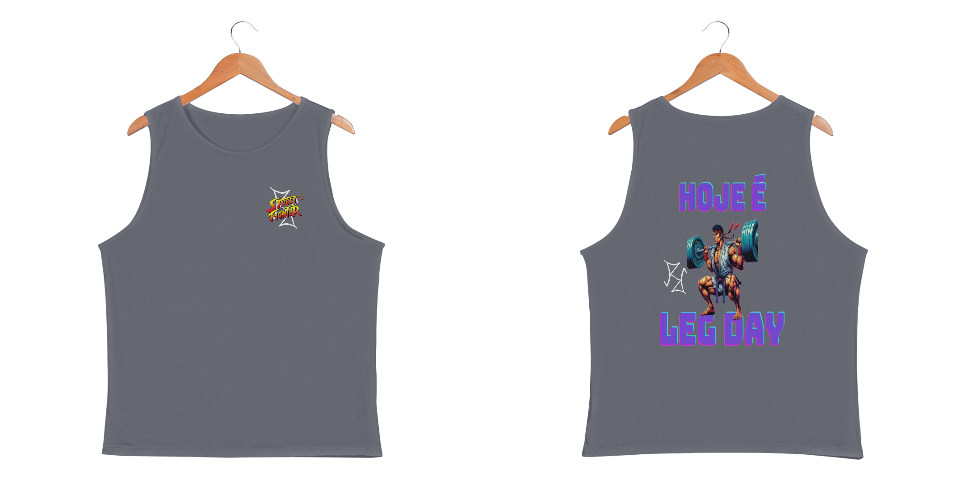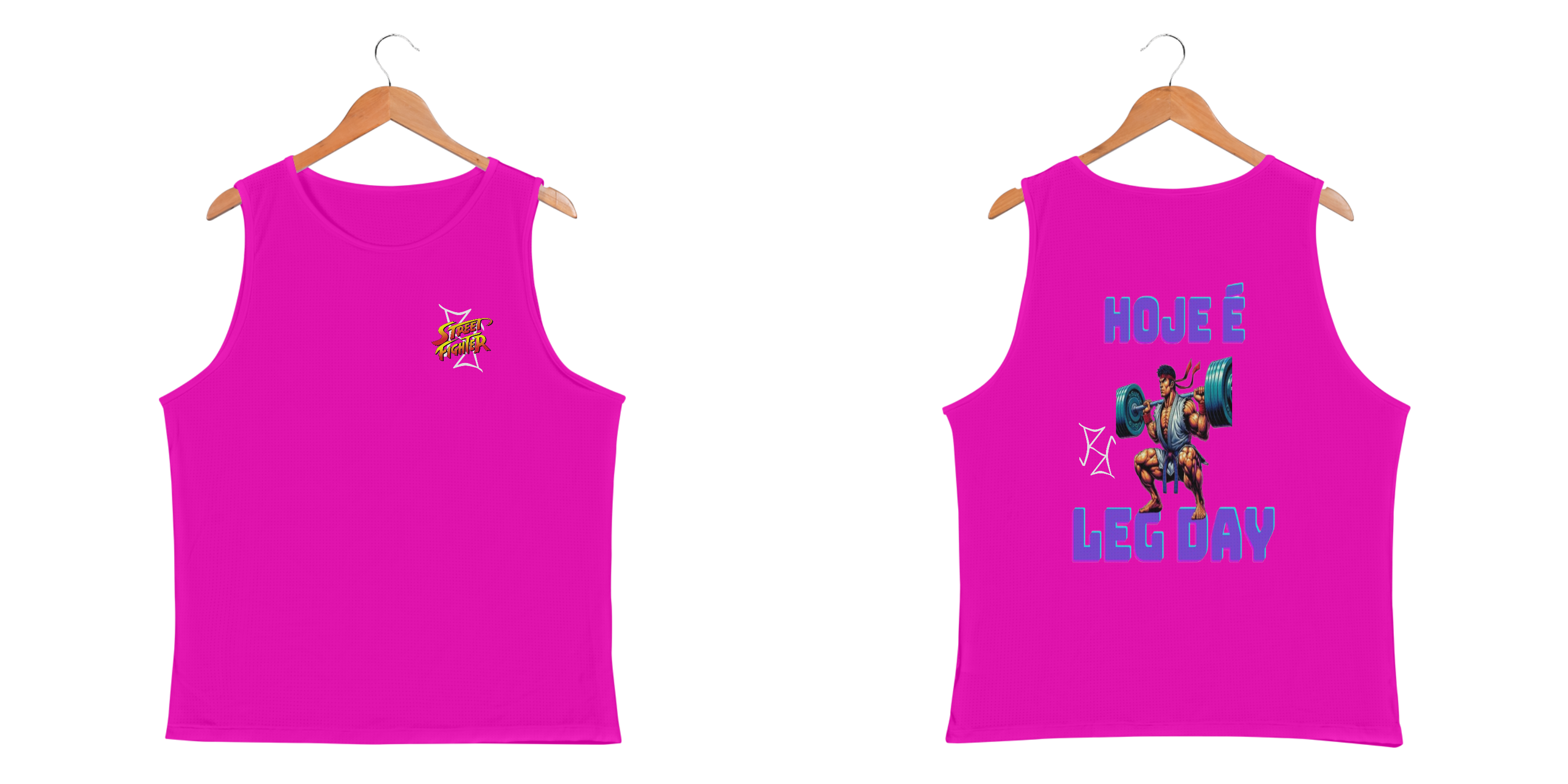 Ryu sabe que força não vem só dos punhos: vem também das pernas! Nessa camiseta regata, o lendário lutador de Street Fighter é mostrado no meio de um treino de respeito, fazendo agachamento pesado. A frase 'Leg Day' reforça a importância de nunca pular o dia mais temido (e amado) da academia. Feita em tecido premium, essa peça combina conforto e estilo para te acompanhar nos treinos e no dia a dia. Entre no modo maromba com o espírito de luta do Ryu