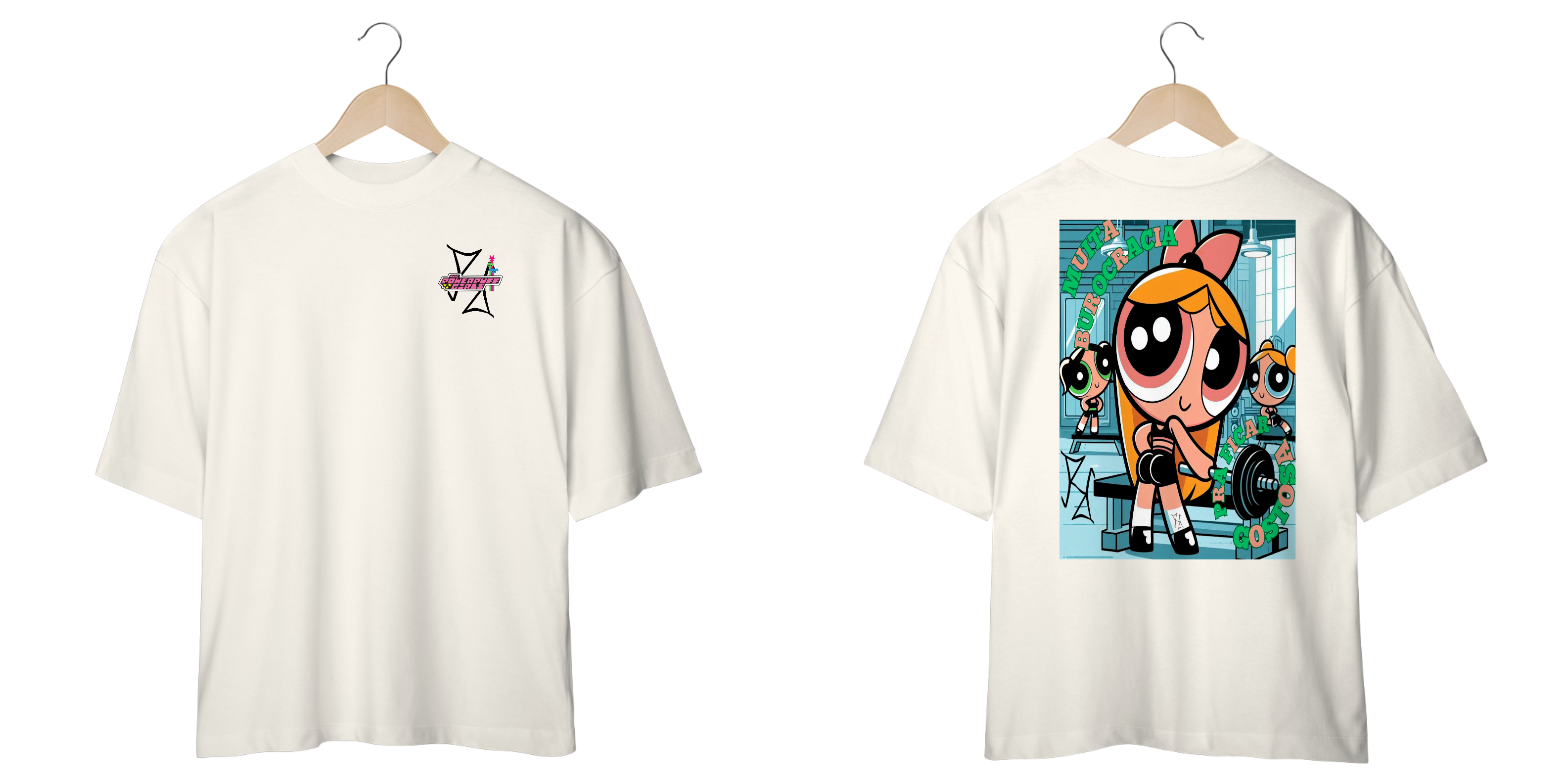 Florzinha não é só fofura, ela também sabe como pegar pesado! Nessa camiseta oversized, a heroína das Meninas Super Poderosas aparece em destaque, mostrando que a jornada até o shape dos sonhos não é fácil, mas vale a pena. Feita com tecido premium, é ideal para quem tem atitude, força e não tem medo de enfrentar a 'burocracia' do treino!