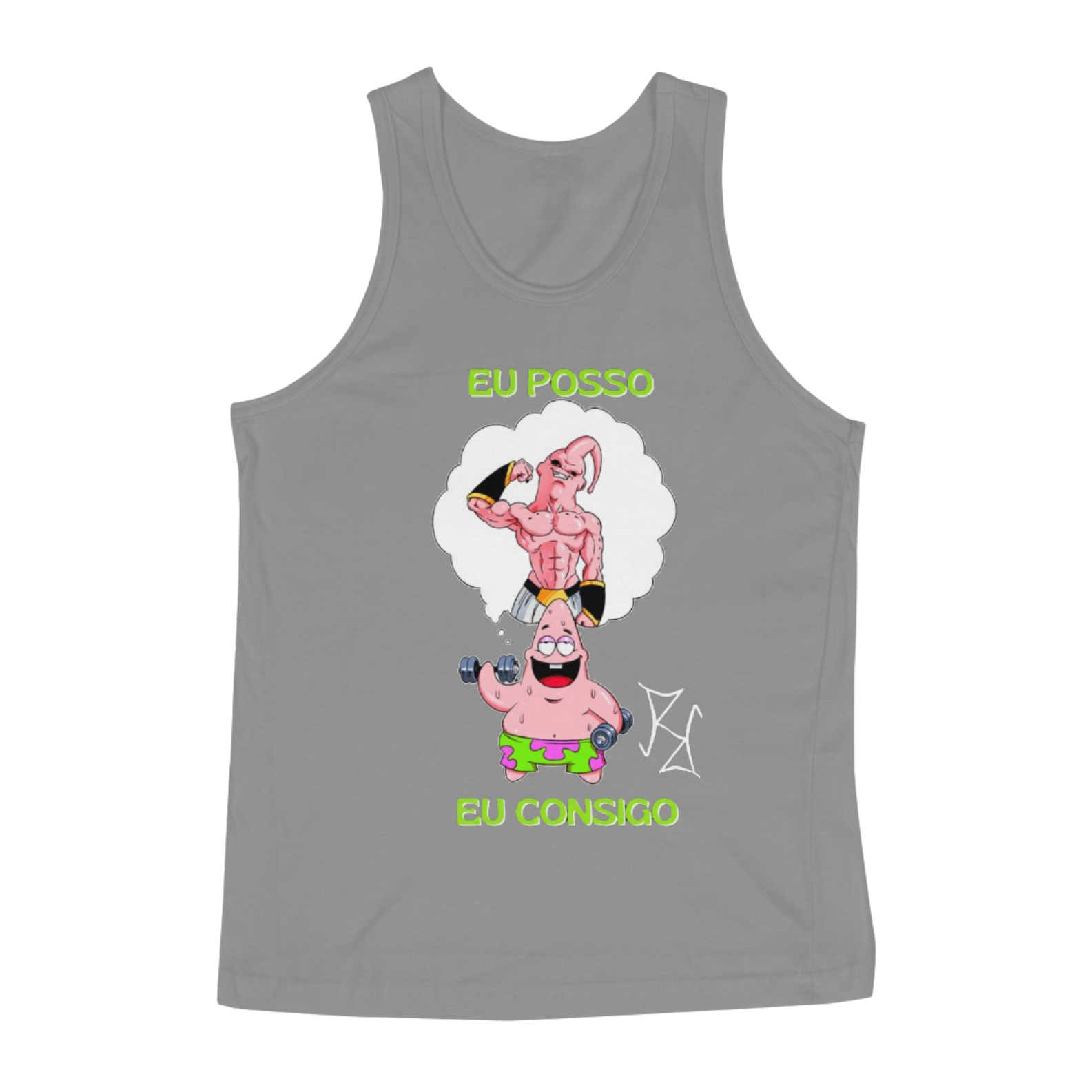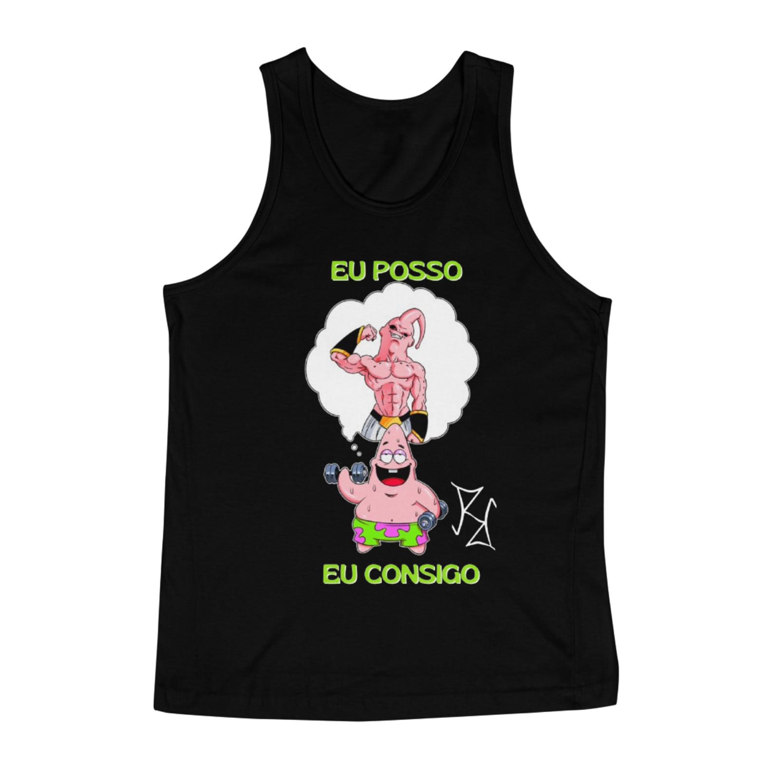 Até o Patrick, do Bob Esponja, tem seus sonhos de shape insano! Nessa camiseta regata, ele aparece pensando no físico lendário do Majin Boo na sua versão mais forte, se imaginando treinando pesado para chegar lá. Com a frase 'Eu Posso, Eu Consigo', essa peça é perfeita para quem acredita no próprio potencial e não desiste de evoluir. Feita com tecido premium, é confortável e estilosa, ideal para treinos ou para exibir seu lado geek maromba no dia a dia.