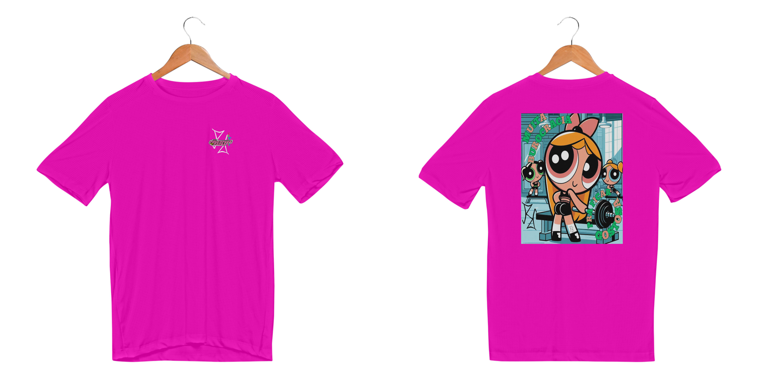 Florzinha não é só fofura, ela também sabe como pegar pesado! Nessa camiseta, a heroína das Meninas Super Poderosas aparece em destaque, mostrando que a jornada até o shape dos sonhos não é fácil, mas vale a pena. Feita com tecido premium, é ideal para quem tem atitude, força e não tem medo de enfrentar a 'burocracia' do treino!