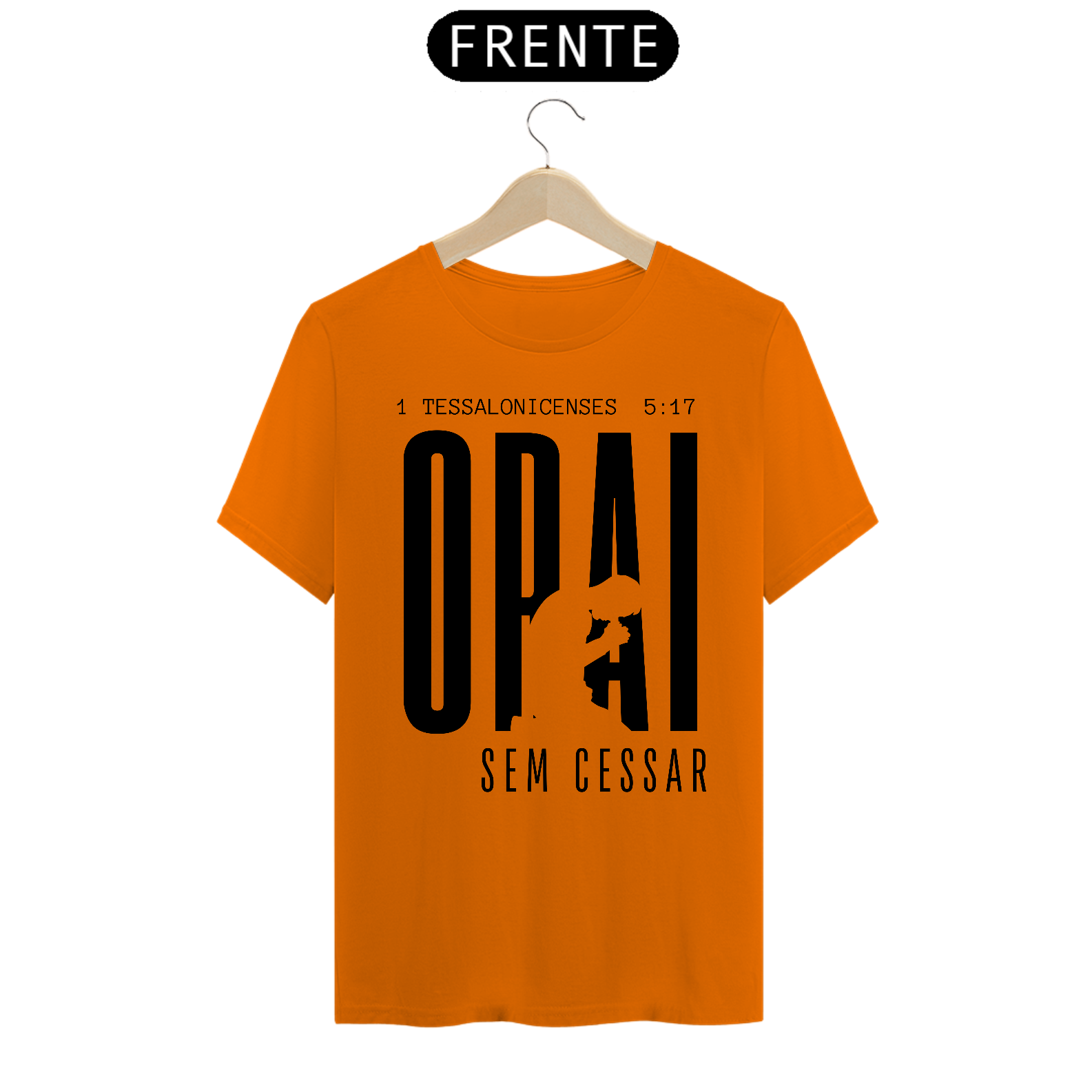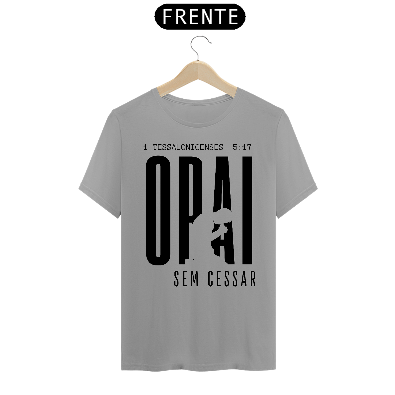 Camiseta Malha Cem por Cento Algodão, com estampa ''Orai sem cessar'' na cor preta.
