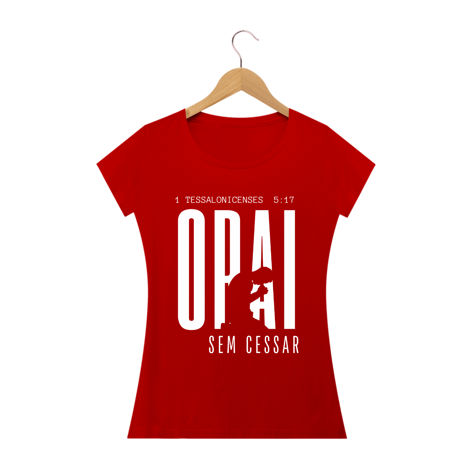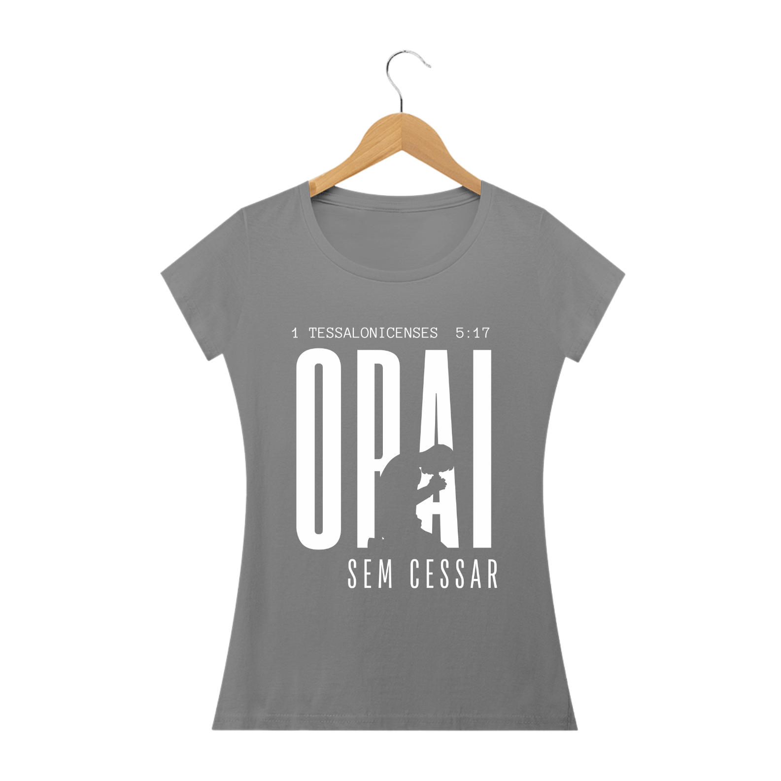 Camiseta Malha Cem por Cento Algodão, com estampa ''Orai sem cessar'' na cor branca.