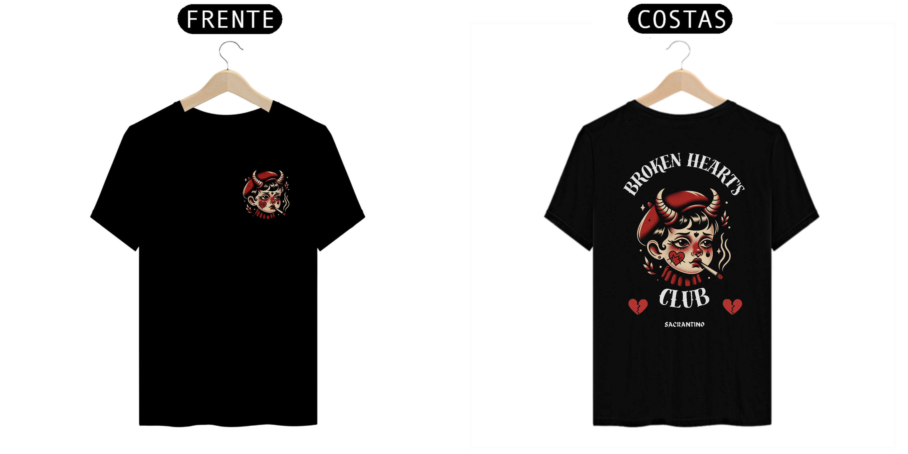 Camiseta 100% algodão, modelo unissex com estampa Silk Digital, "Broken Heart's Club", coleção original Sacrantino.