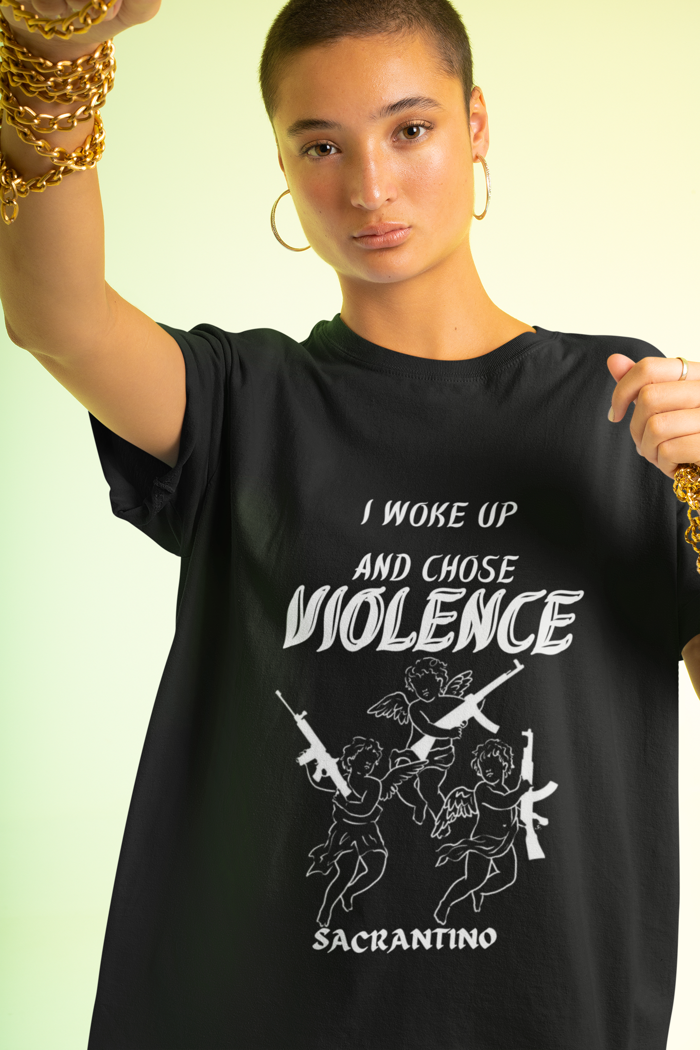 Camiseta 100% algodão, modelo unissex com estampa Silk Digital, "Latina Power",coleção original Sacrantino.