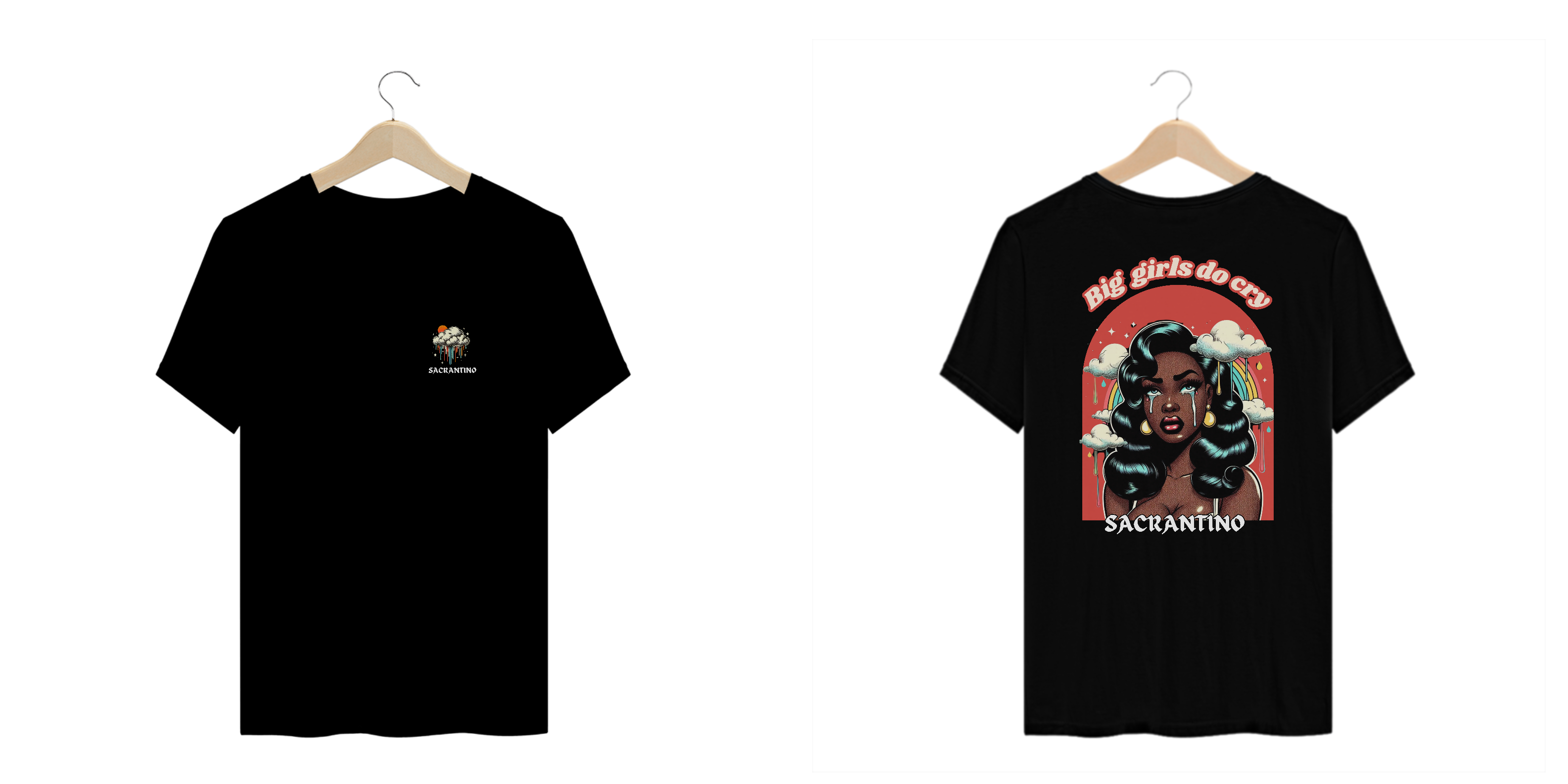 Camiseta plus size 100% algodão, modelo unissex com estampa Silk Digital, "Big Girls Do Cry", coleção original Sacrantino.