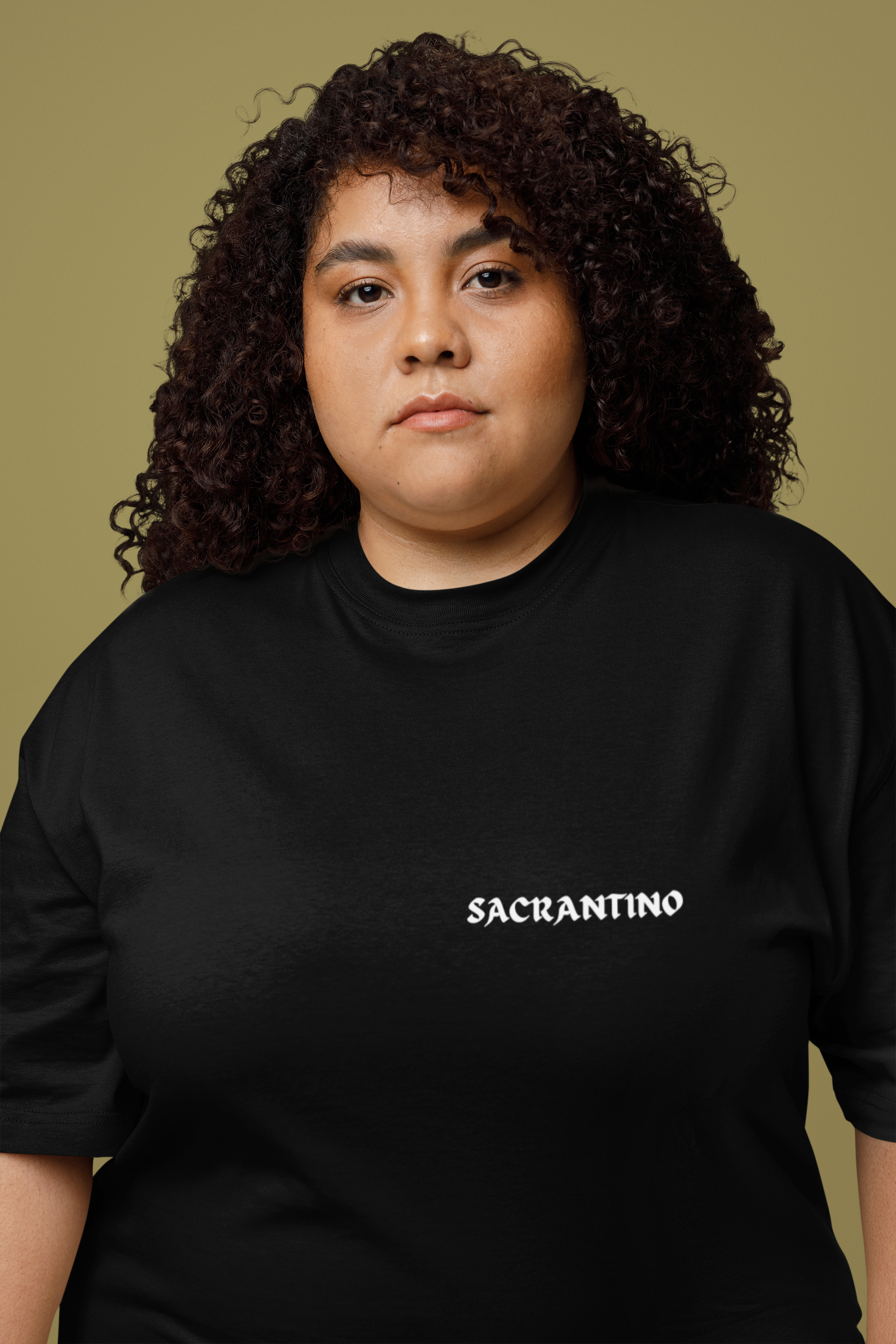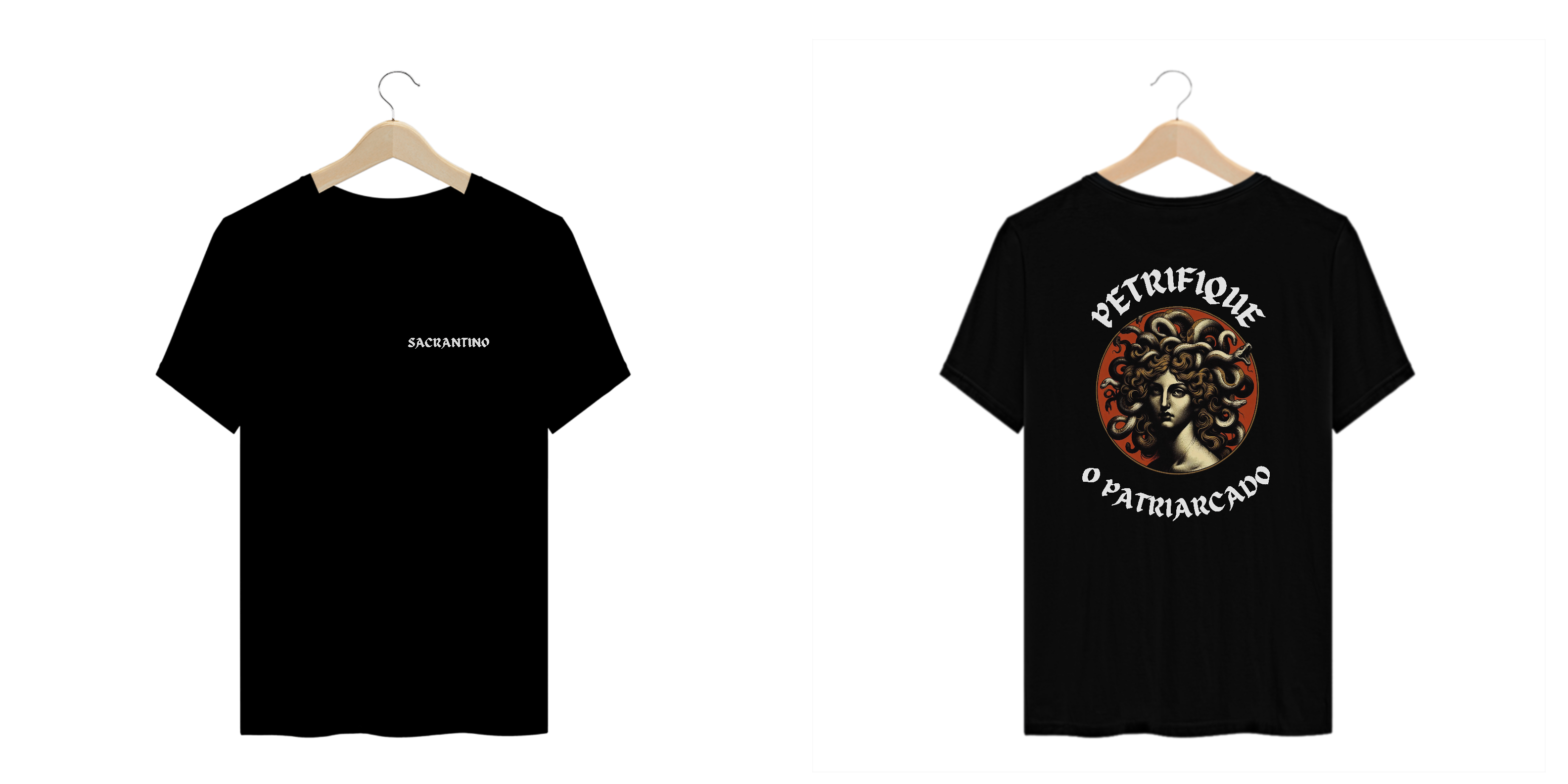 Camiseta plus size 100% algodão, modelo unissex com estampa Silk Digital, "Petrifique o Patriarcado", coleção original Sacrantino.