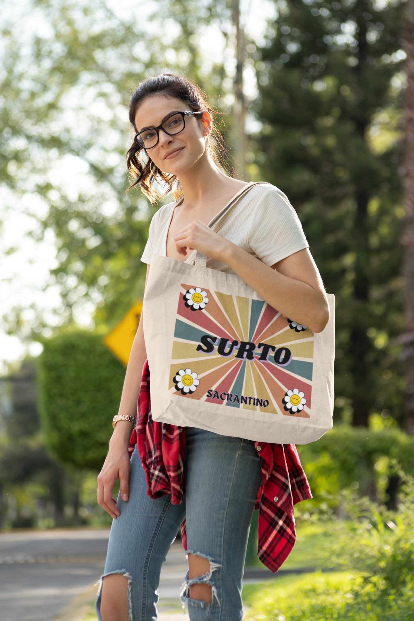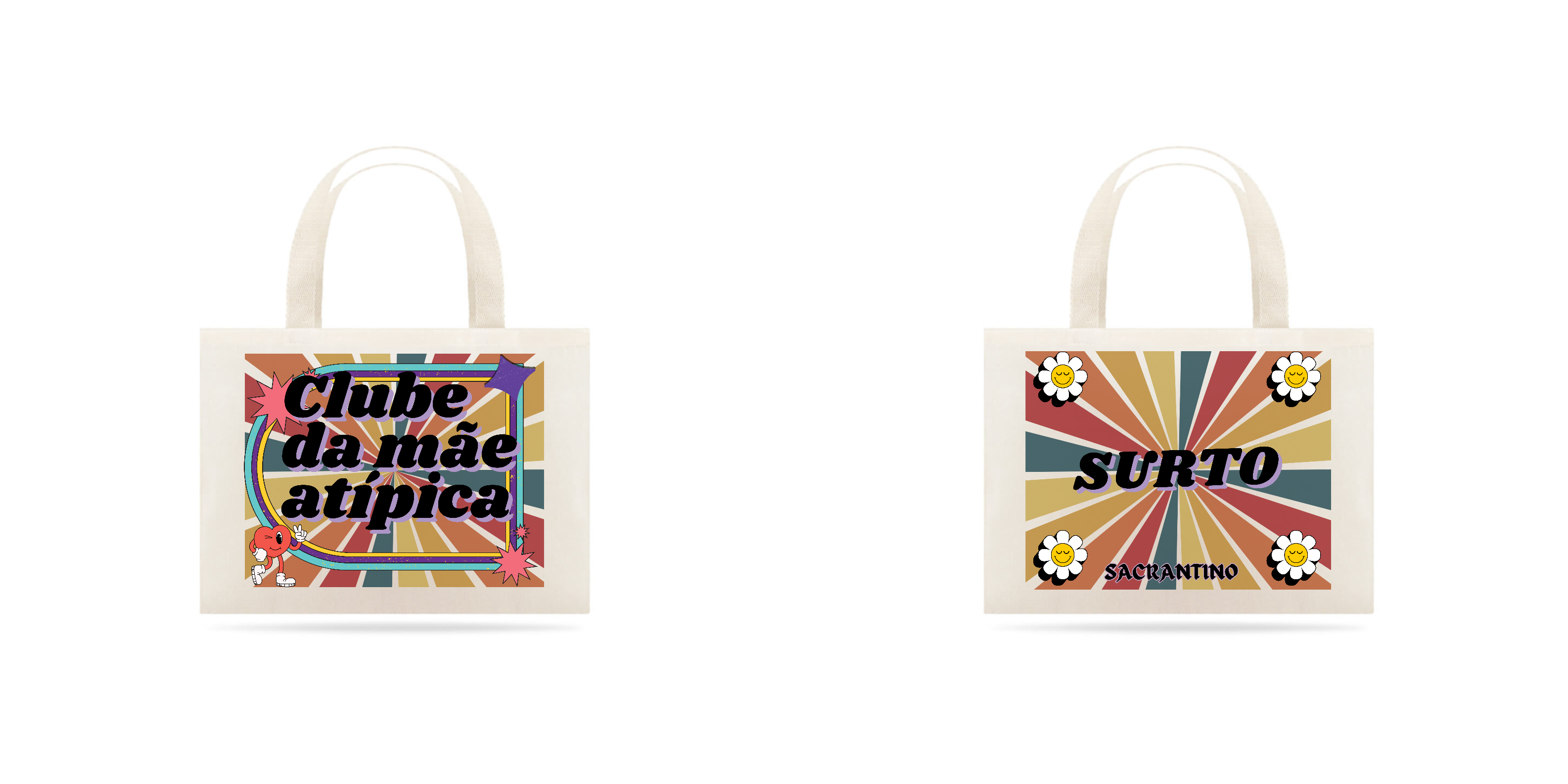 Ecobag estampada frente e verso: De um lado "Clube da mãe atípica".