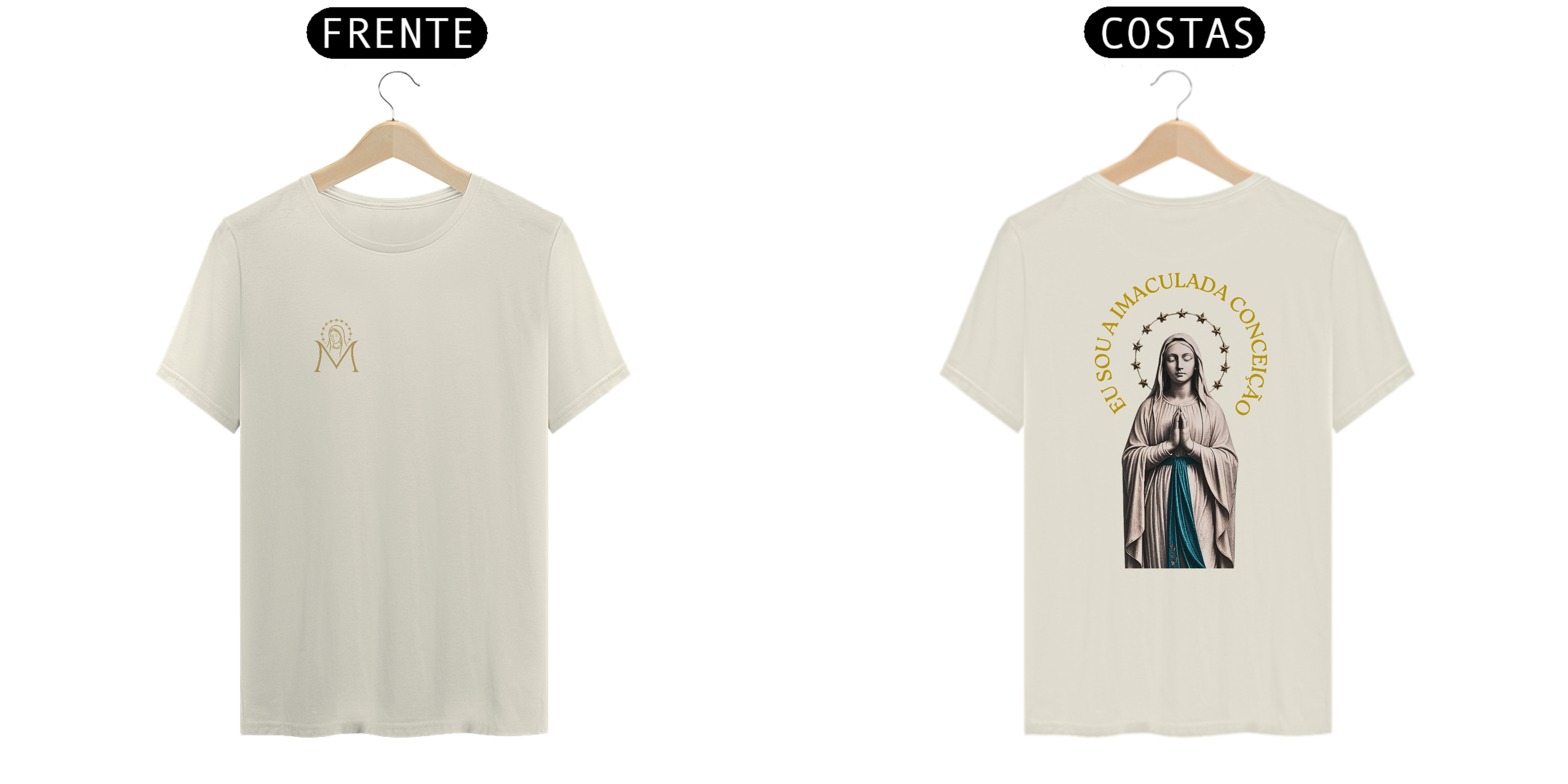 Carregue consigo a pureza e a graça de Maria! Inspirada na aparição de Nossa Senhora de Lourdes a Santa Bernadette, esta camiseta traz a frase que ecoou das palavras da própria Mãe de Deus: "Eu sou a Imaculada Conceição."