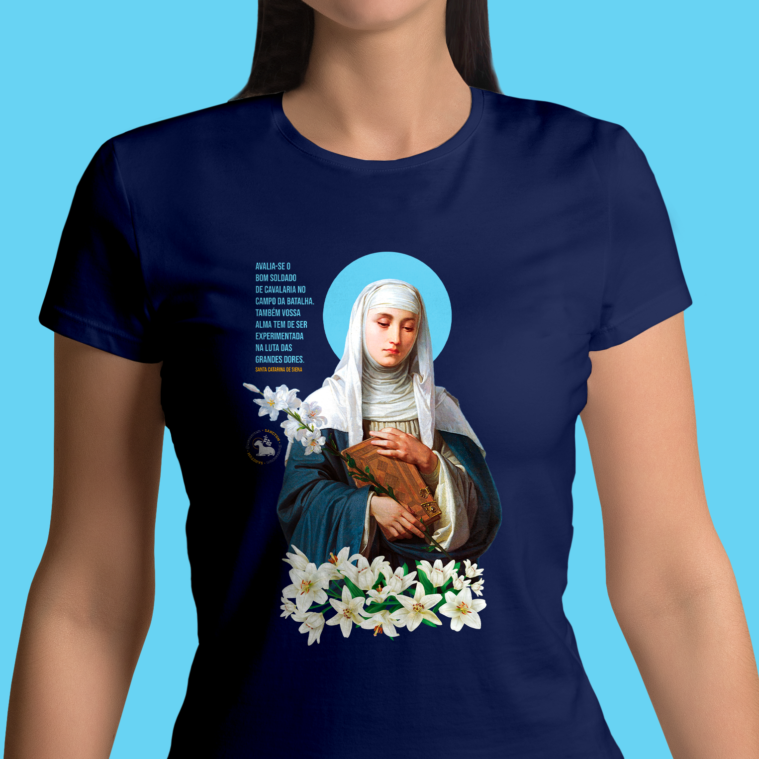 Santa Catarina de Sena (1347-138) foi uma mística e teóloga dominicana italiana, cuja influência se estendeu muito além das fronteiras de sua época. Conhecida por sua dedicação à Igreja Católica e seu papel na resolução de conflitos políticos, Catarina é lembrada por suas cartas e diálogos espirituais que refletem sua profunda devoção religiosa. Ela foi proclamada doutora da Igreja em 197 pelo Papa Paulo VI, em reconhecimento à sua profunda compreensão teológica e espiritualidade intensa. Seu legado é marcado por sua influência duradoura no pensamento cristão e sua defesa apaixonada da paz e da justiça.