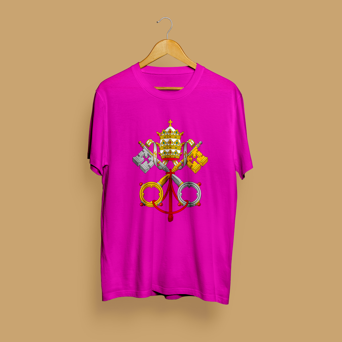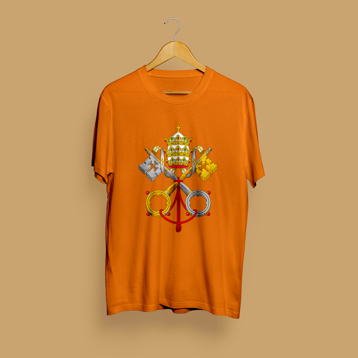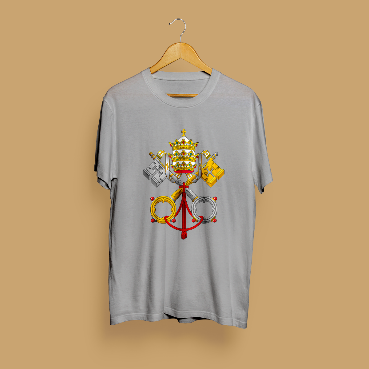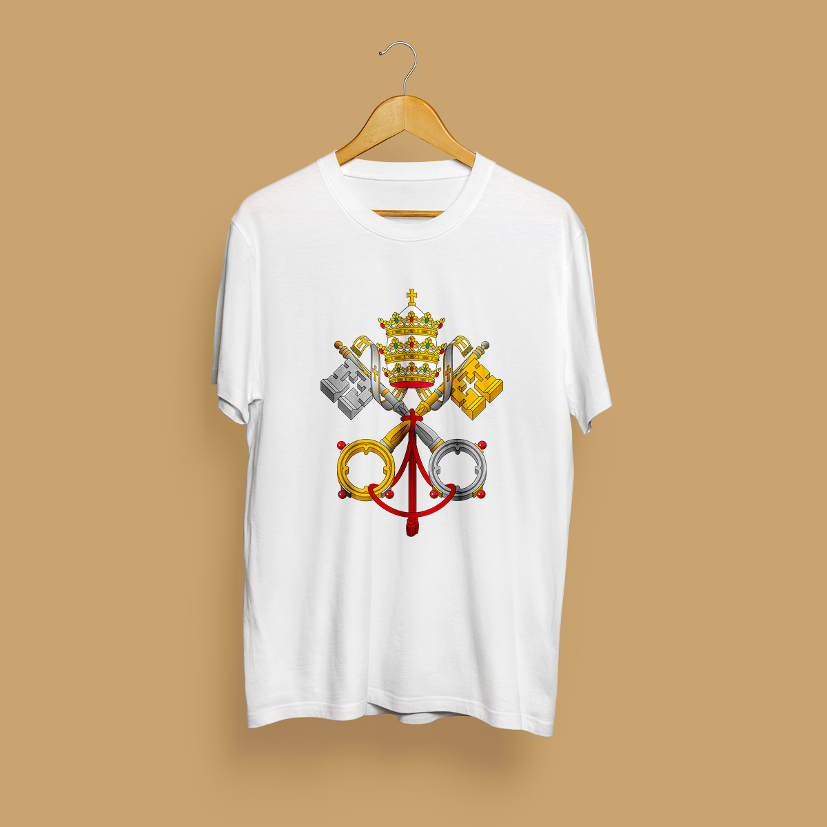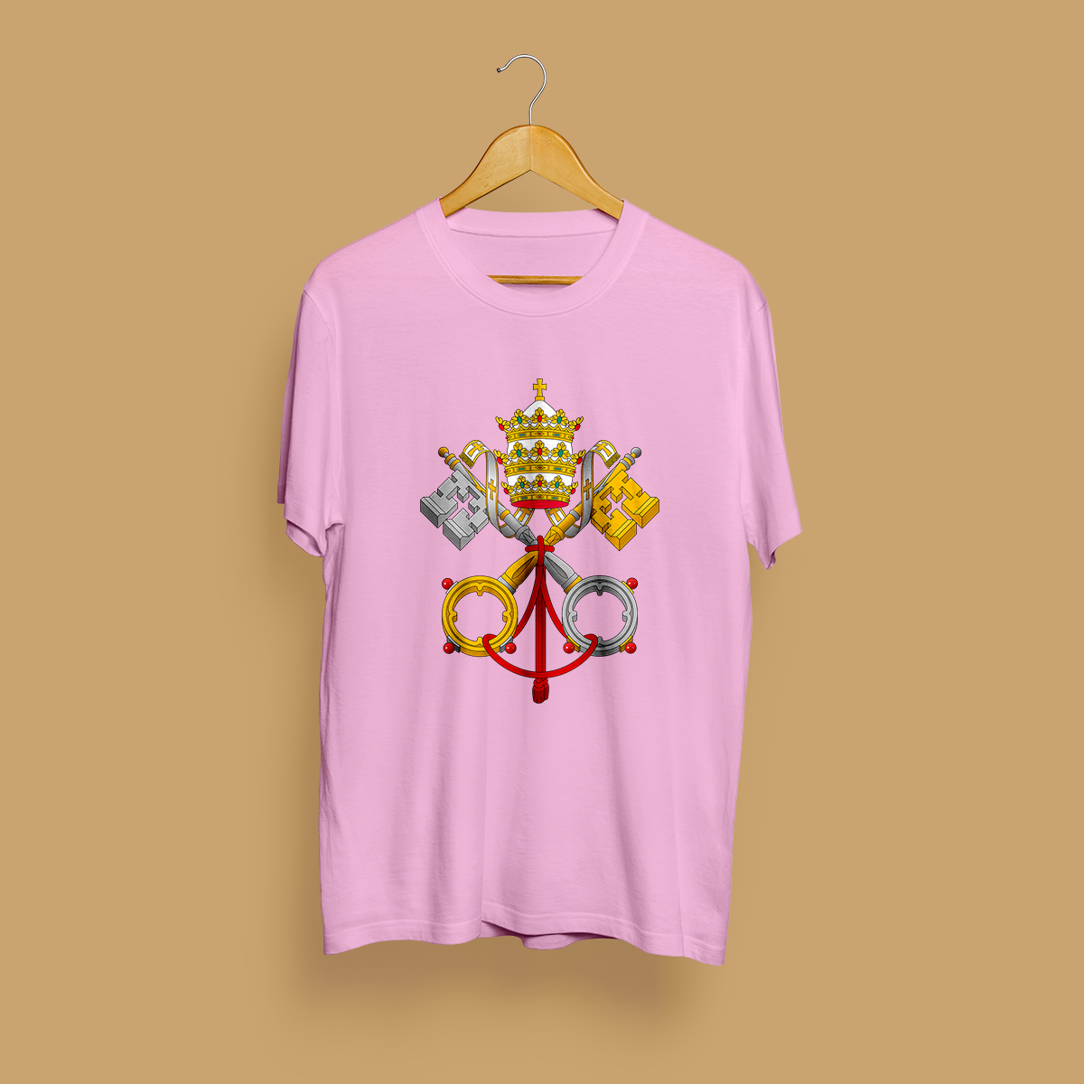 O brasão é coroado pela tiara papal, uma coroa tripla que simboliza a tríplice autoridade do Papa como supremo pontífice, chefe de estado e líder espiritual da nossa igreja.
