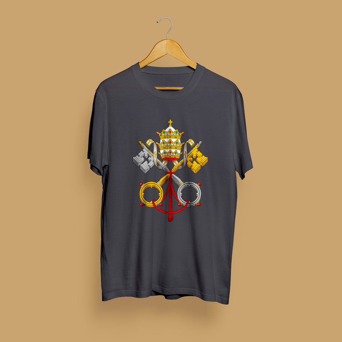 O símbolo das chaves cruzadas de São Pedro, que são atribuídas ao primeiro papa, e são um sinal do poder espiritual e temporal da Igreja. Uma das chaves é de ouro, simbolizando o poder celestial, enquanto a outra é de prata, representando o poder terreno.