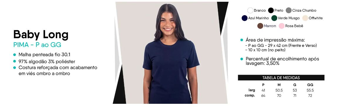Cores do produto: Como cada tela de computador ou celular tem seu próprio jeito de mostrar cores, então a cor da sua camiseta e da estampa pode ser um pouco diferente do que você viu online.