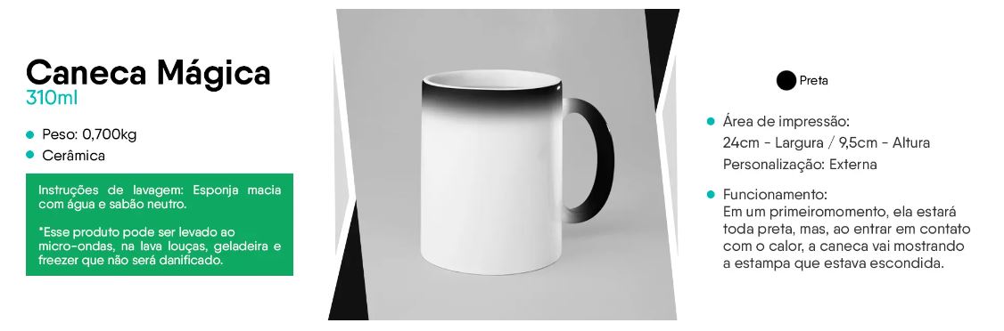 Atenção: Pra manter a mágica viva por mais tempo, trata a caneca com carinho, tá? Nada de esponja abrasiva ou lava-louças; uma esponjinha macia já dá conta do recado. Além disso, não utilize máquina de lavar na limpeza.