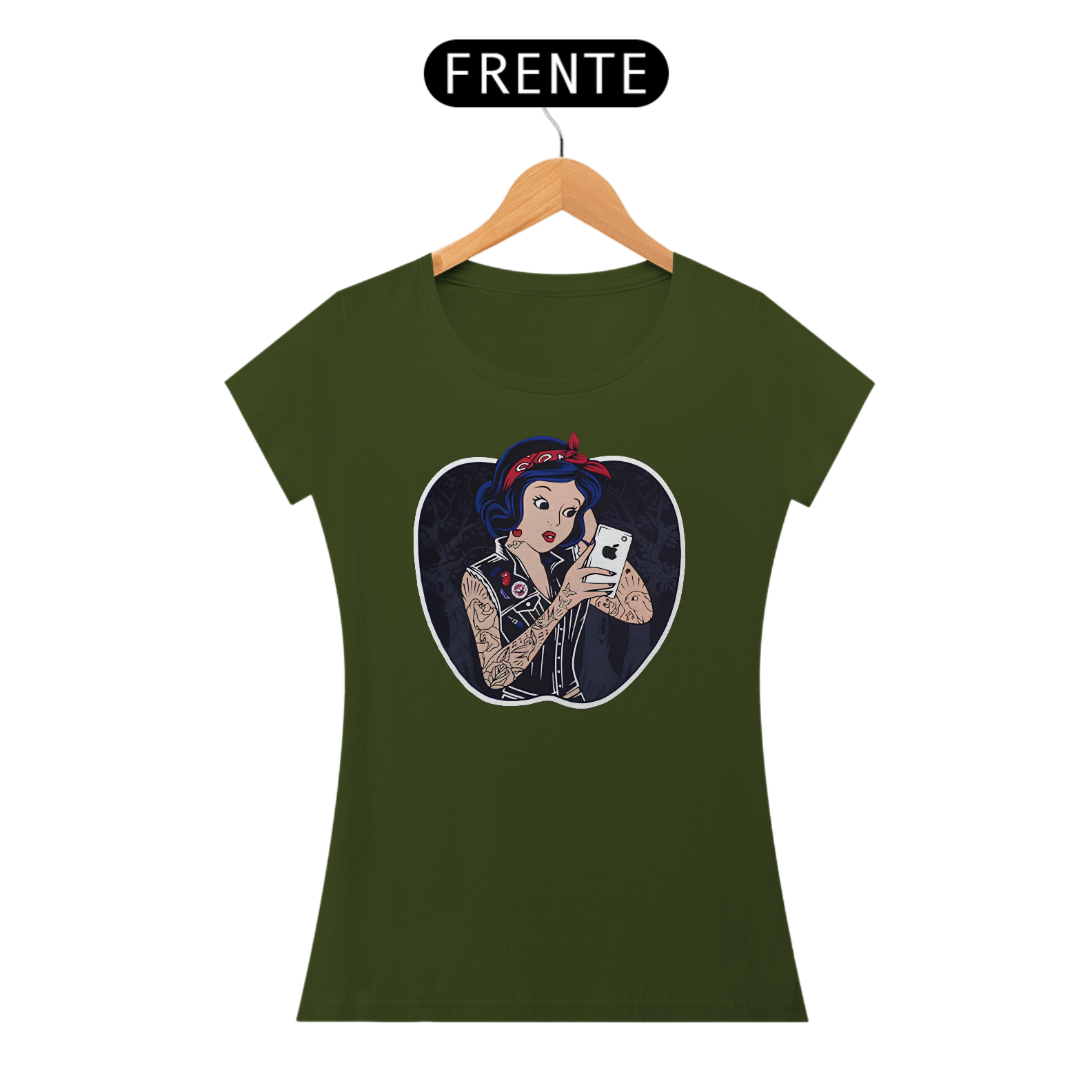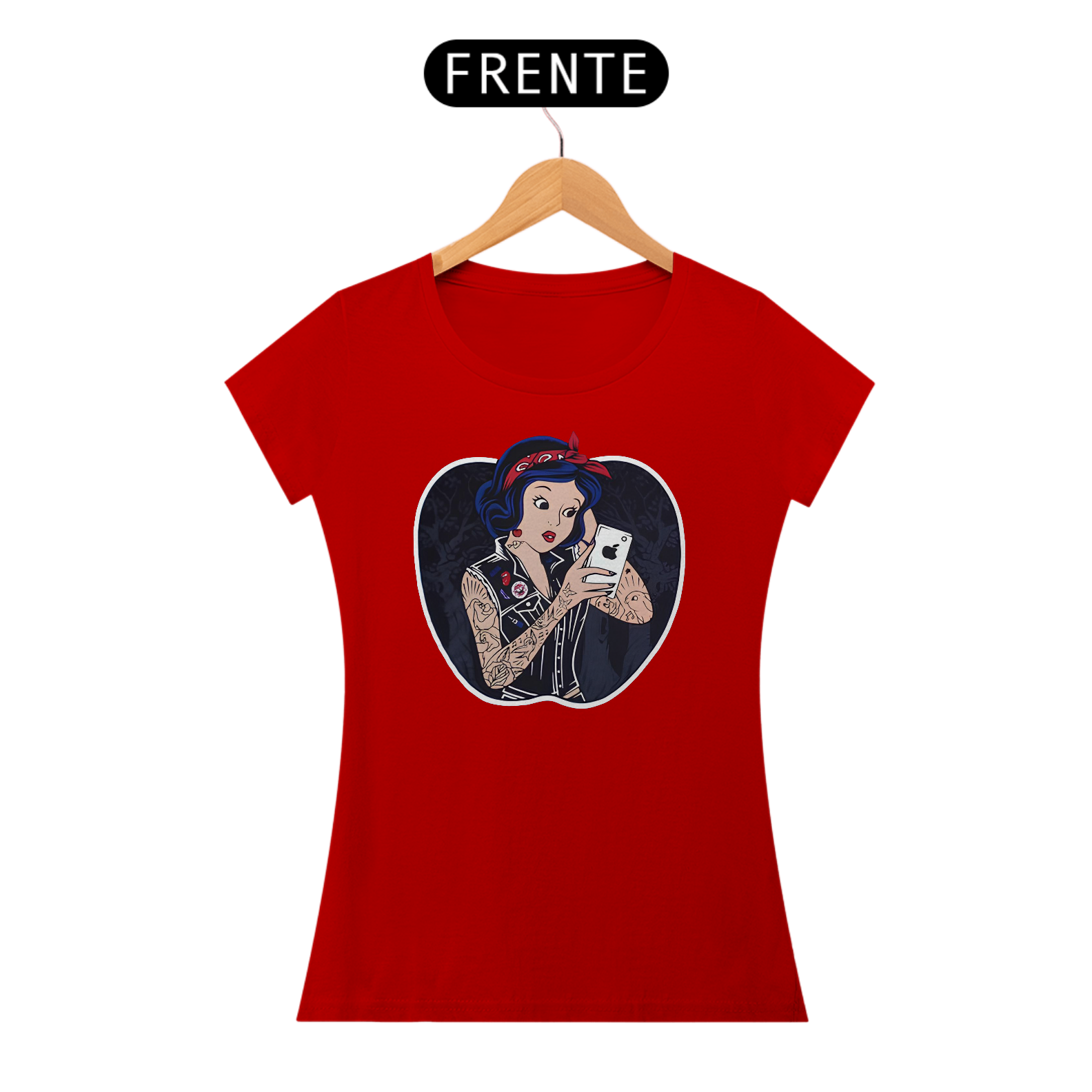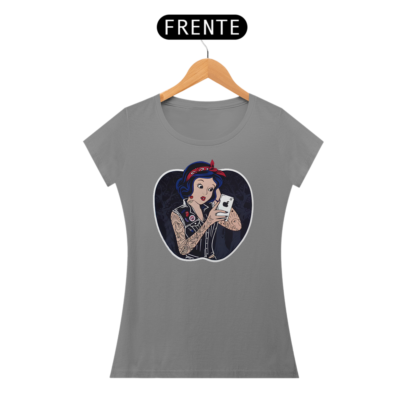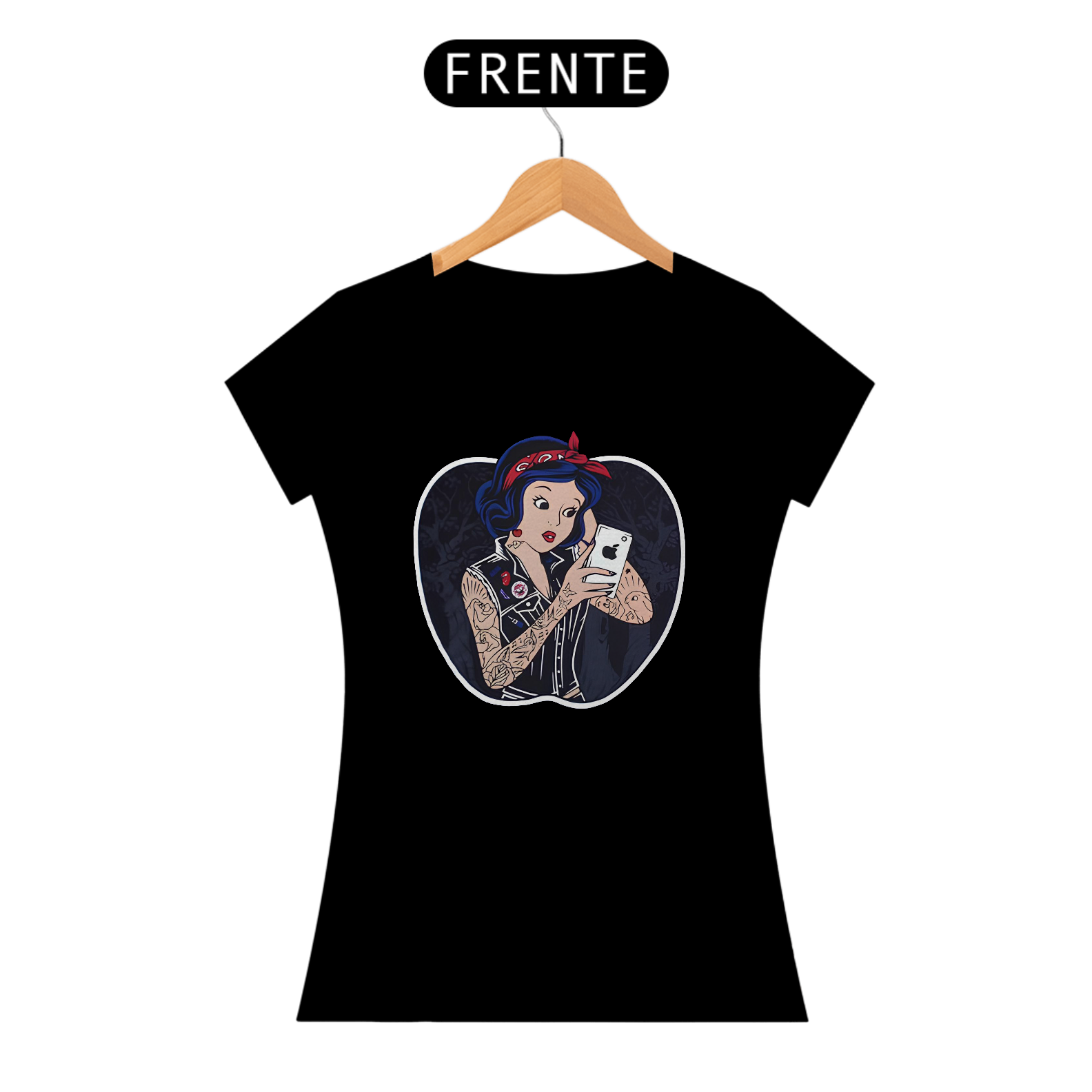 Imagine uma blusa que transporta você diretamente para o mundo encantado dos contos de fadas. Na estampa desta peça única, a Branca de Neve é o centro das atenções, elegantemente tatuada e segurando um iphone moderno. Sua expressão doce e seus traços delicados são capturados com detalhes impressionantes, enquanto ela segura o iphone com um ar de curiosidade e encanto. O contraste entre a figura clássica da Branca de Neve e a tecnologia contemporânea do iphone cria uma atmosfera intrigante e moderna. A blusa em si é feita de um tecido macio e confortável, perfeito para usar em qualquer aventura, seja na floresta encantada ou no mundo urbano. Com essa peça, você pode trazer um pouco de magia dos contos de fadas para o seu dia a dia, mantendo-se conectado ao mundo moderno ao mesmo tempo.