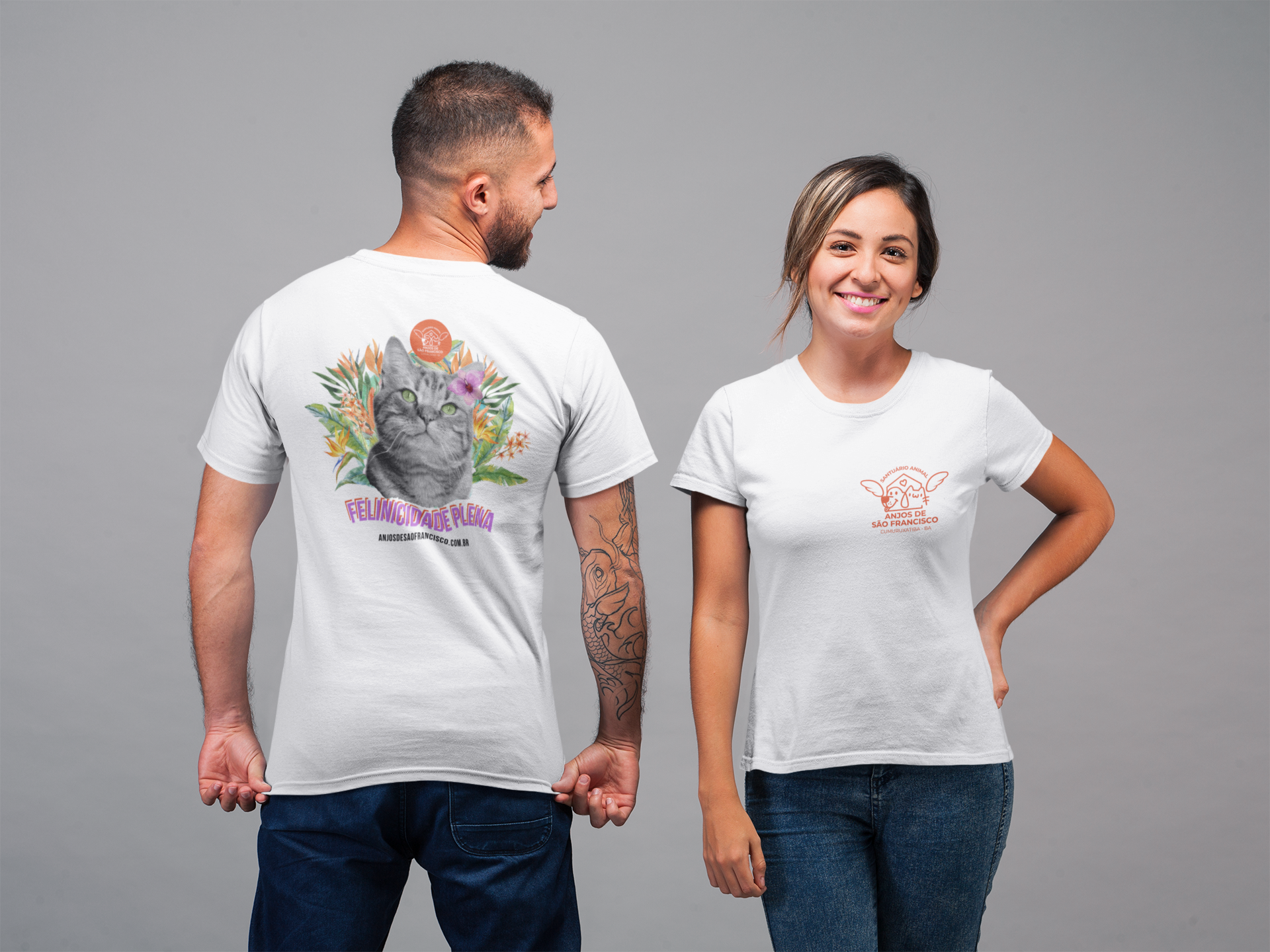 Vista a felicidade que só quem ama felinos entende! Nossa camiseta Felinicidade Plena é a escolha ideal para quem carrega o amor pelos gatos no coração e no estilo. Com estampa nas costas e o logo do abrigo no peito, do lado esquerdo, ela traz conforto e um toque discreto de personalidade. Além de estilosa, sua compra contribui para o cuidado e proteção dos nossos peludinhos do abrigo.