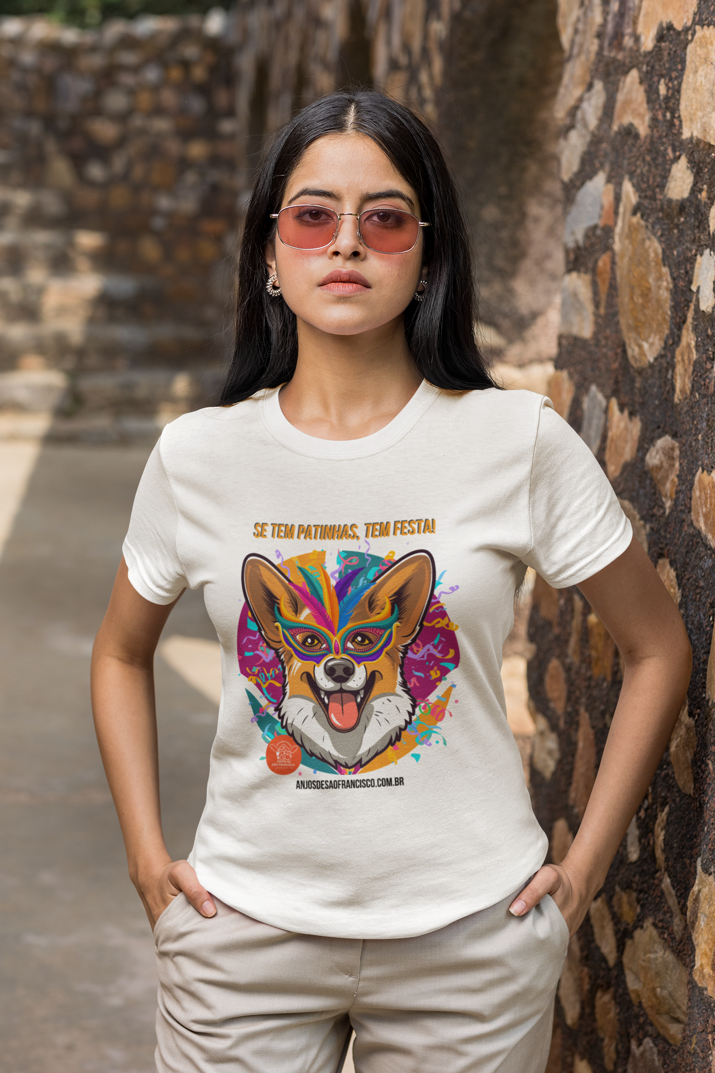 Parte das vendas apoia o Santuário Animal Anjos de São Francisco, que resgata e cuida de cães e gatos de rua em Cumuruxatiba, Bahia.