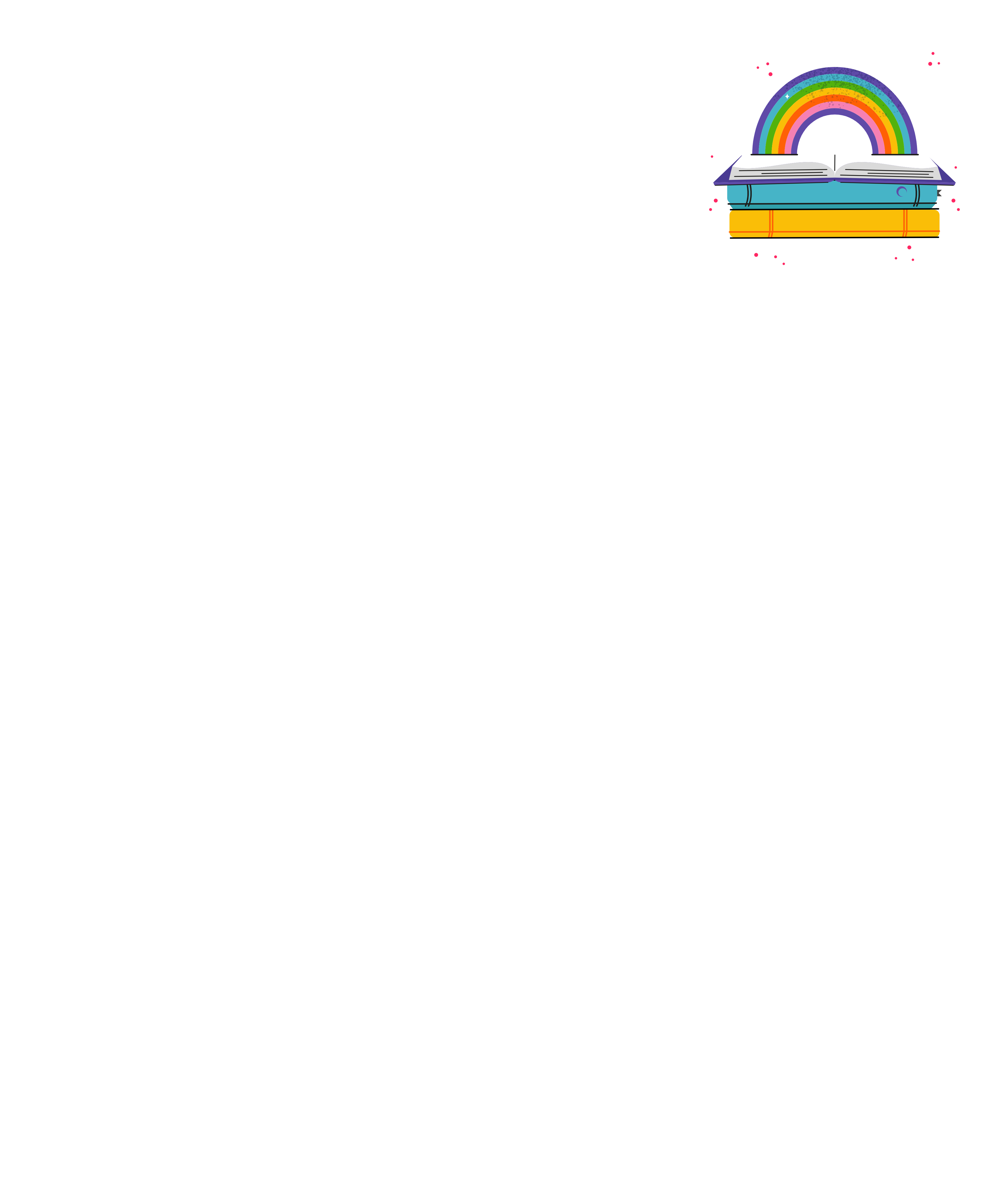 Camiseta livros e arco-íris.