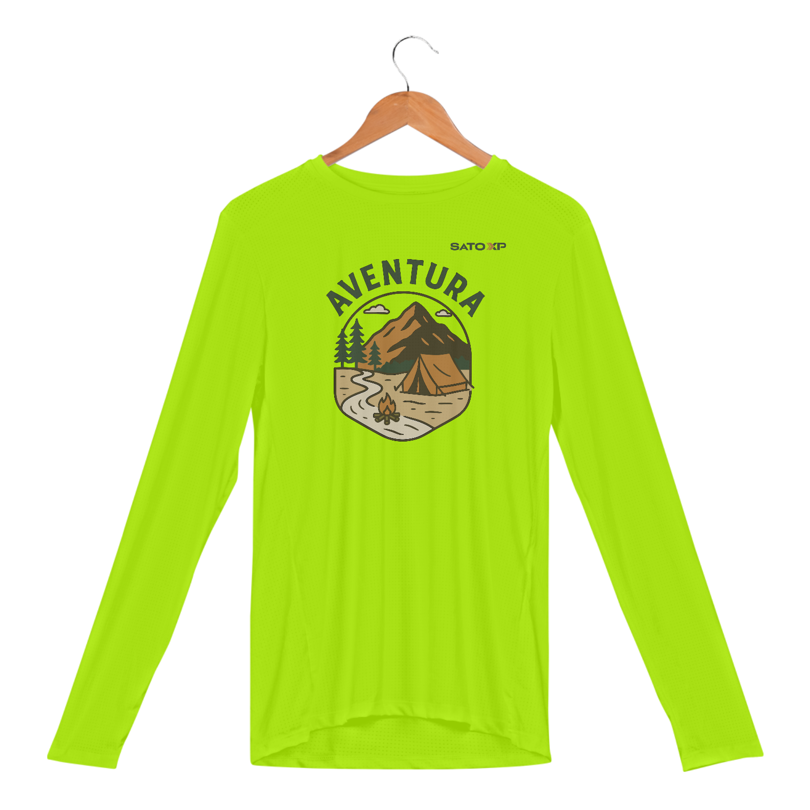 A camisa Sport Dry UV AVENTURA une conforto, proteção e estilo em uma peça criada especialmente para os exploradores modernos. A estampa traz uma cena icônica: montanhas ao fundo, barraca armada, fogueira acesa e uma trilha que convida a seguir adiante — tudo em tons terrosos que traduzem conexão com a natureza.