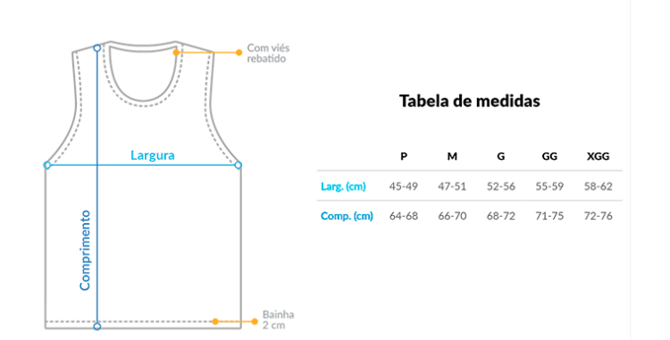 Atenção: As medidas podem variar um pouco, até 3cm pra mais ou pra menos, mas nada que mude o quanto ela vai ficar legal em você!