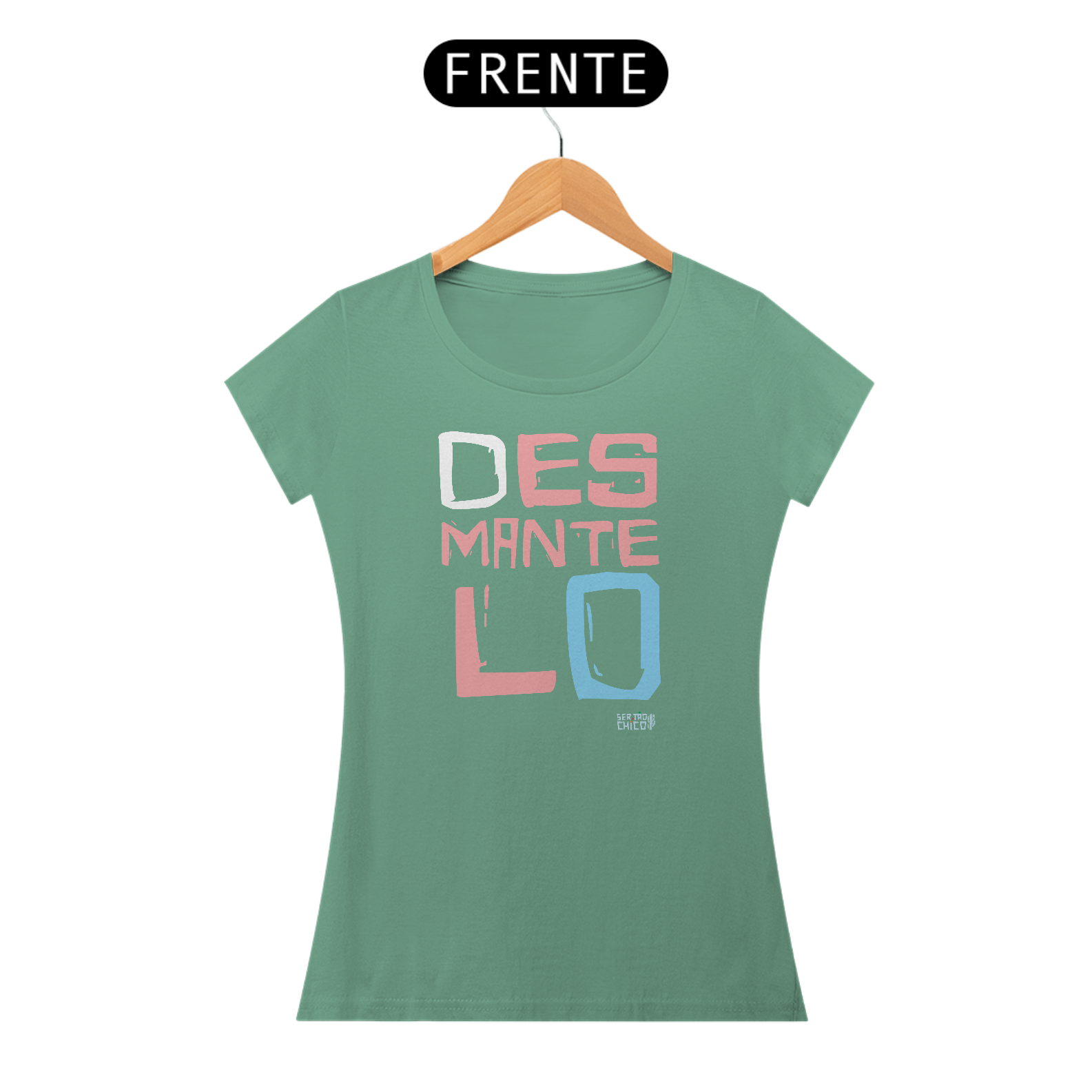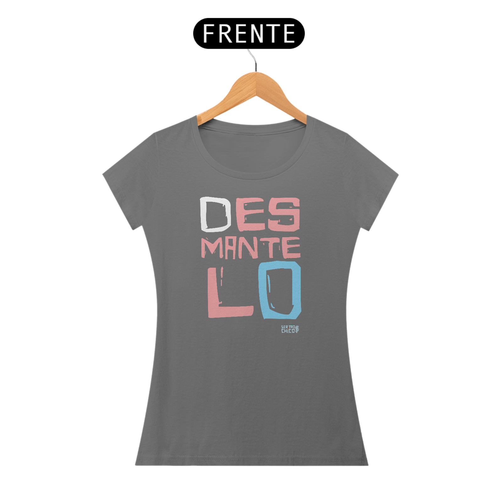 Camiseta em malha estonada 100% algodão com estampa DESMANTELO