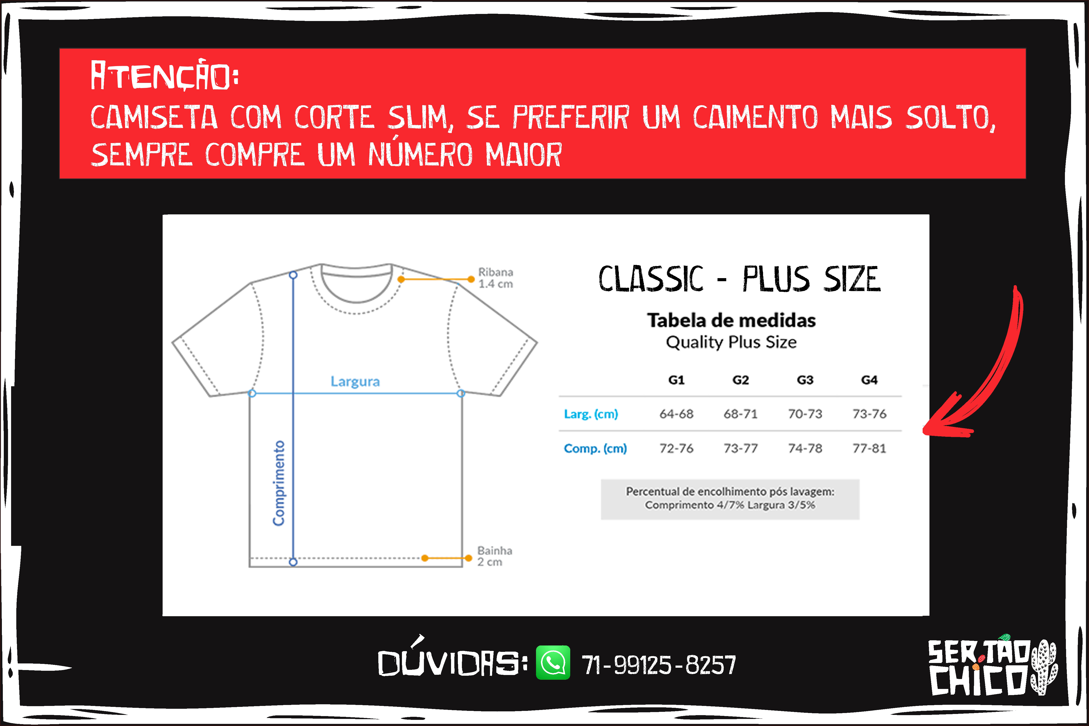 Atenção: As medidas podem variar um pouco, até 3cm pra mais ou pra menos, mas nada que mude o quanto ela vai ficar legal em você!