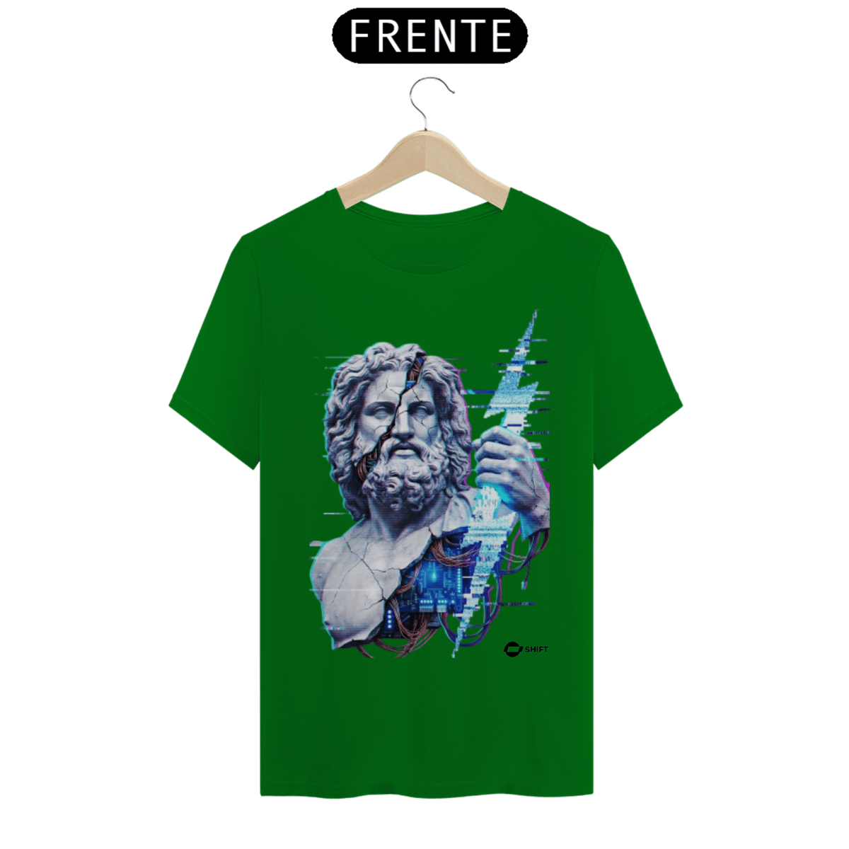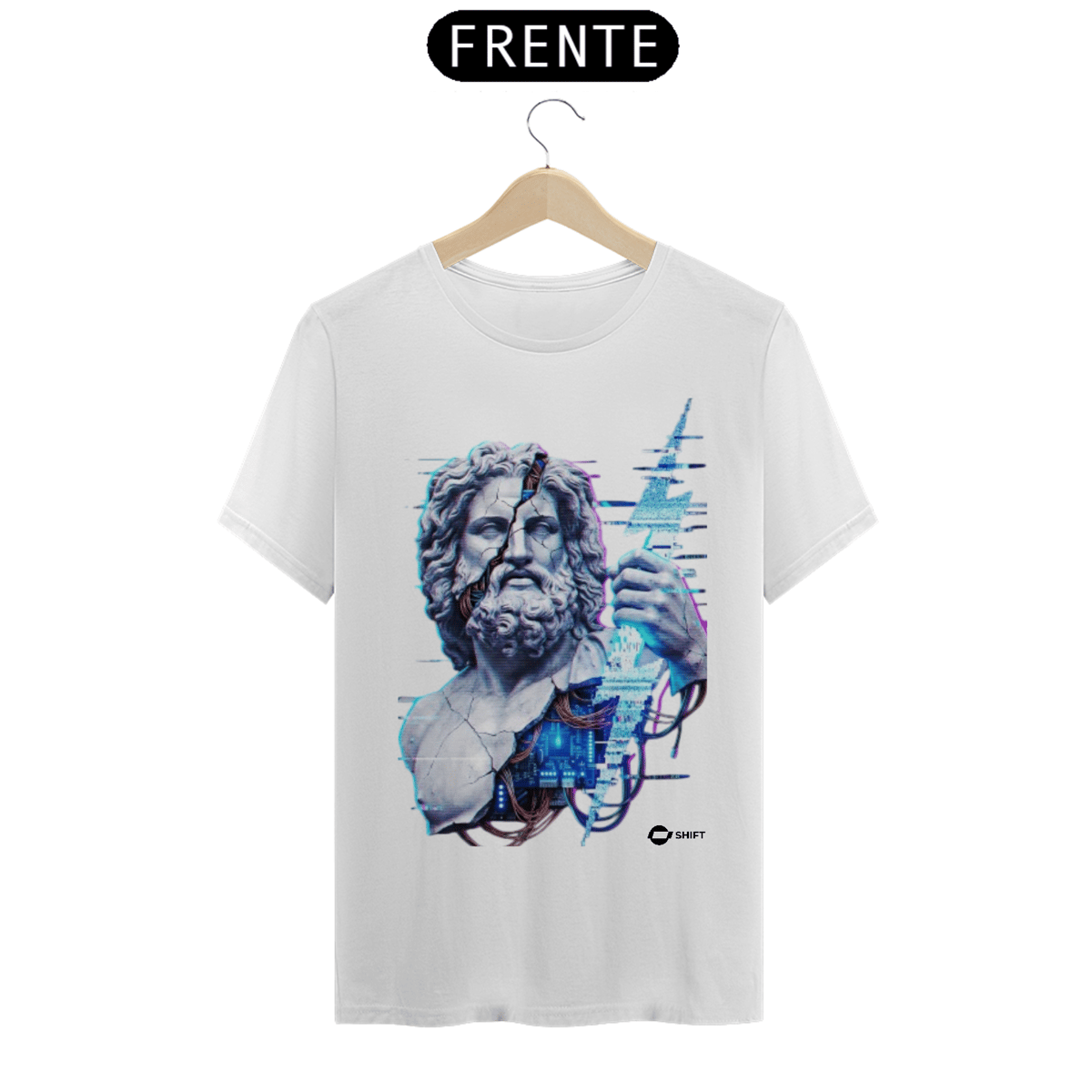 A fusão definitiva entre o mito e a máquina. Z.E.U.S. Prime reimagina o soberano do Olimpo como o núcleo de processamento central de um sistema em colapso. Com detalhes que fundem o mármore clássico a circuitos elétricos e distorção glitch, esta estampa é para quem comanda o trovão no território digital.
