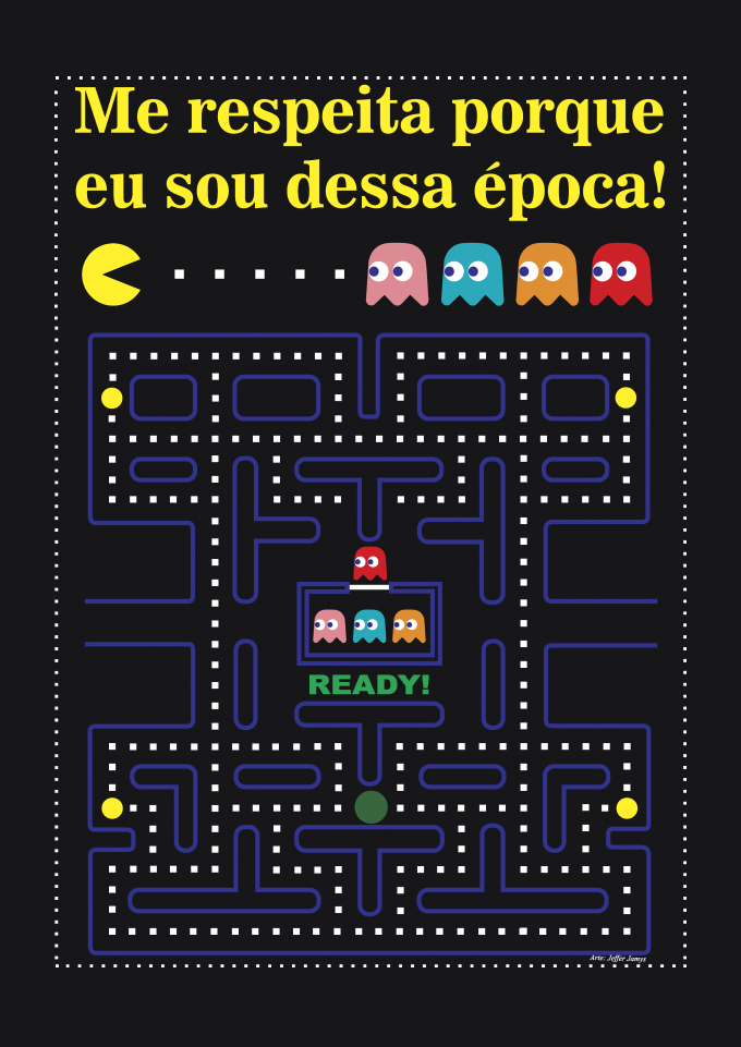 Pac Man um jogo inesquecível, e que fez parte da infancia e de milhões. Tenha a sua camisa também
