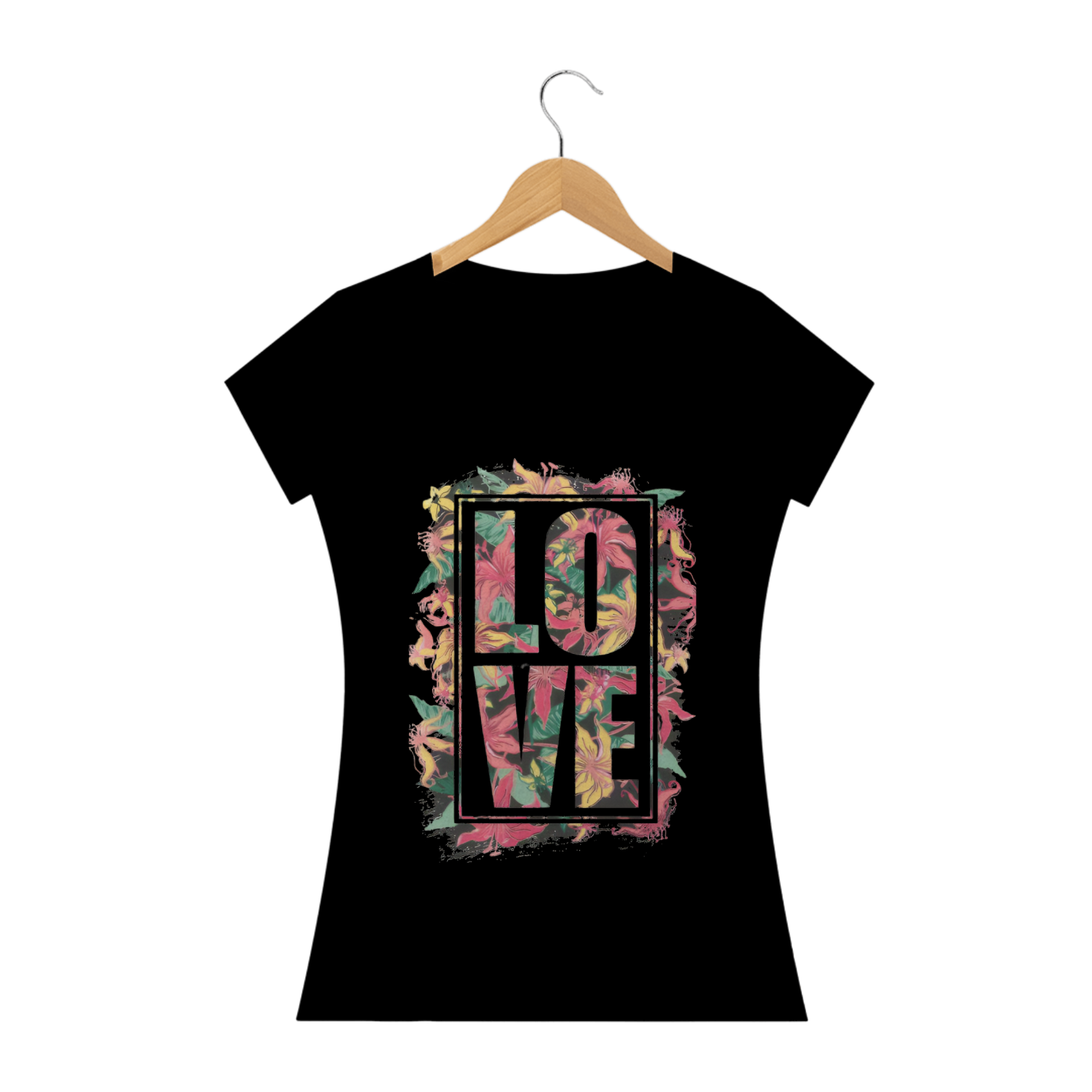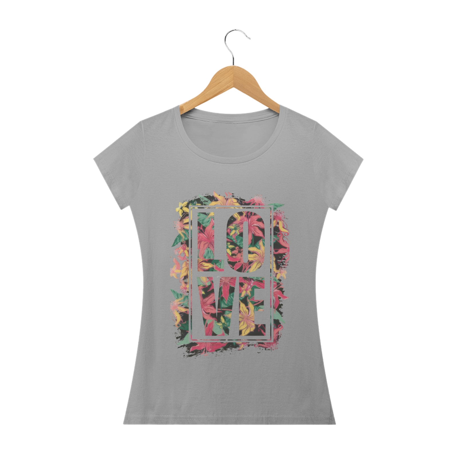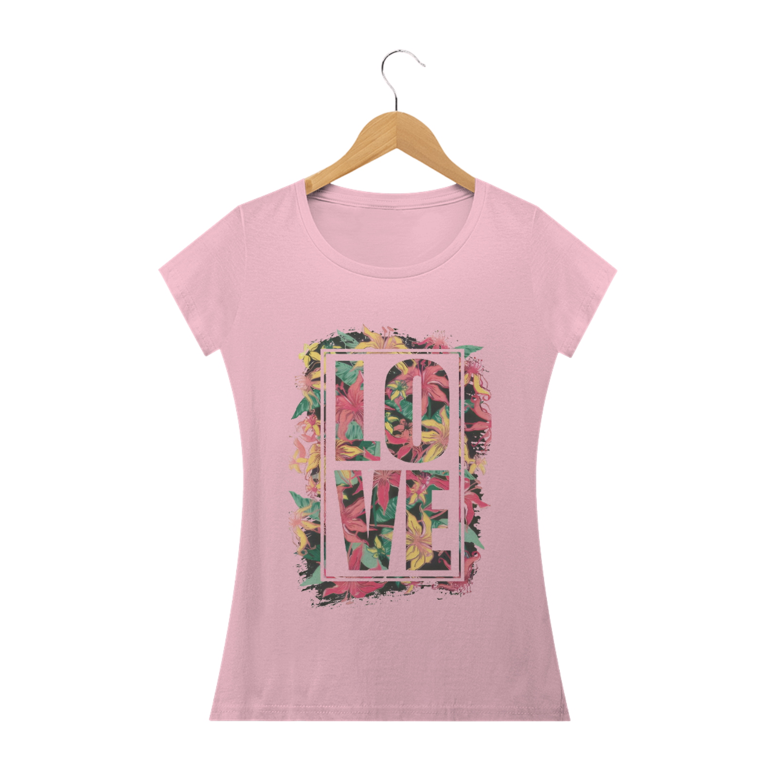 Amor no seu estilo! Vista-se com a Camisa Feminina Baby Look Classic - Estampa Love e mostre seu carinho com elegância. Encomende a sua hoje e espalhe amor com cada olhar.