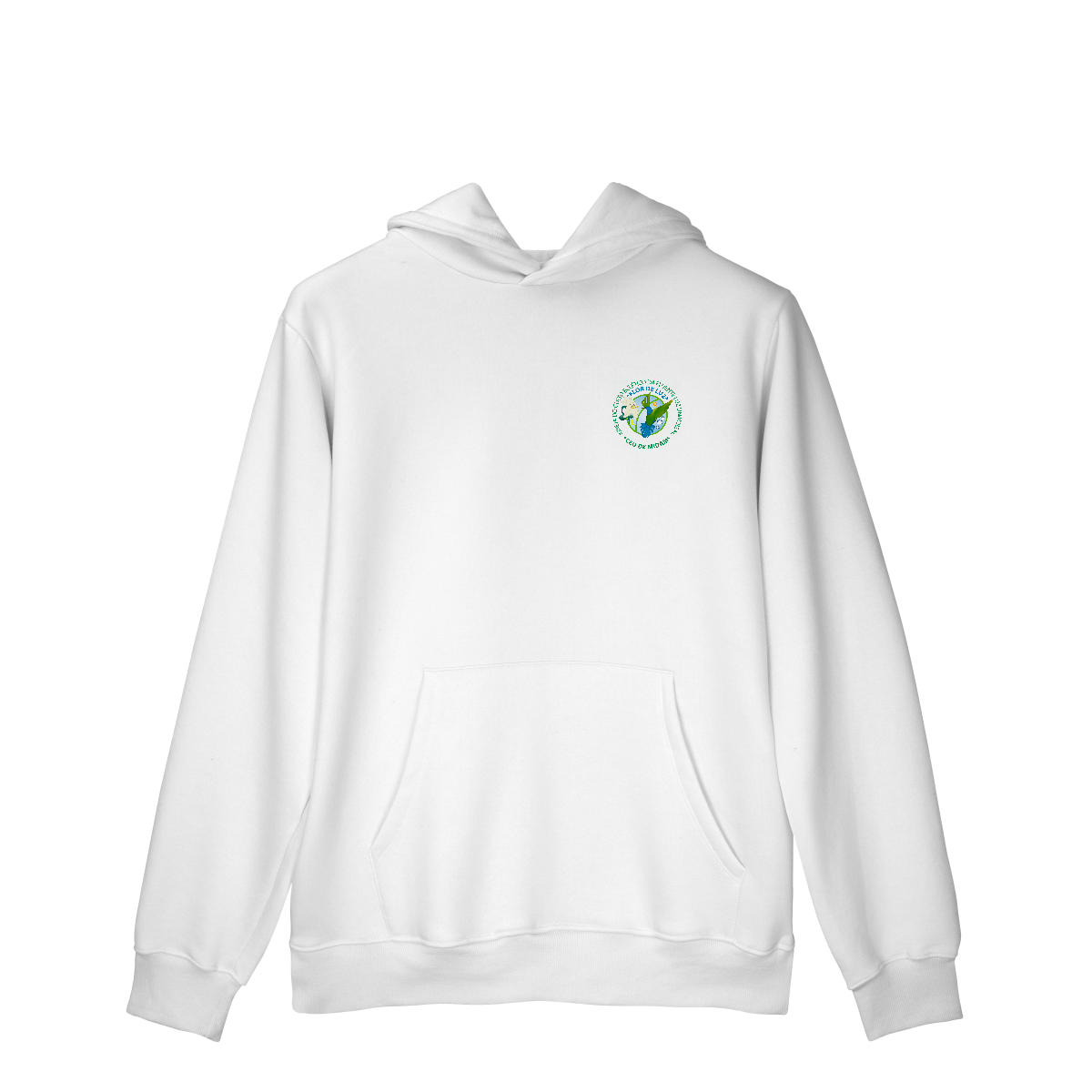 Características: Bolso frontal tipo canguru, capuz com cordão e acabamento confortável, ideal para uso pessoal e corporativo.