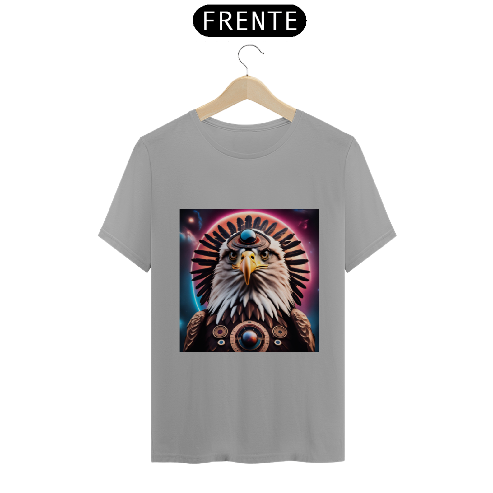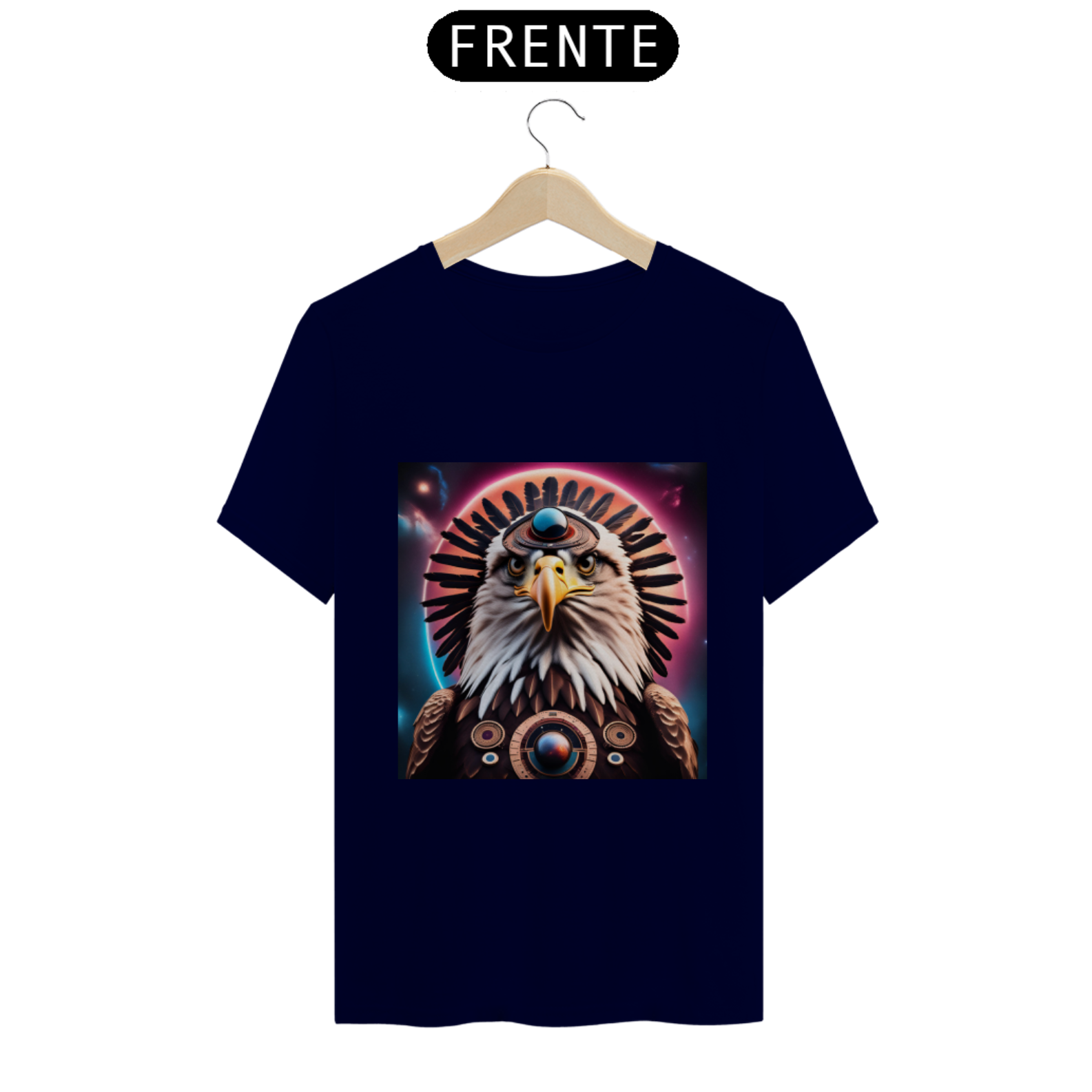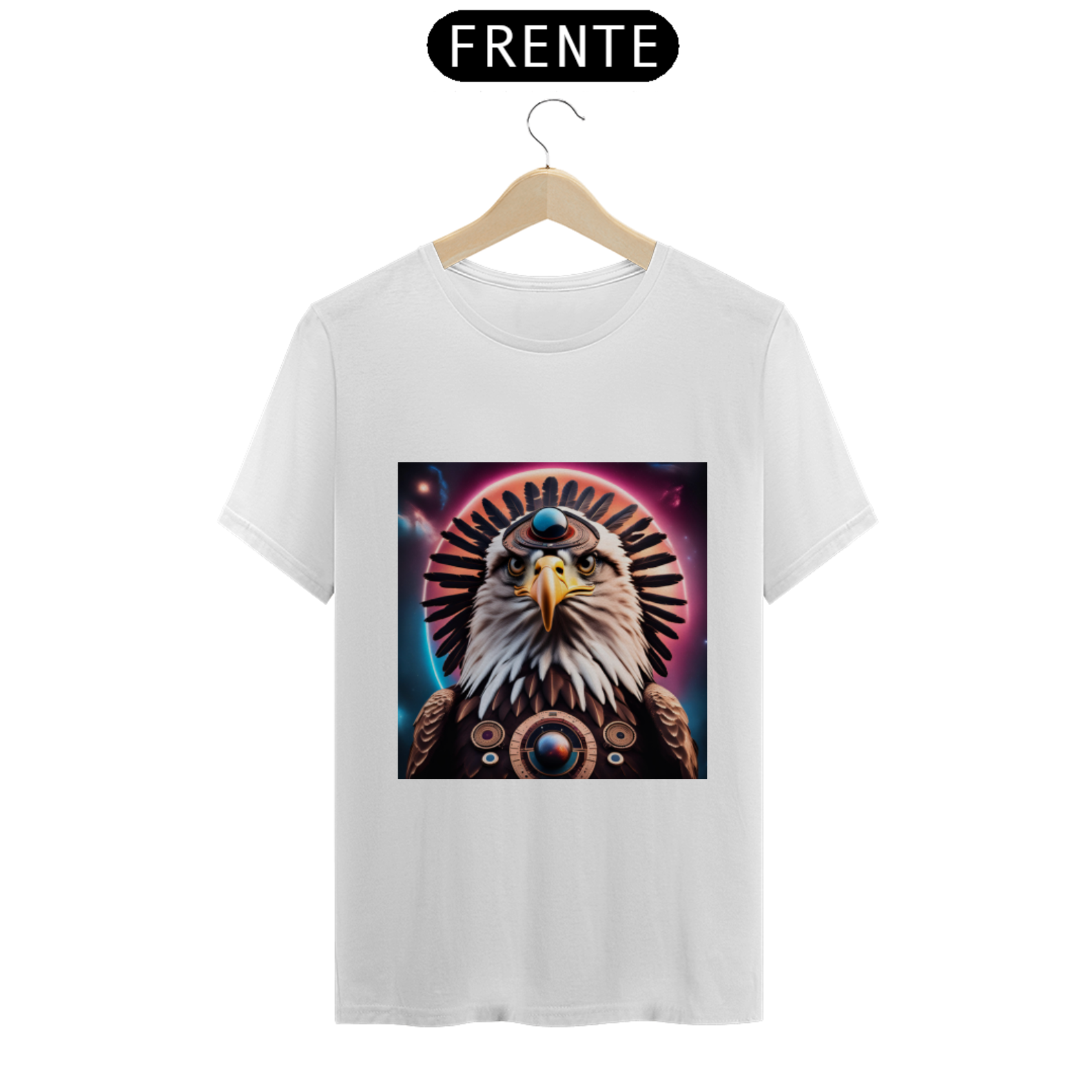 Abrace a magia da Águia Estelar com esta camiseta única, que não apenas representa um símbolo de visão e liberdade, mas também nos lembra da nossa própria conexão com o cosmos e da nossa capacidade de alcançar as alturas espirituais mais elevadas.