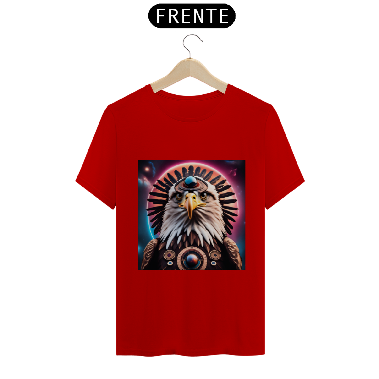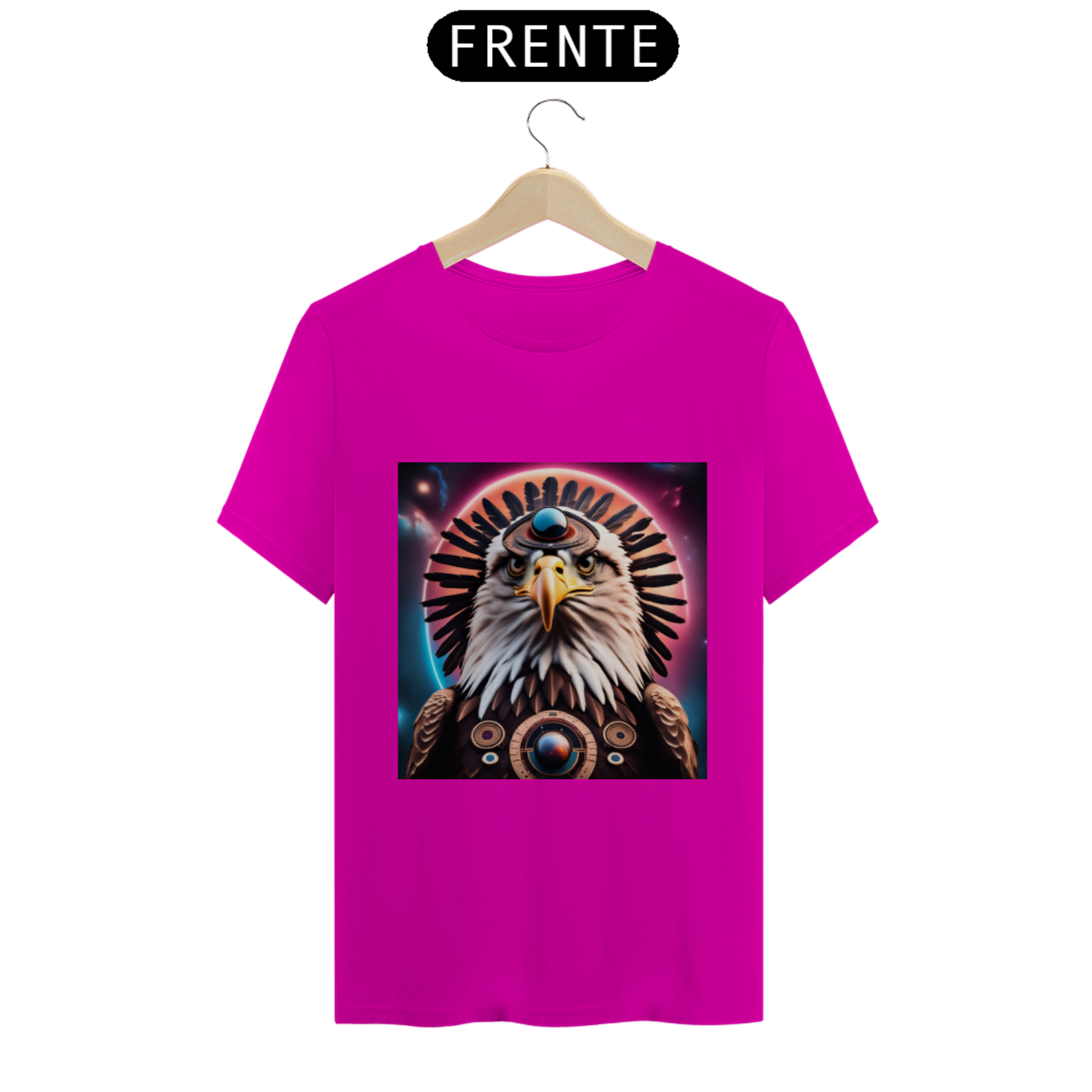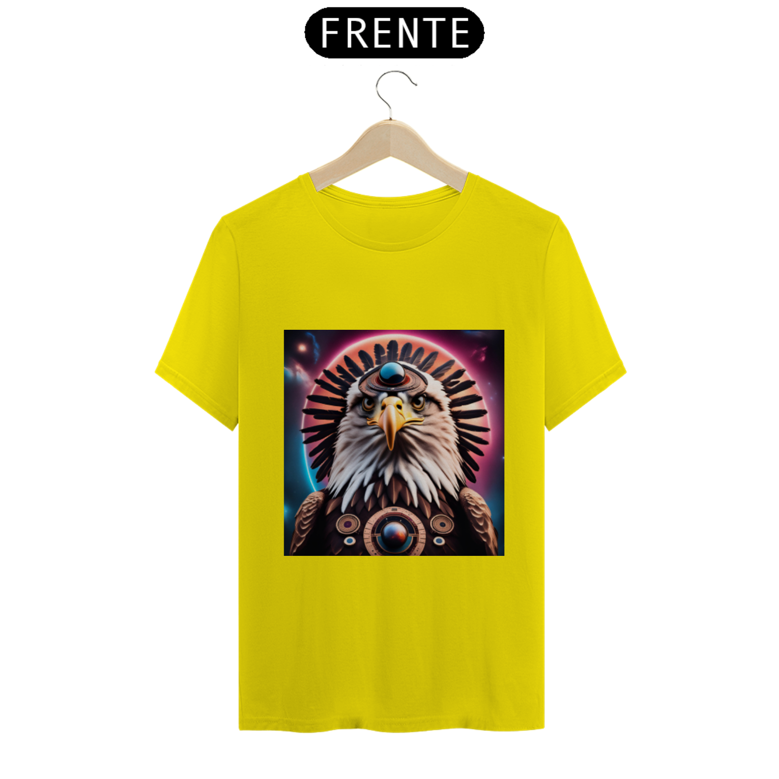 Abrace a magia da Águia Estelar com esta camiseta única, que não apenas representa um símbolo de visão e liberdade, mas também nos lembra da nossa própria conexão com o cosmos e da nossa capacidade de alcançar as alturas espirituais mais elevadas.