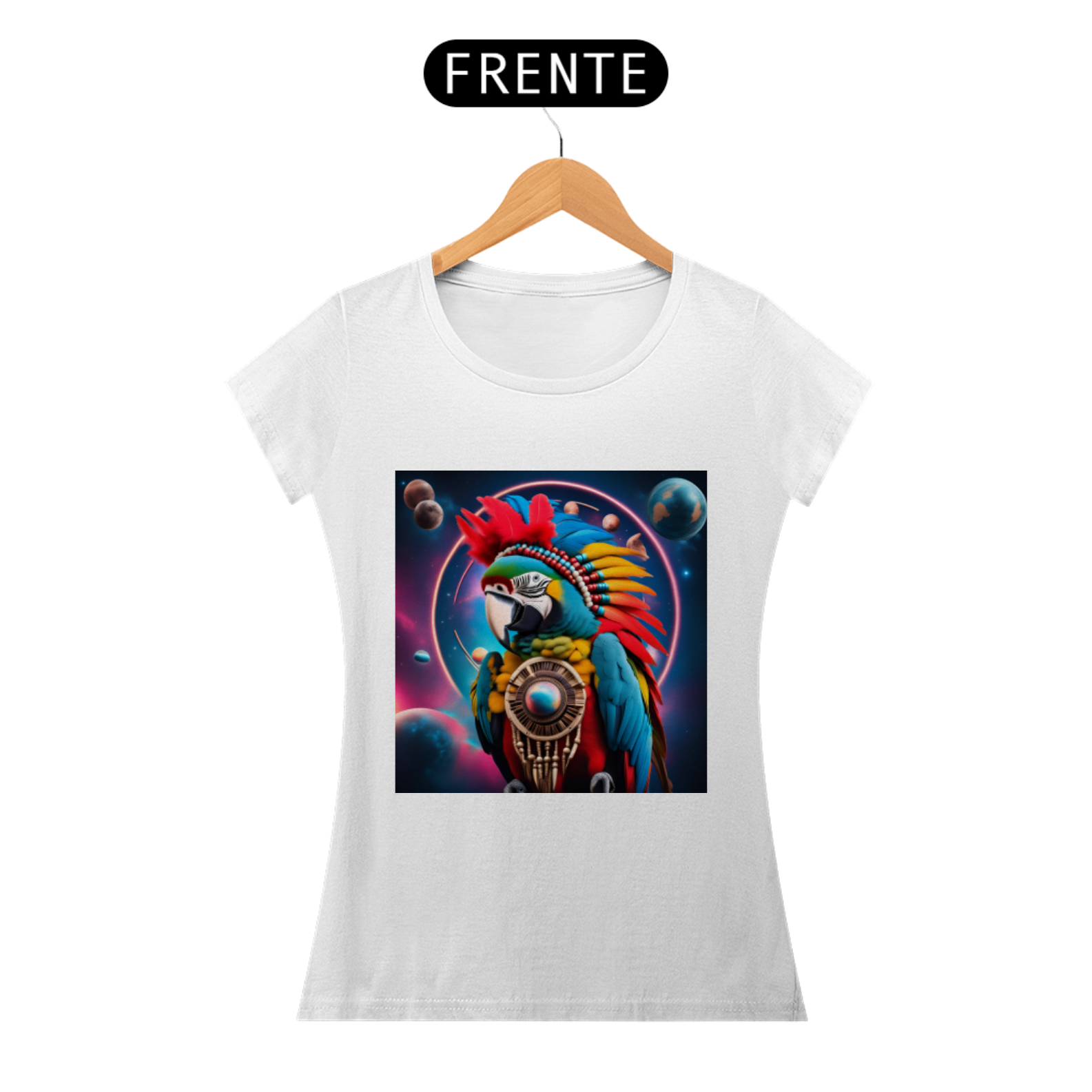 Explore o colorido universo espiritual e conecte-se com a majestade do cosmos com nossa camiseta exclusiva, apresentando a deslumbrante Arara Estelar como sua guia cósmica. Desenvolvida para aqueles que buscam uma jornada espiritual e cultural, esta camiseta é uma expressão vibrante da conexão entre a natureza e o divino.