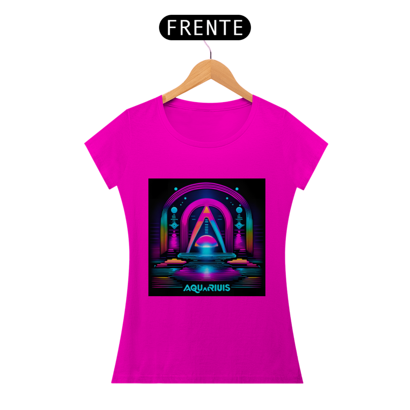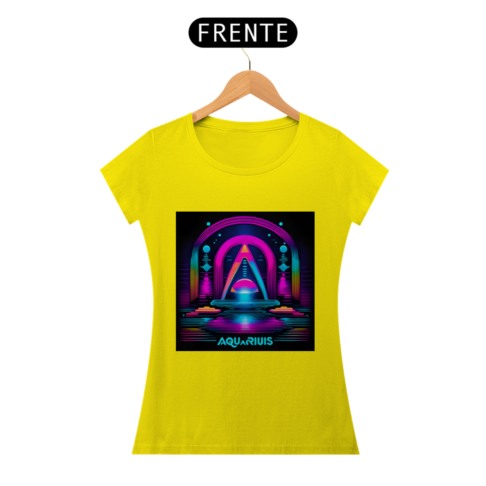 A estampa apresenta o símbolo de Aquário em linhas neon brilhantes, destacando-se com um visual contemporâneo e arrojado. Representando a originalidade, a liberdade e o humanitarismo dos nascidos sob este signo, o design capta a essência aquariana de forma inovadora e estilosa.