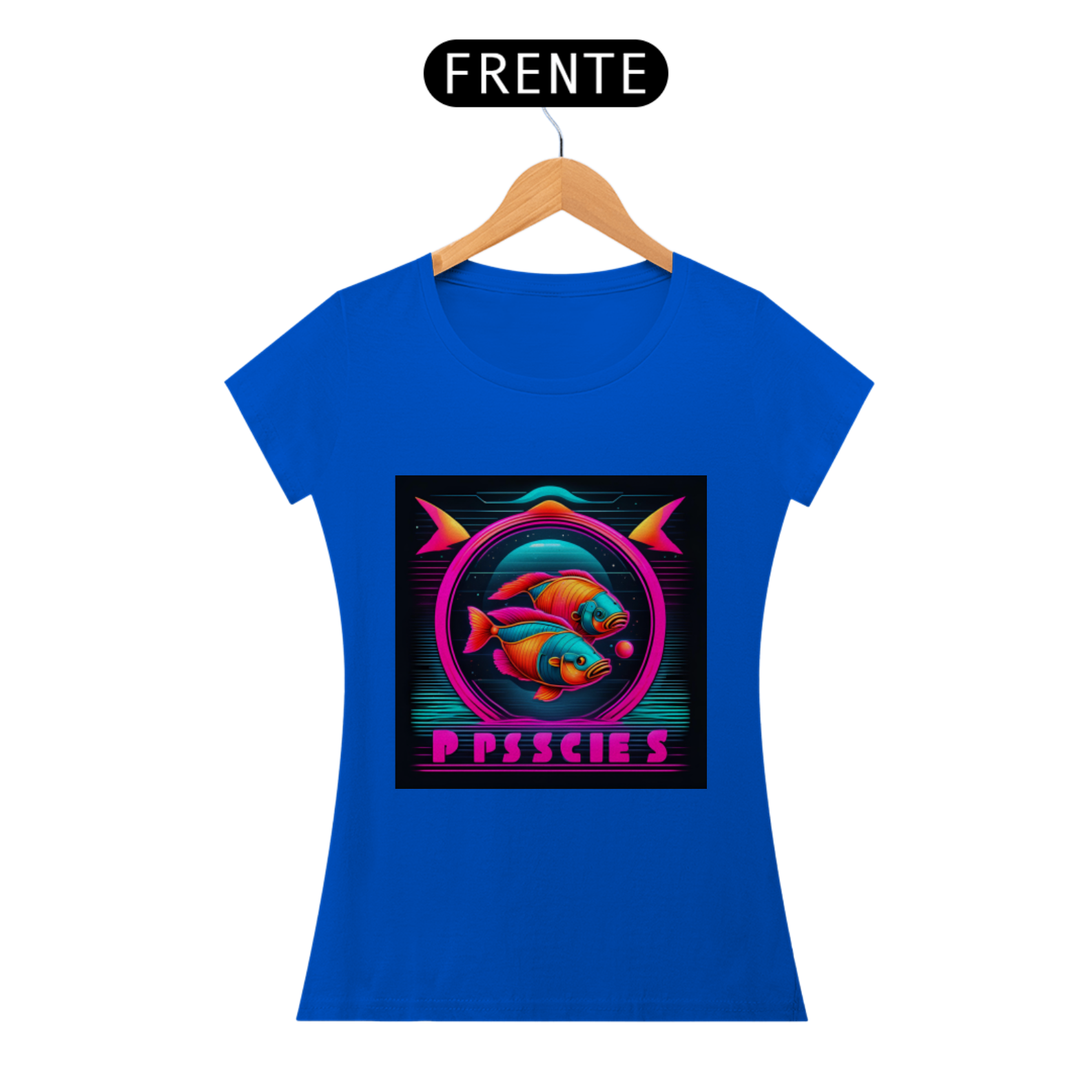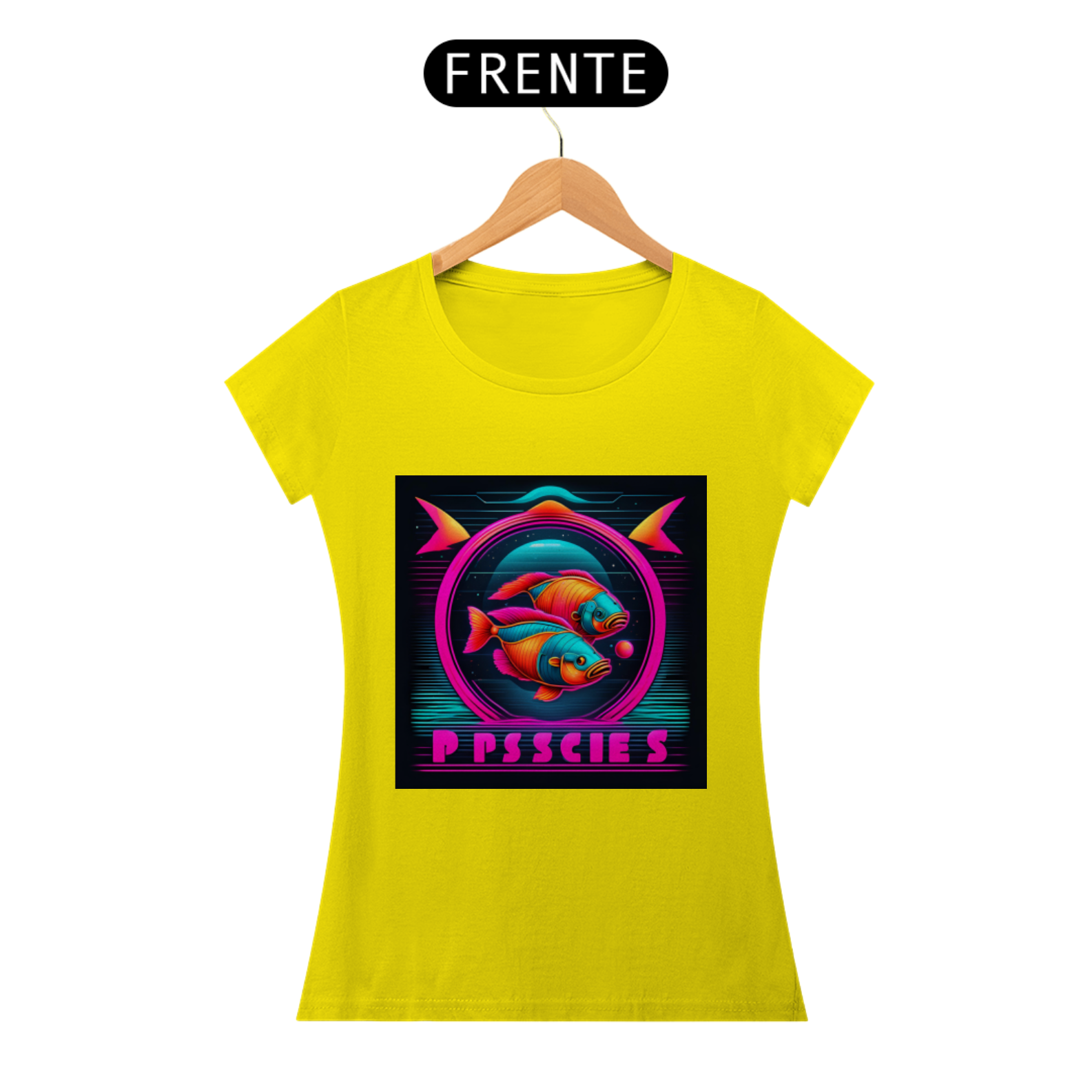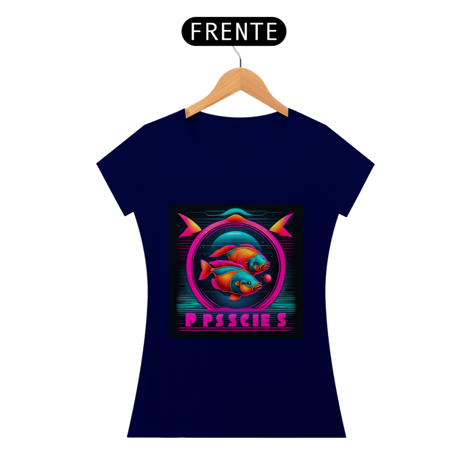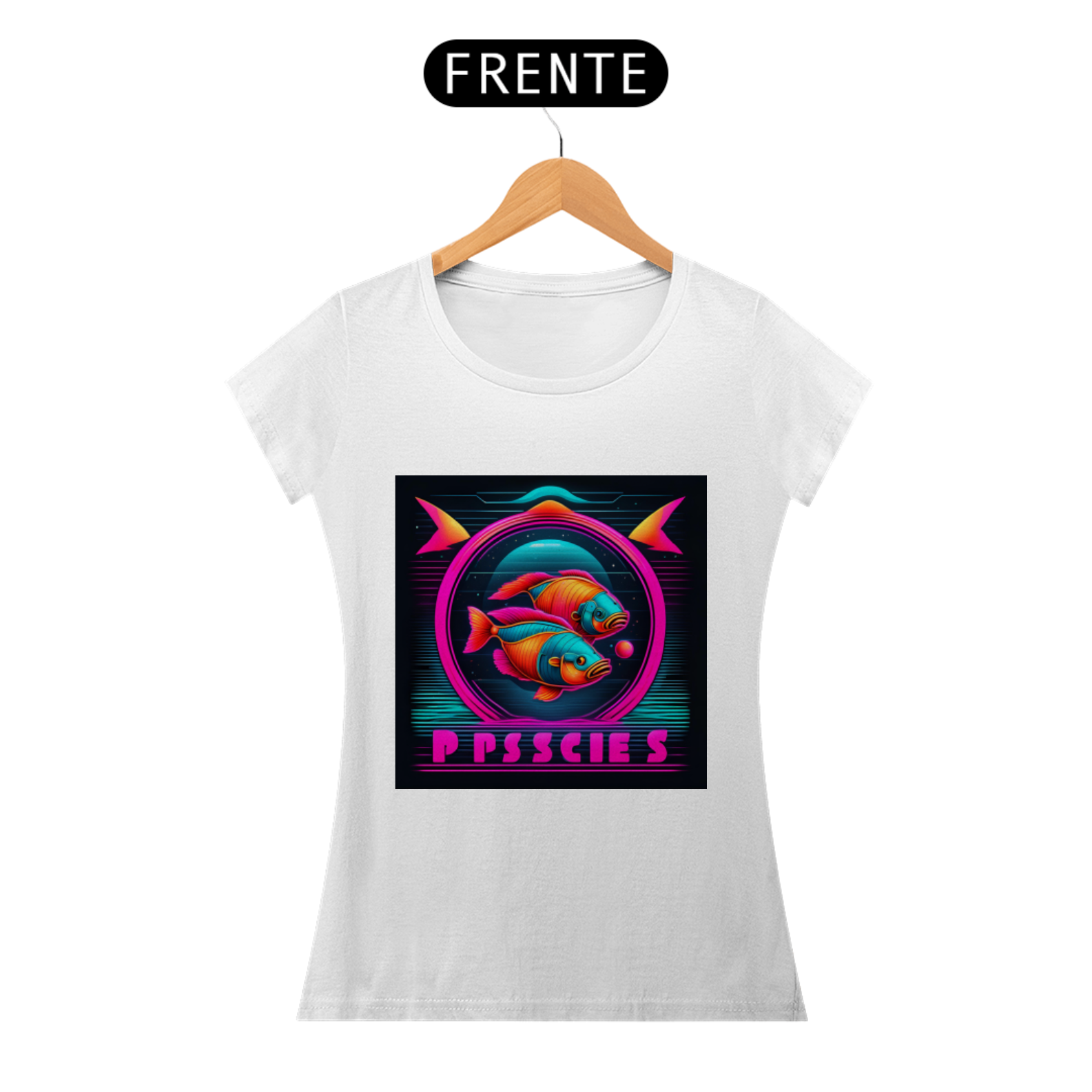 A estampa apresenta o símbolo de Peixes em linhas neon brilhantes, destacando-se com um visual contemporâneo e arrojado. Representando a compaixão, a espiritualidade e a criatividade dos nascidos sob este signo, o design capta a essência pisciana de forma inovadora e estilosa.