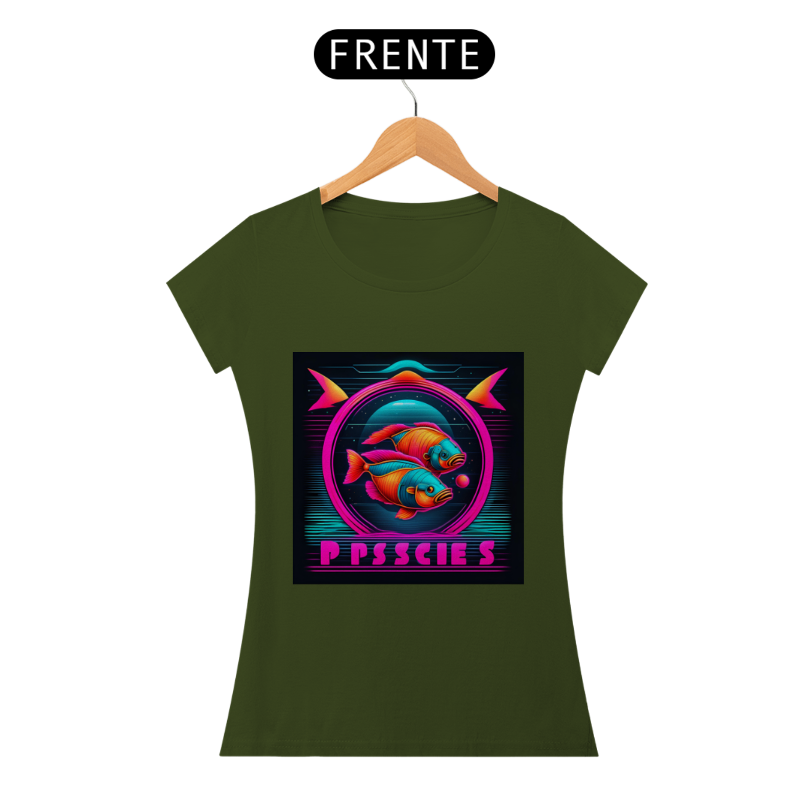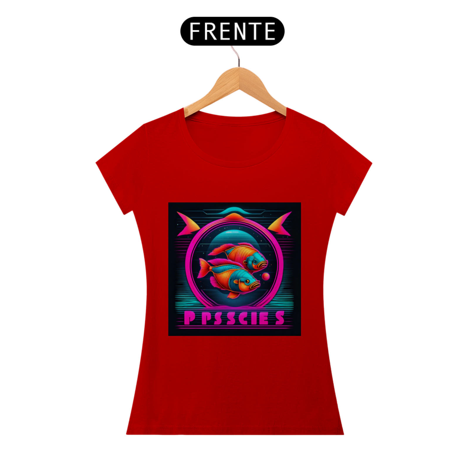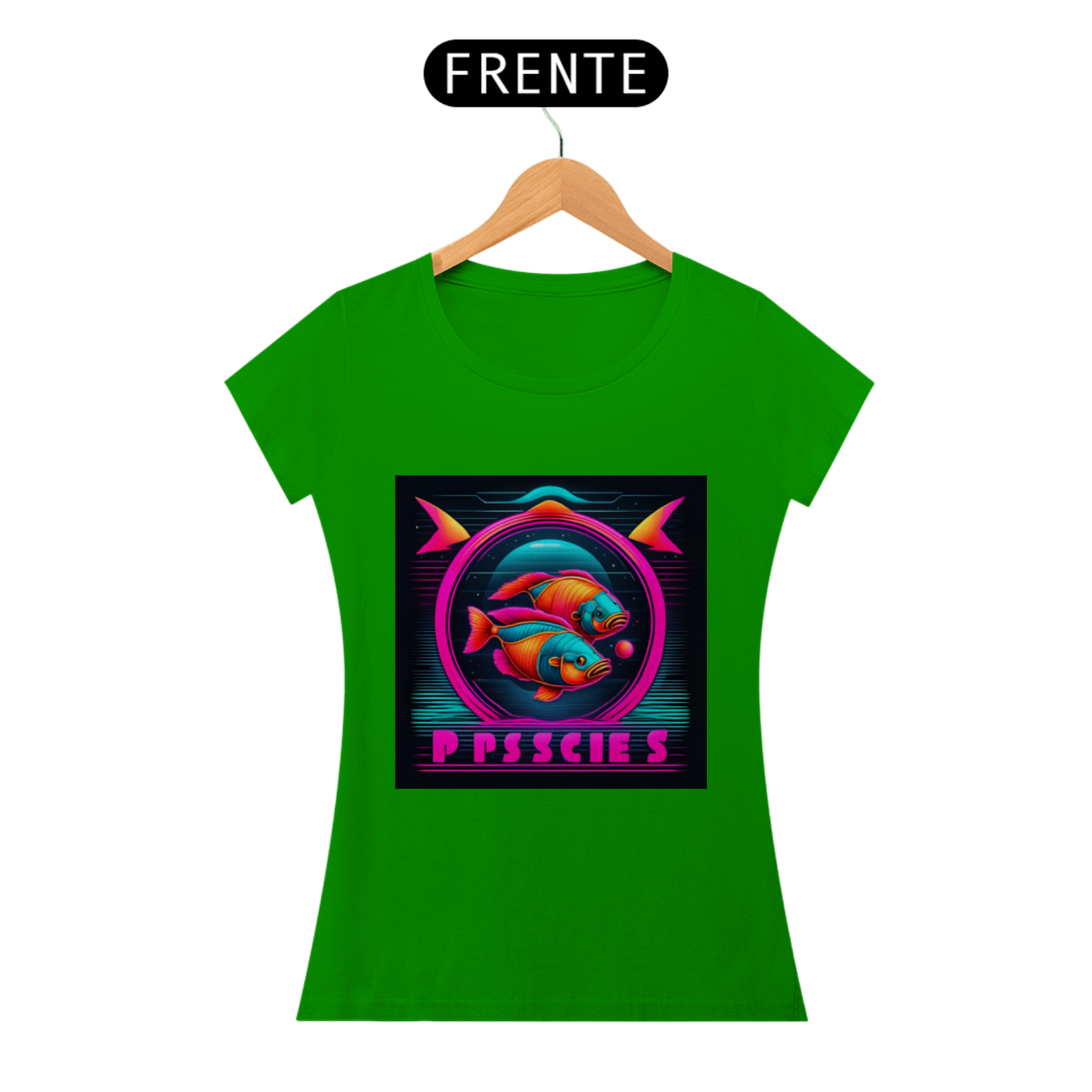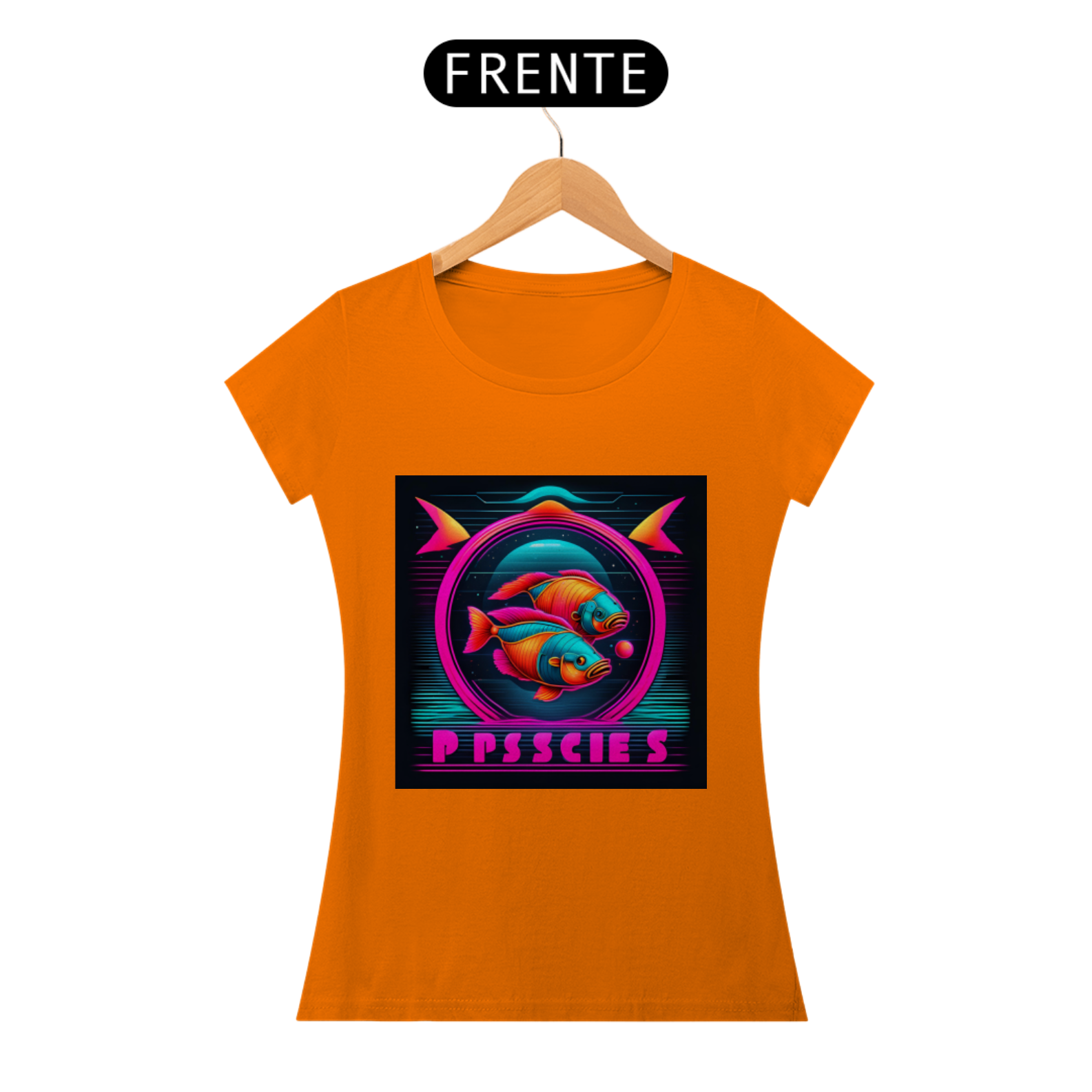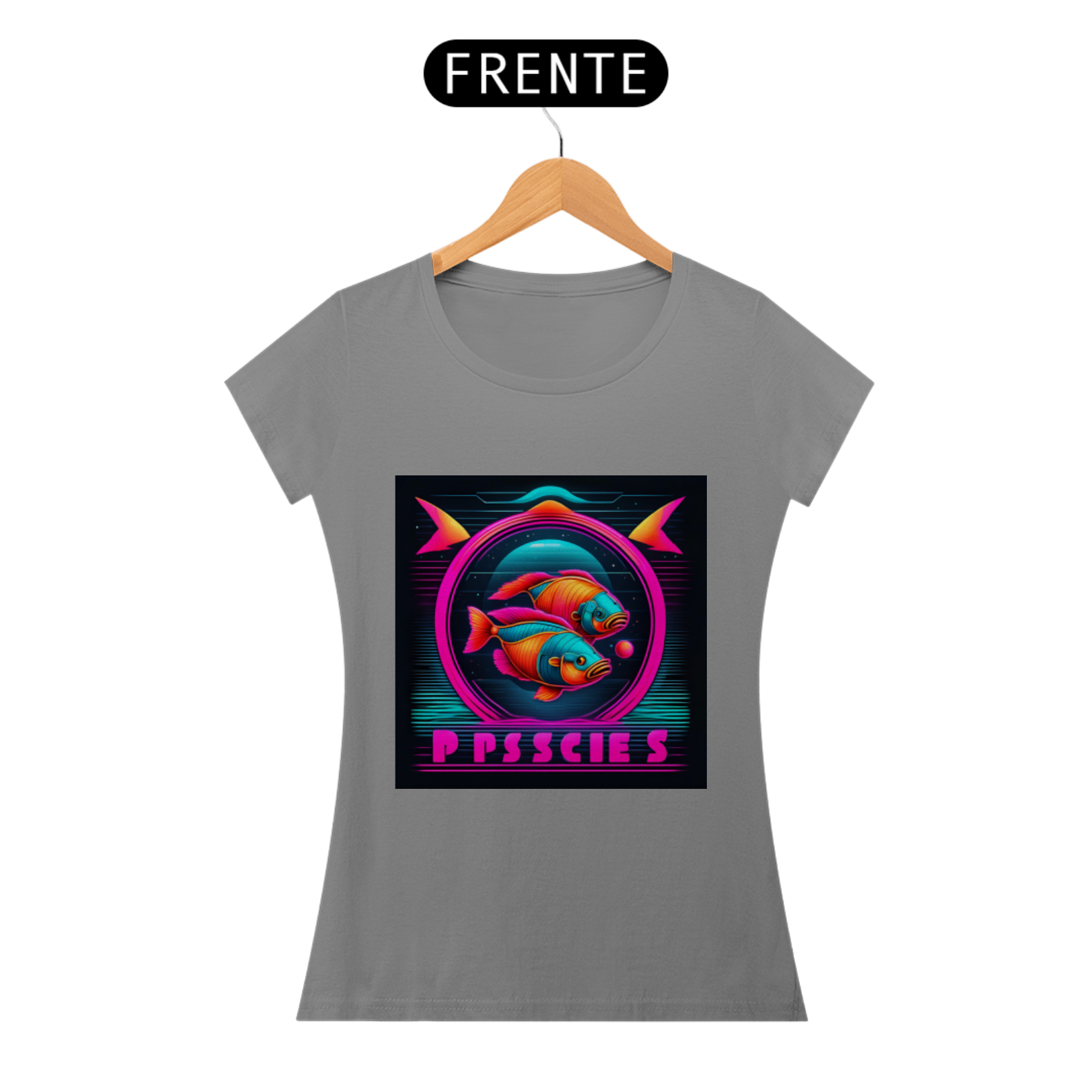 A estampa apresenta o símbolo de Peixes em linhas neon brilhantes, destacando-se com um visual contemporâneo e arrojado. Representando a compaixão, a espiritualidade e a criatividade dos nascidos sob este signo, o design capta a essência pisciana de forma inovadora e estilosa.