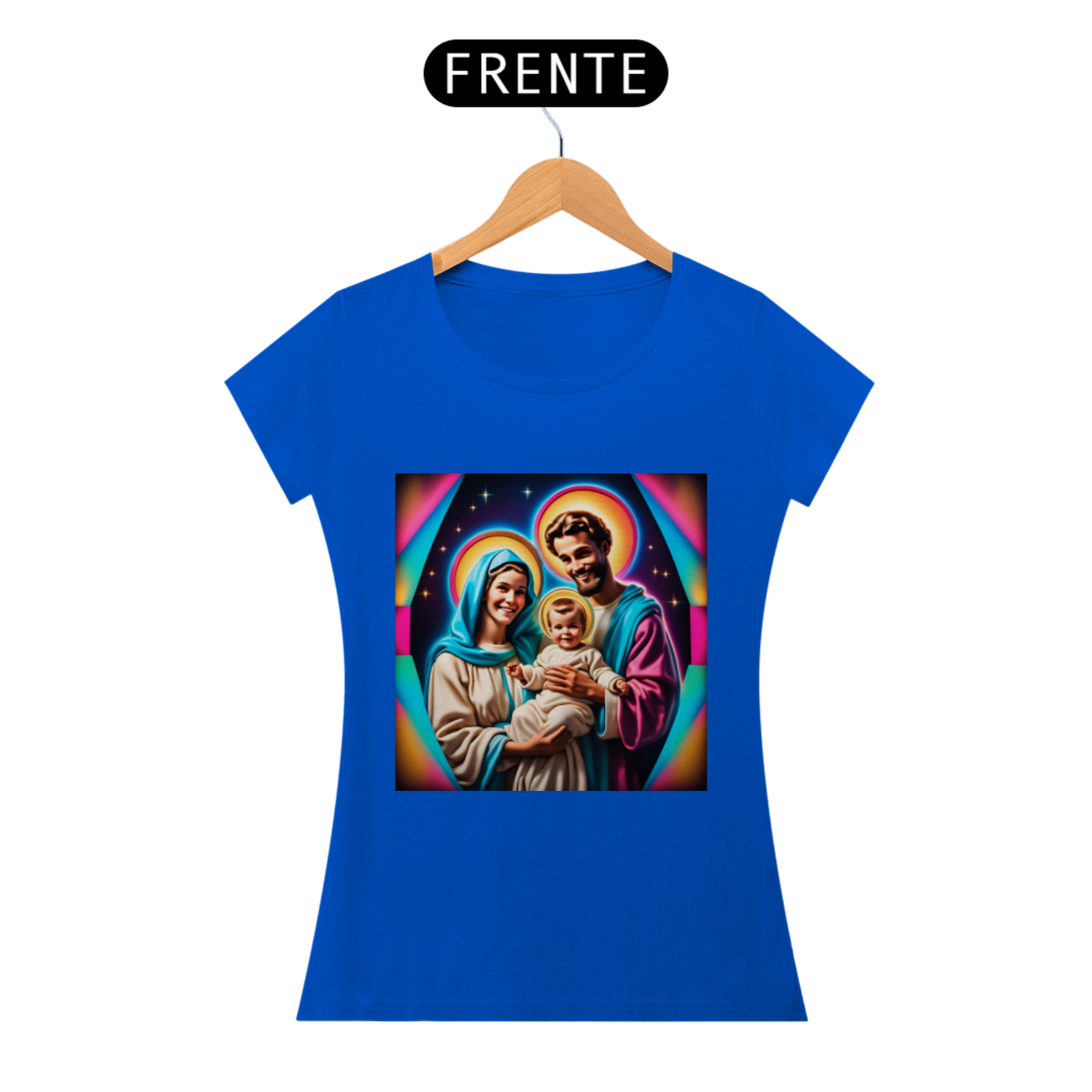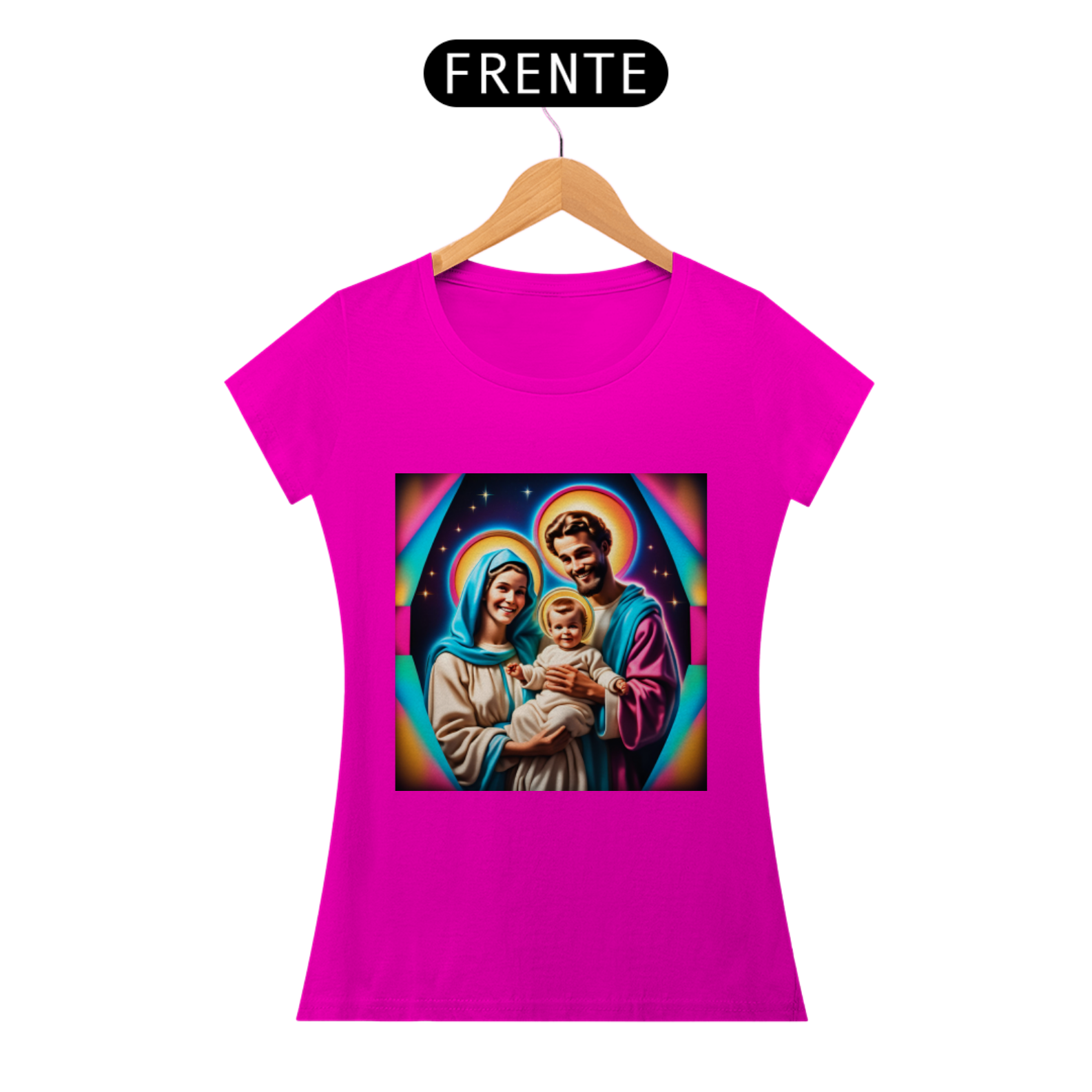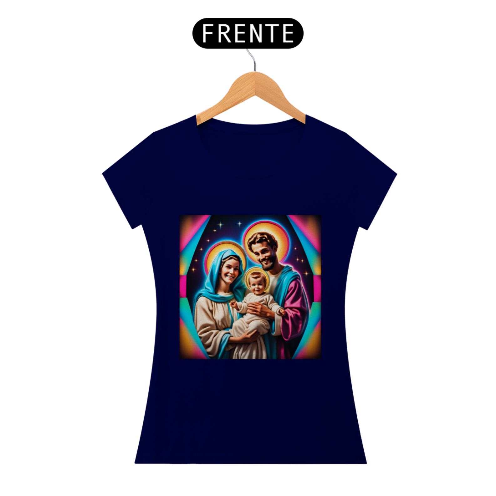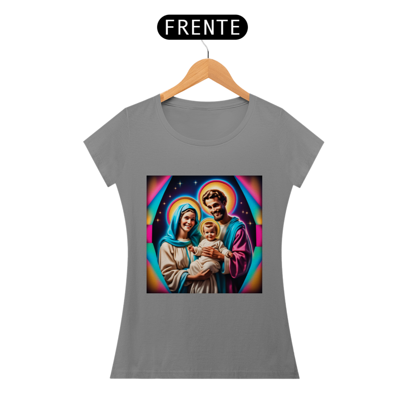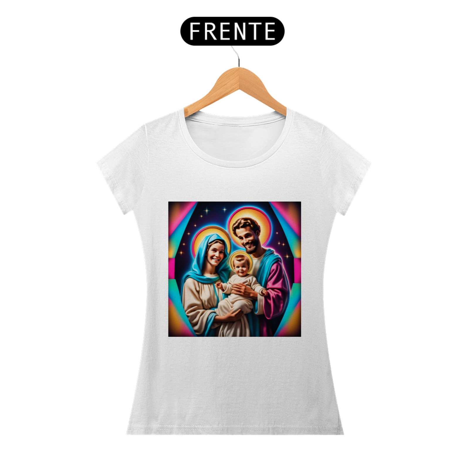 Abrace a energia amorosa e protetora da Sagrada Família junto com esta camiseta única, que não apenas celebra a fé e a devoção, mas também nos lembra da nossa própria conexão com o divino e da busca pela paz e harmonia espiritual.