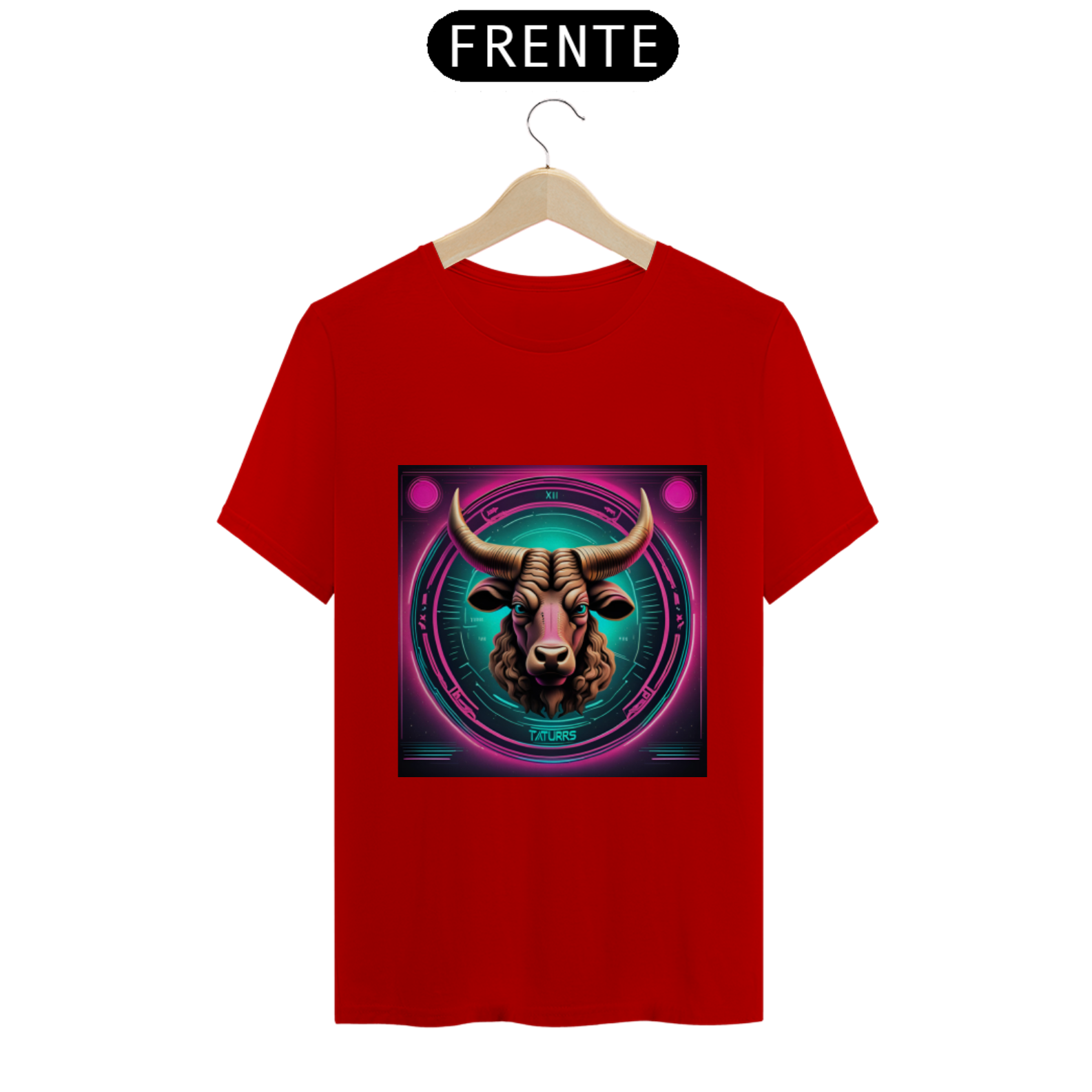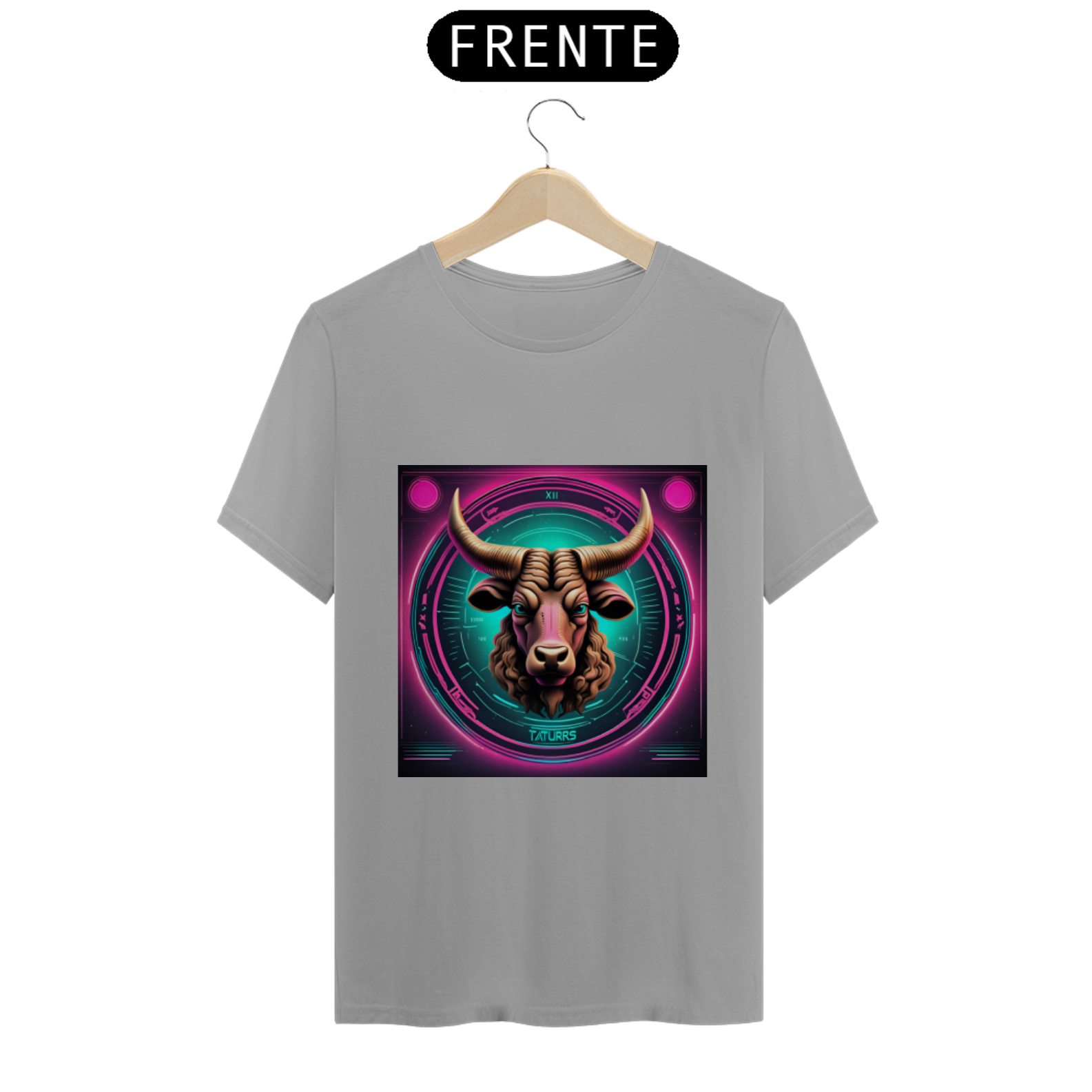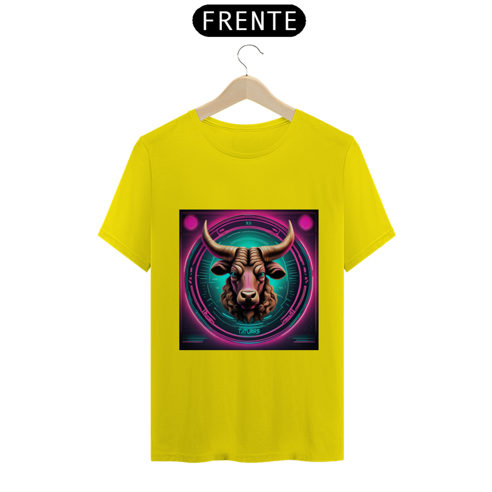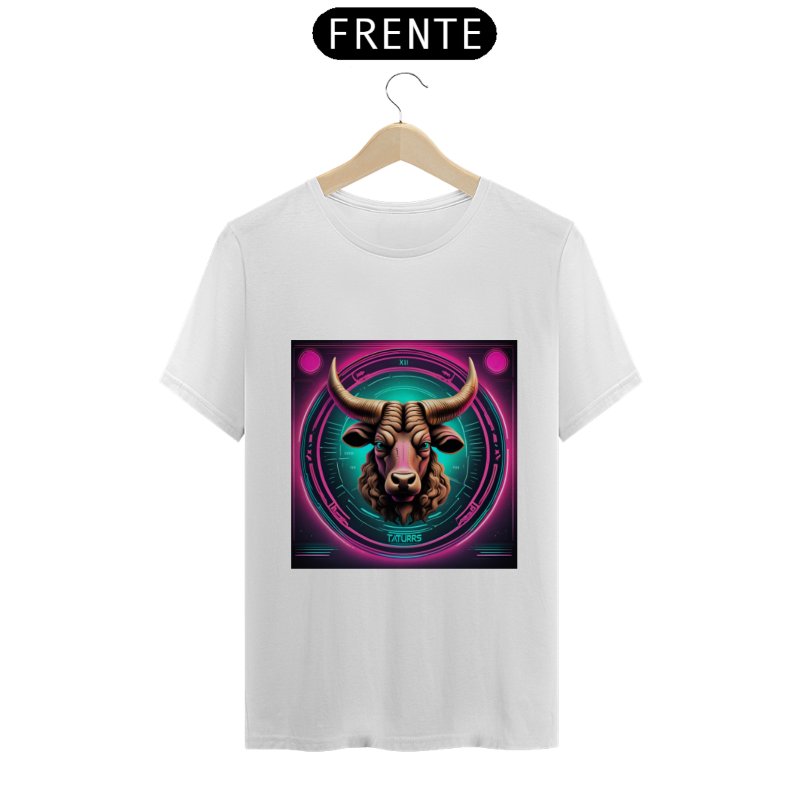 A estampa apresenta o símbolo de Touro em linhas neon brilhantes, destacando-se com um visual contemporâneo e arrojado. Representando a força, a estabilidade e a determinação dos nascidos sob este signo, o design capta a essência taurina de forma inovadora e estilosa.