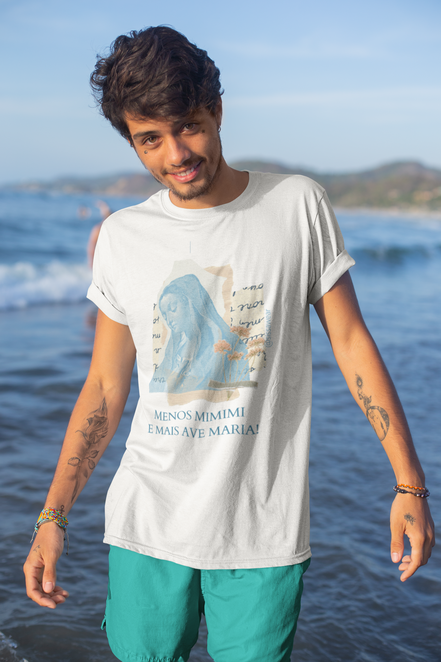 Feita para quem acredita no poder do terço, no silêncio da alma e no colo de Maria, mas sem perder o estilo e a leveza. Uma peça que une atitude e devoção, ideal pra usar no dia a dia, na igreja ou na missão.