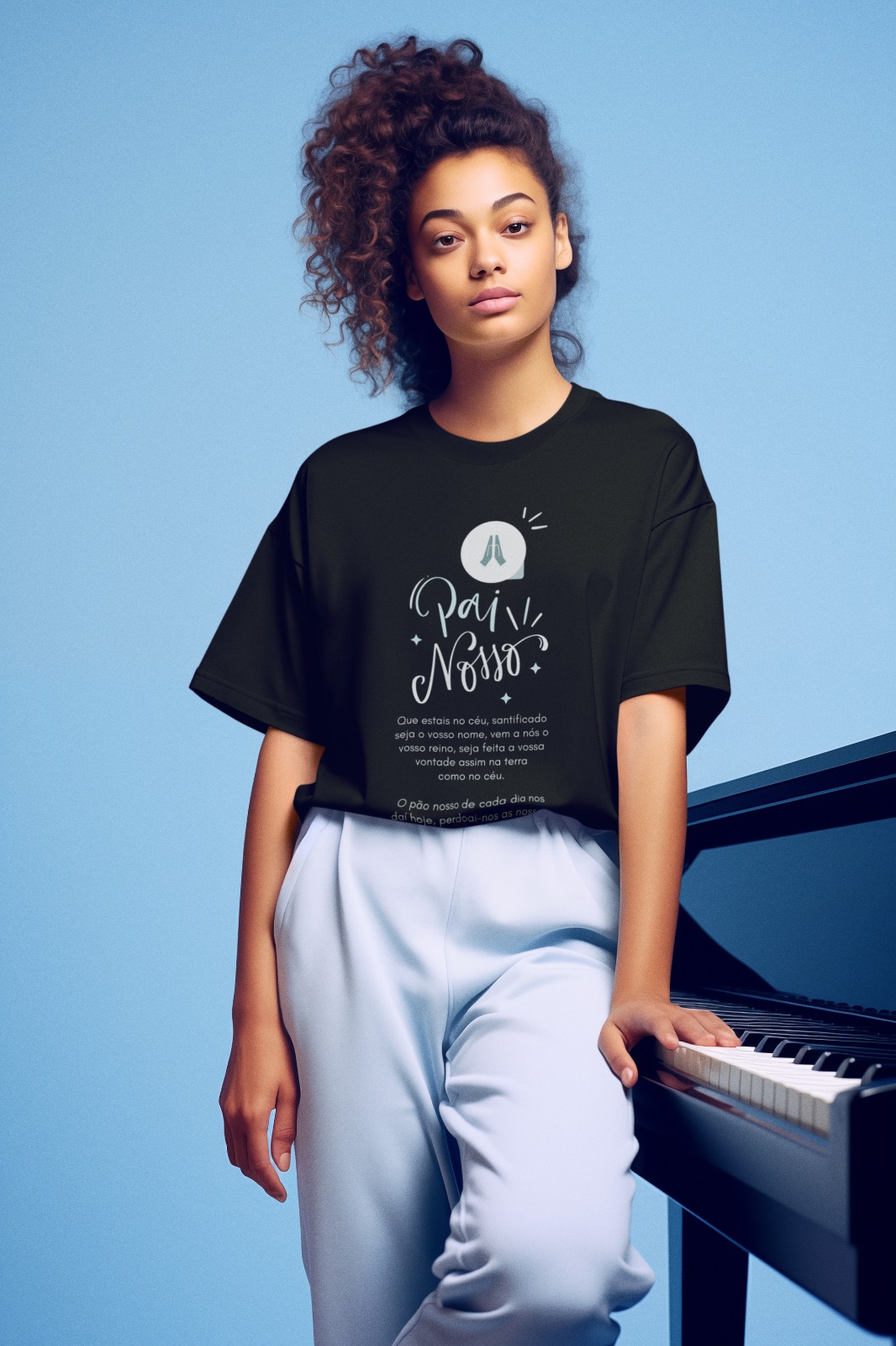 Encontre inspiração e fé com nossa camiseta premium "Pai Nosso". Confeccionada com tecido de alta qualidade, esta peça oferece conforto excepcional e durabilidade para o uso diário. Ideal para aqueles que desejam carregar consigo uma mensagem de devoção e espiritualidade, esta camiseta é perfeita para expressar sua crença e fé. Com um design elegante e reverente, ela traz a oração "Pai Nosso" como um símbolo de esperança e força.