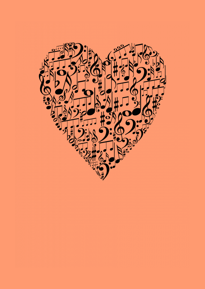 Notas musicais, coração, love, música