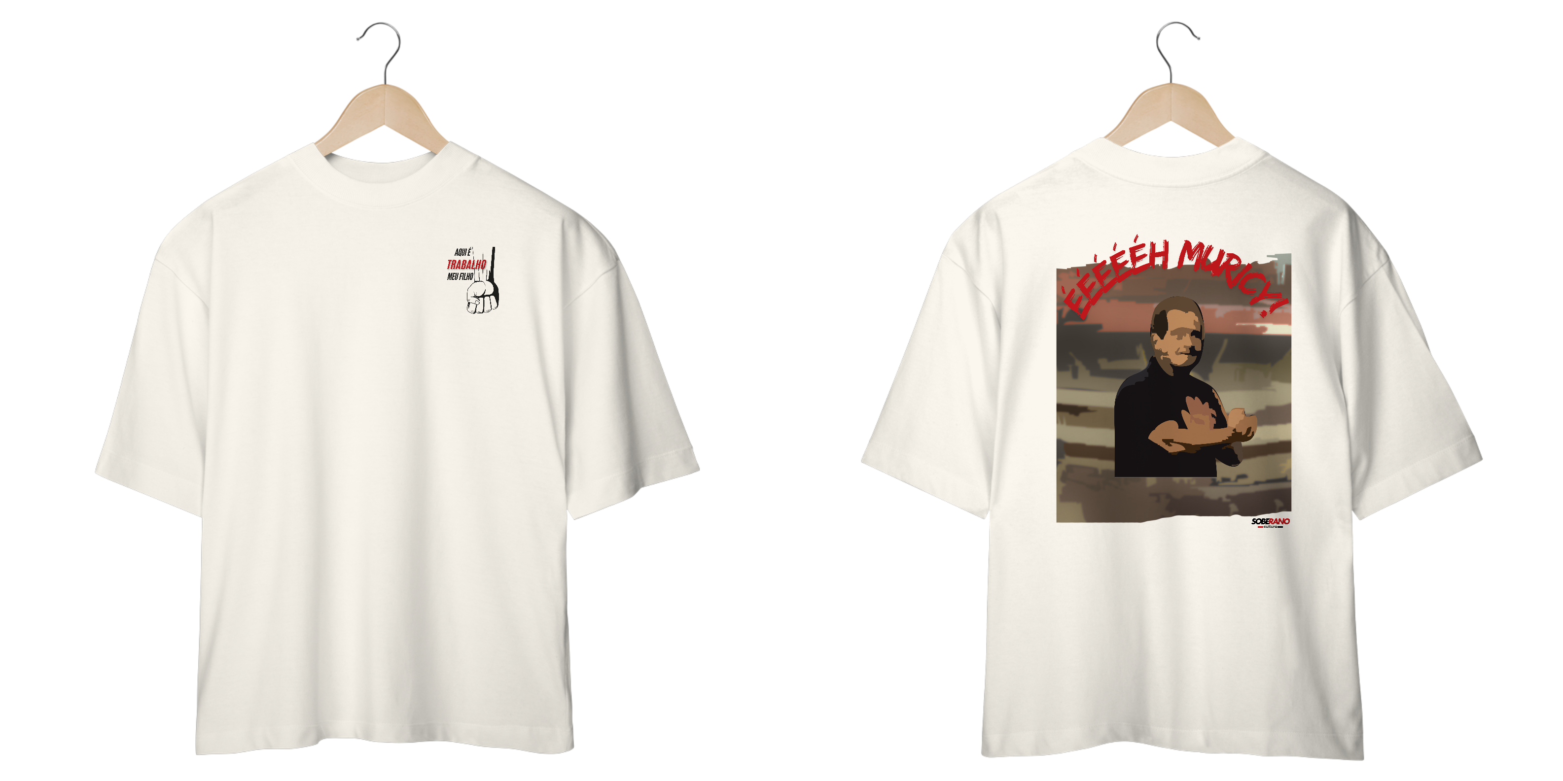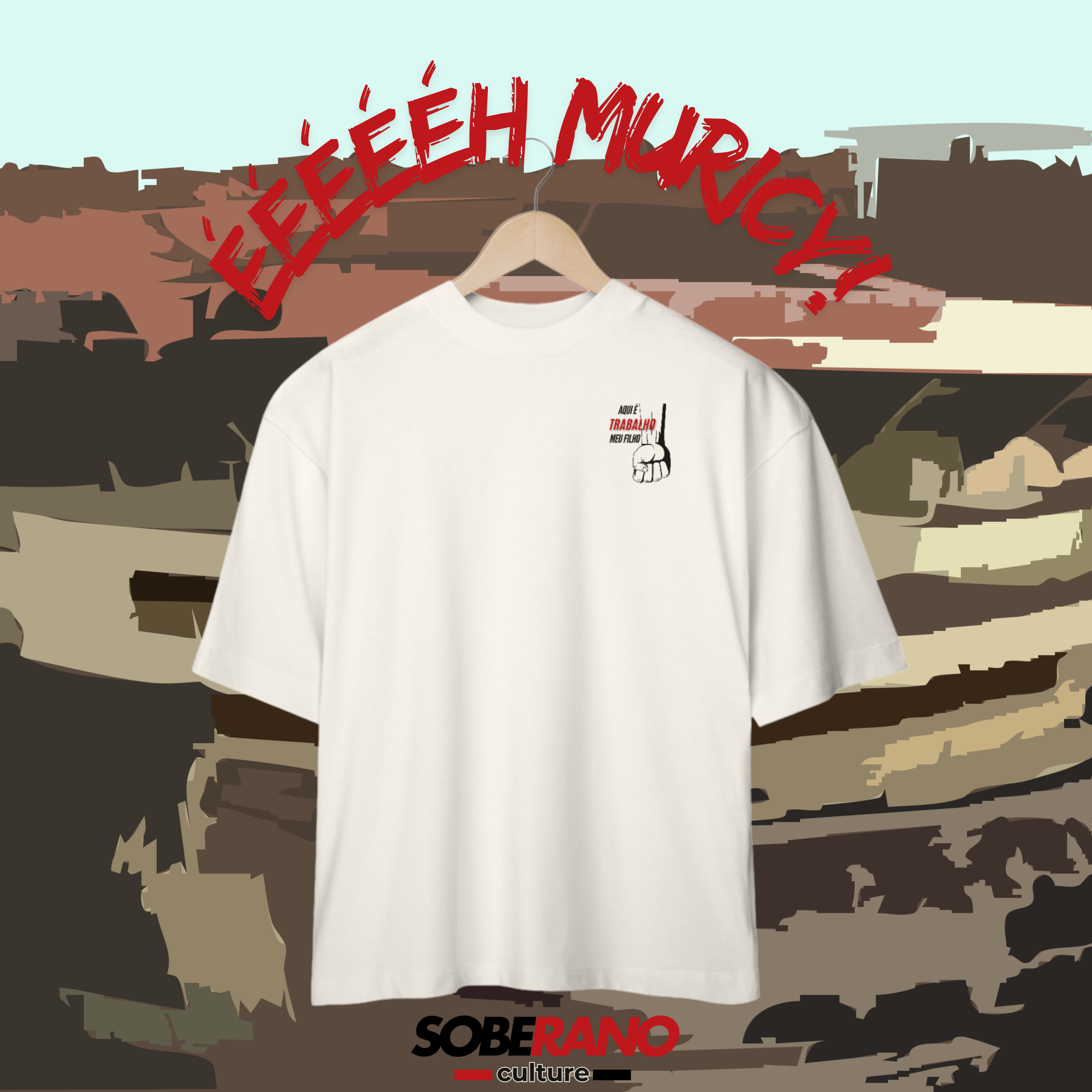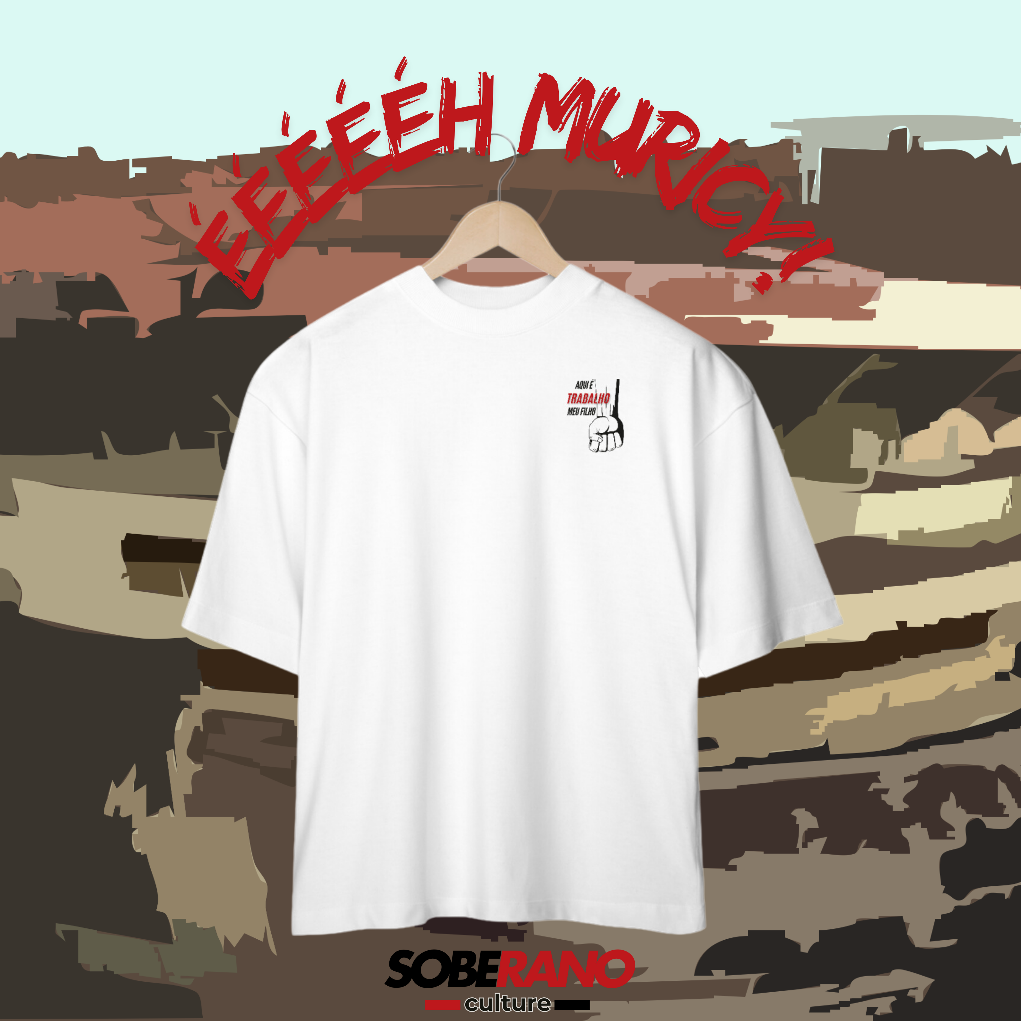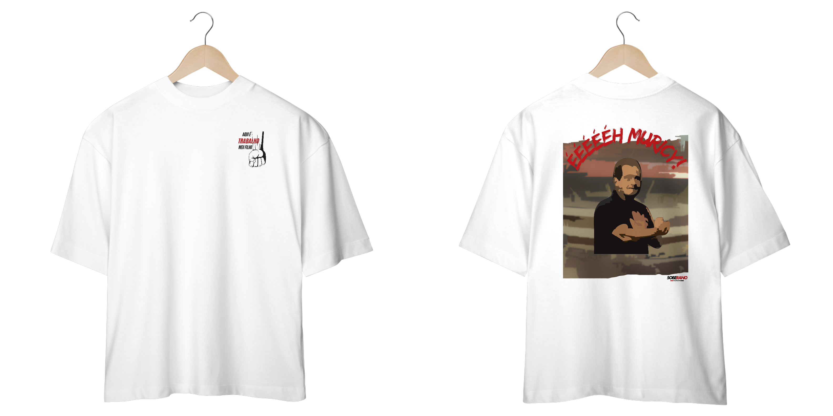 A camisa oversize branca "Aqui é Trabalho" traz uma homenagem ao icônico Muricy Ramalho, simbolizando dedicação e garra no futebol. Com um design arrojado, a estampa apresenta uma imagem marcante do treinador em ação, cercada por elementos que refletem a essência do esforço e da superação.