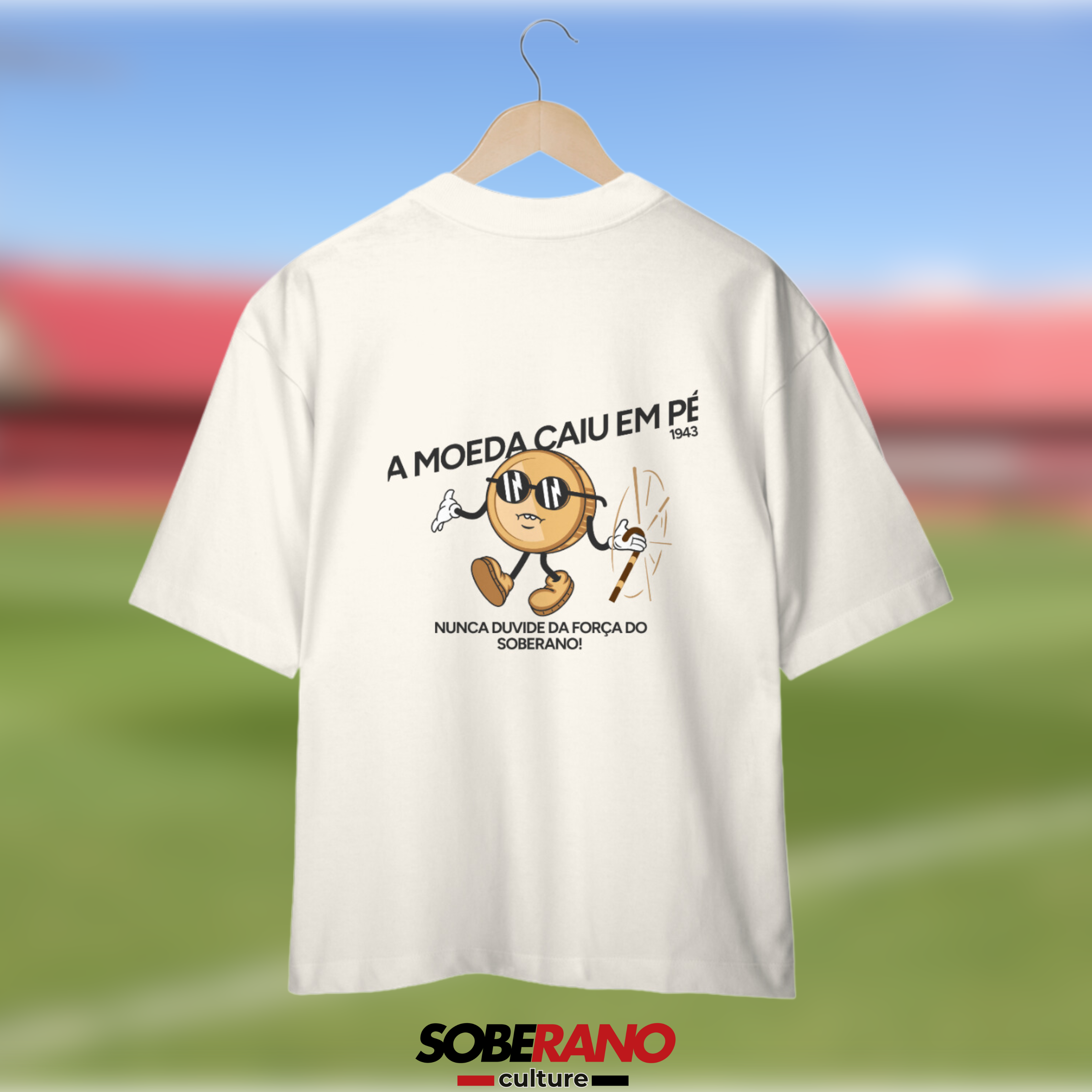 Celebre a força e a resiliência do São Paulo com a Camisa Oversize Soberano Culture – "A Moeda Caiu em Pé"! Esta peça é perfeita para os torcedores que sabem que nunca se deve subestimar o SPFC.