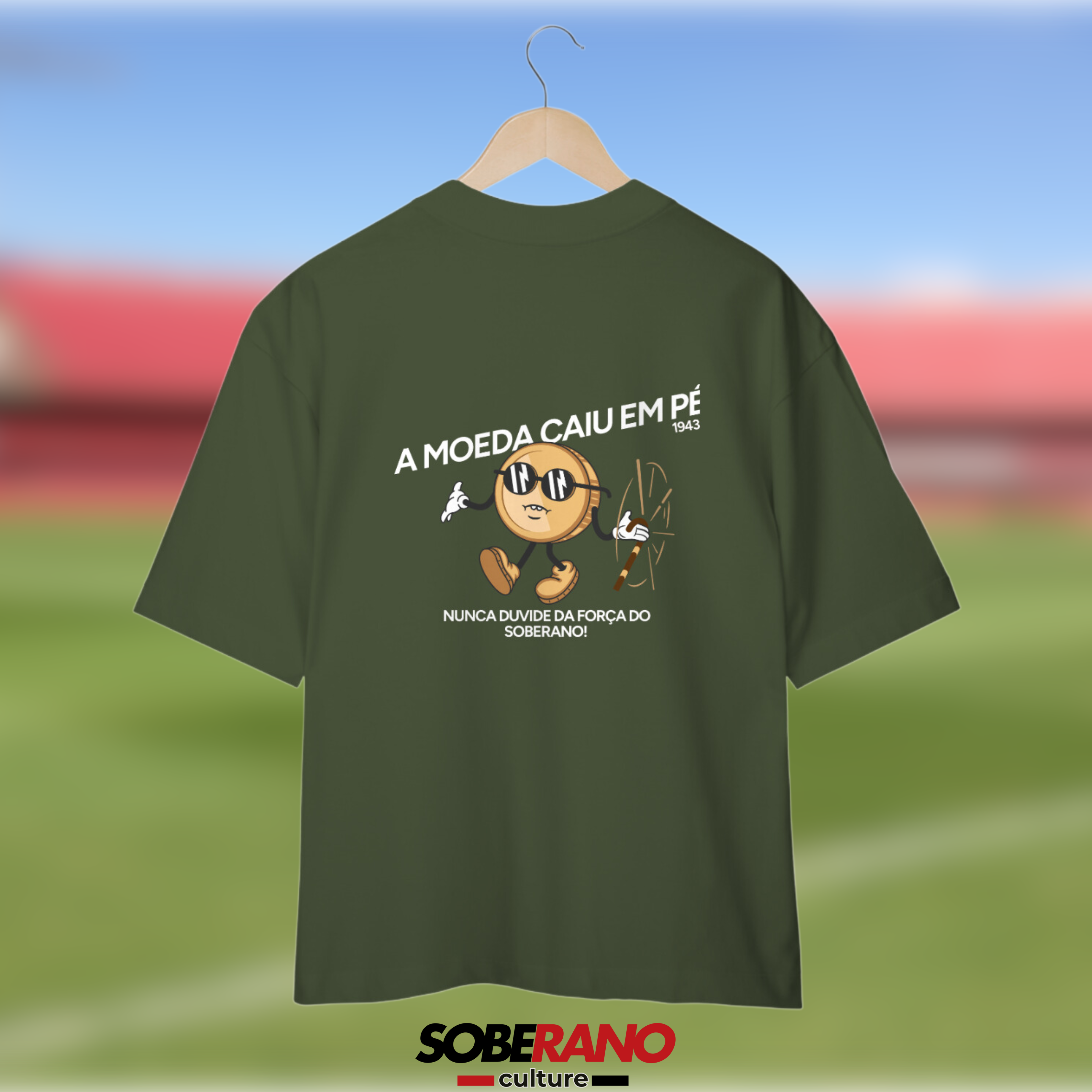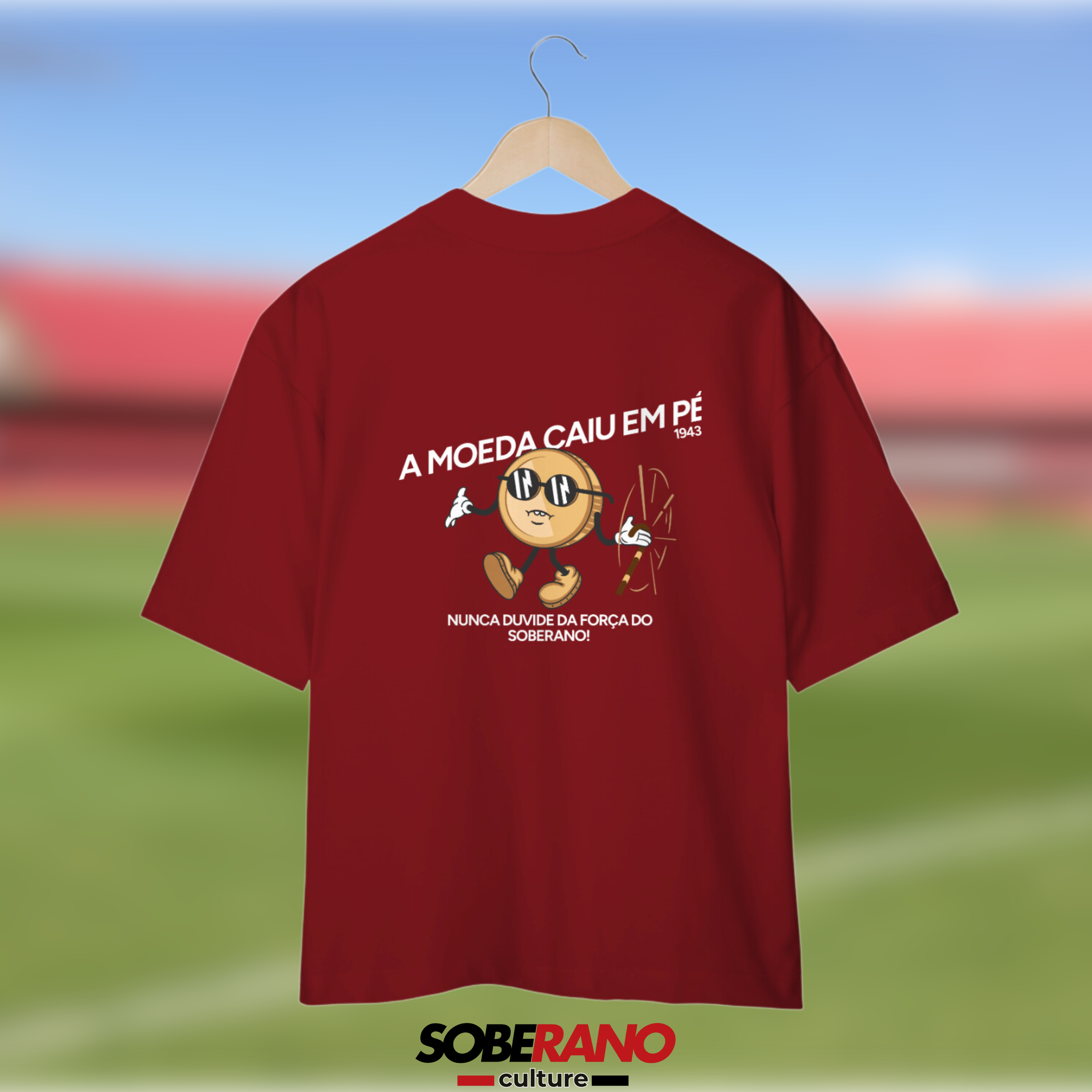 Celebre a força e a resiliência do São Paulo com a Camisa Oversize Soberano Culture – "A Moeda Caiu em Pé"! Esta peça é perfeita para os torcedores que sabem que nunca se deve subestimar o SPFC.