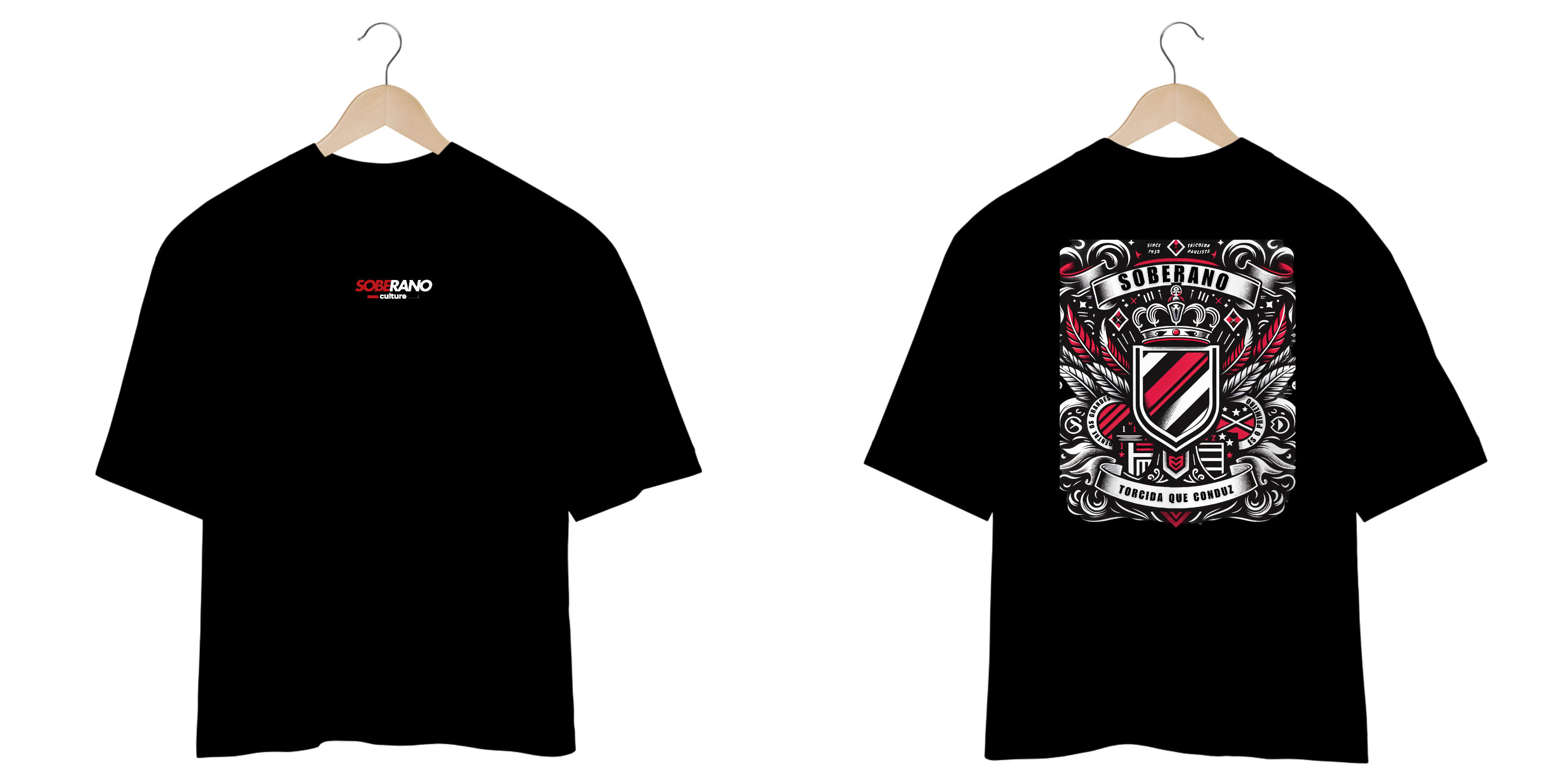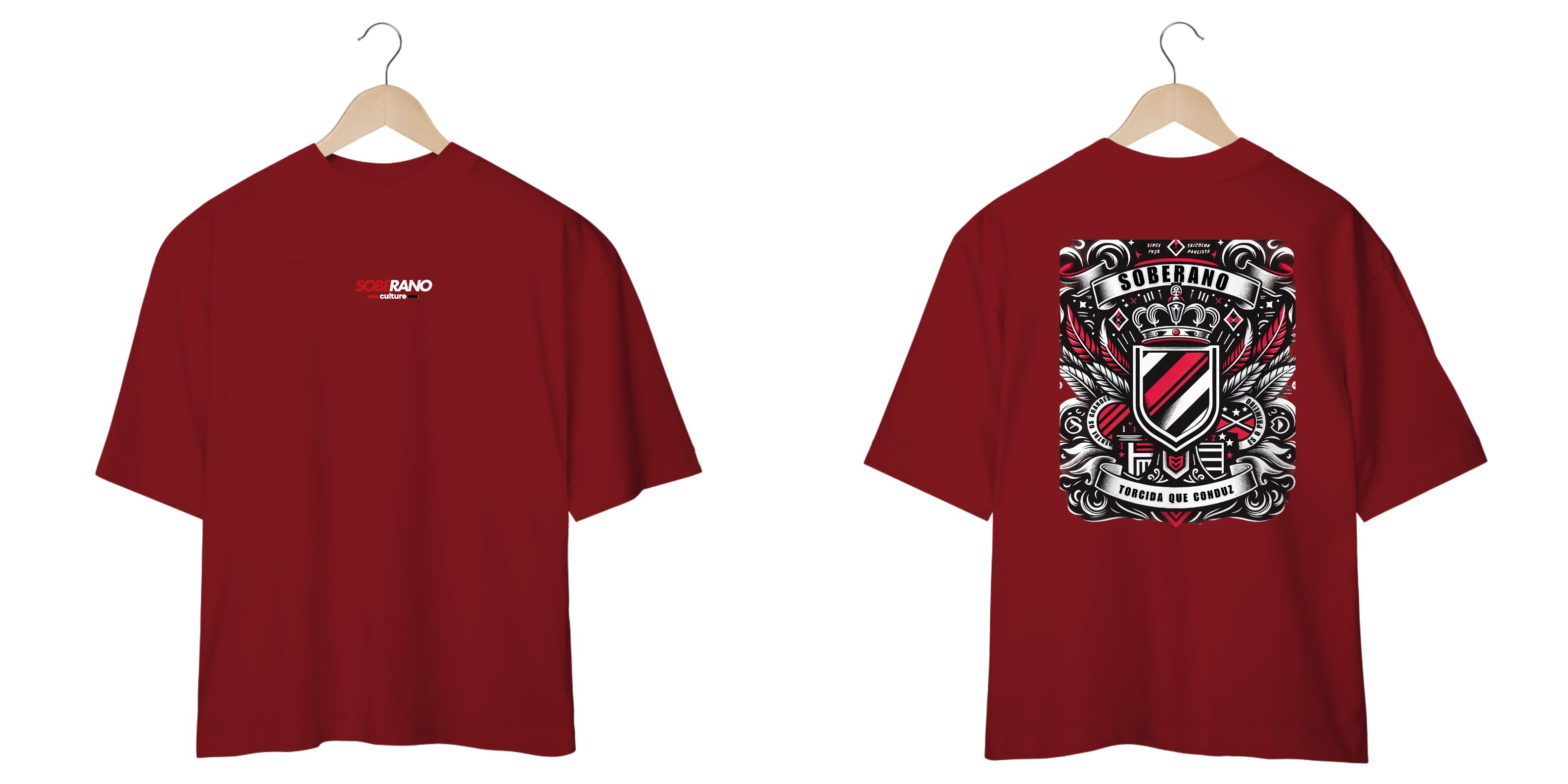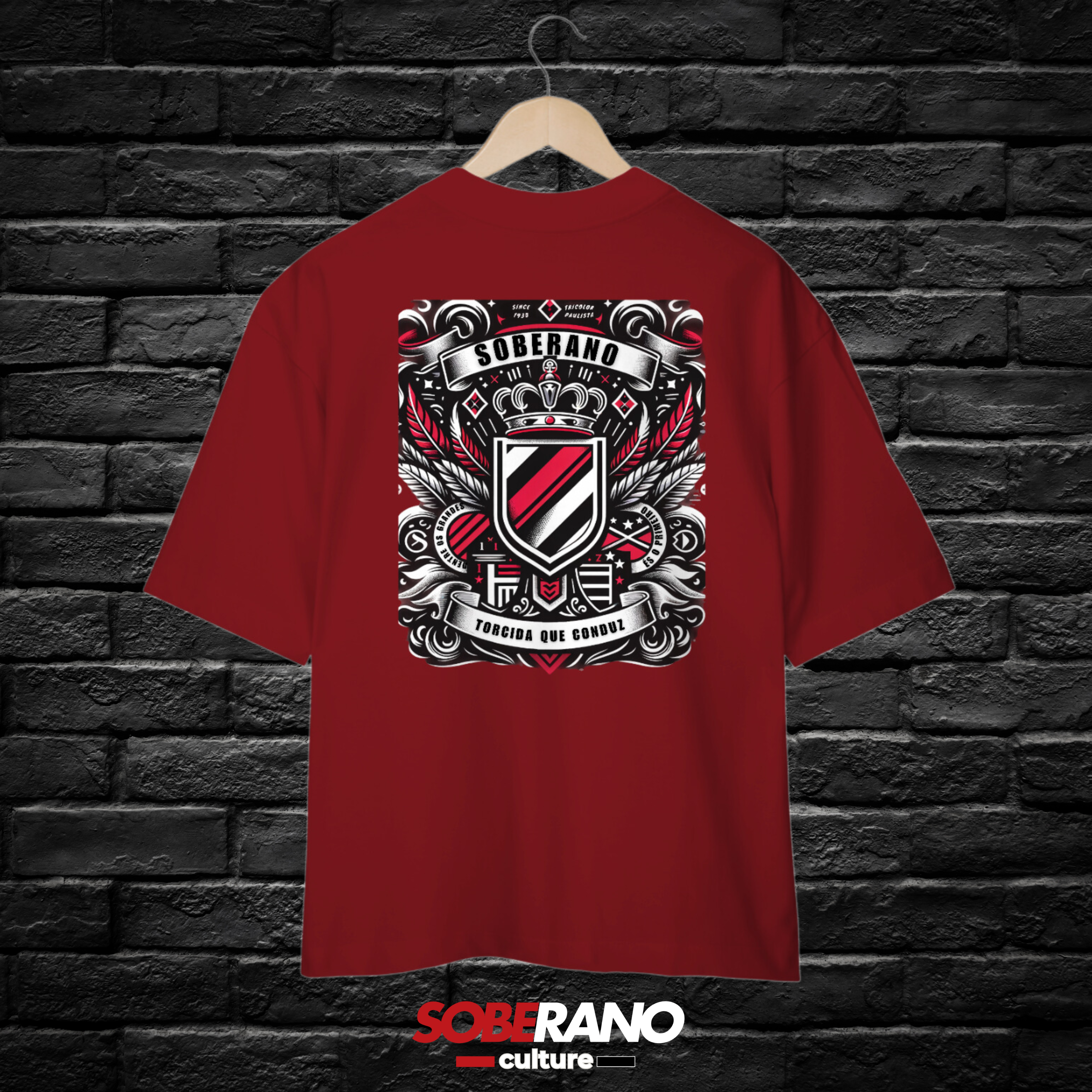 A camisa oversize "Soberano Style" é a perfeita combinação de conforto e estilo para os apaixonados pelo Soberano Tricolor. Com um design exclusivo nas icônicas cores tricolores — vermelho, preto e branco —, essa peça celebra a grandeza do nosso clube e a cultura vibrante de sua torcida.